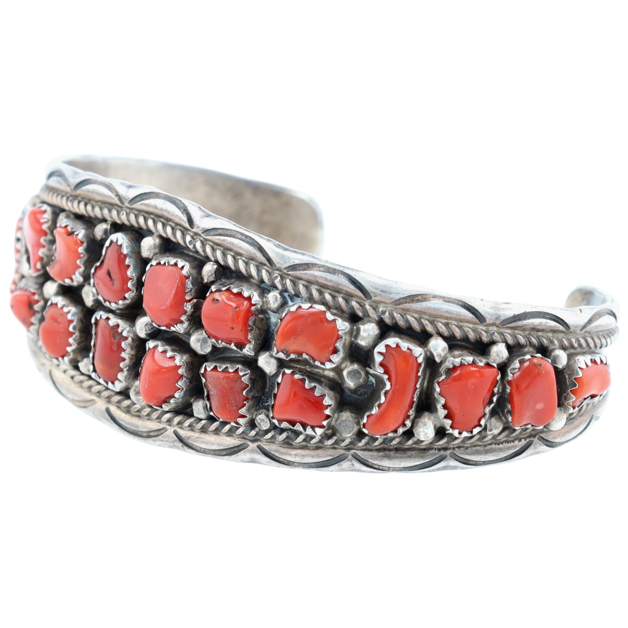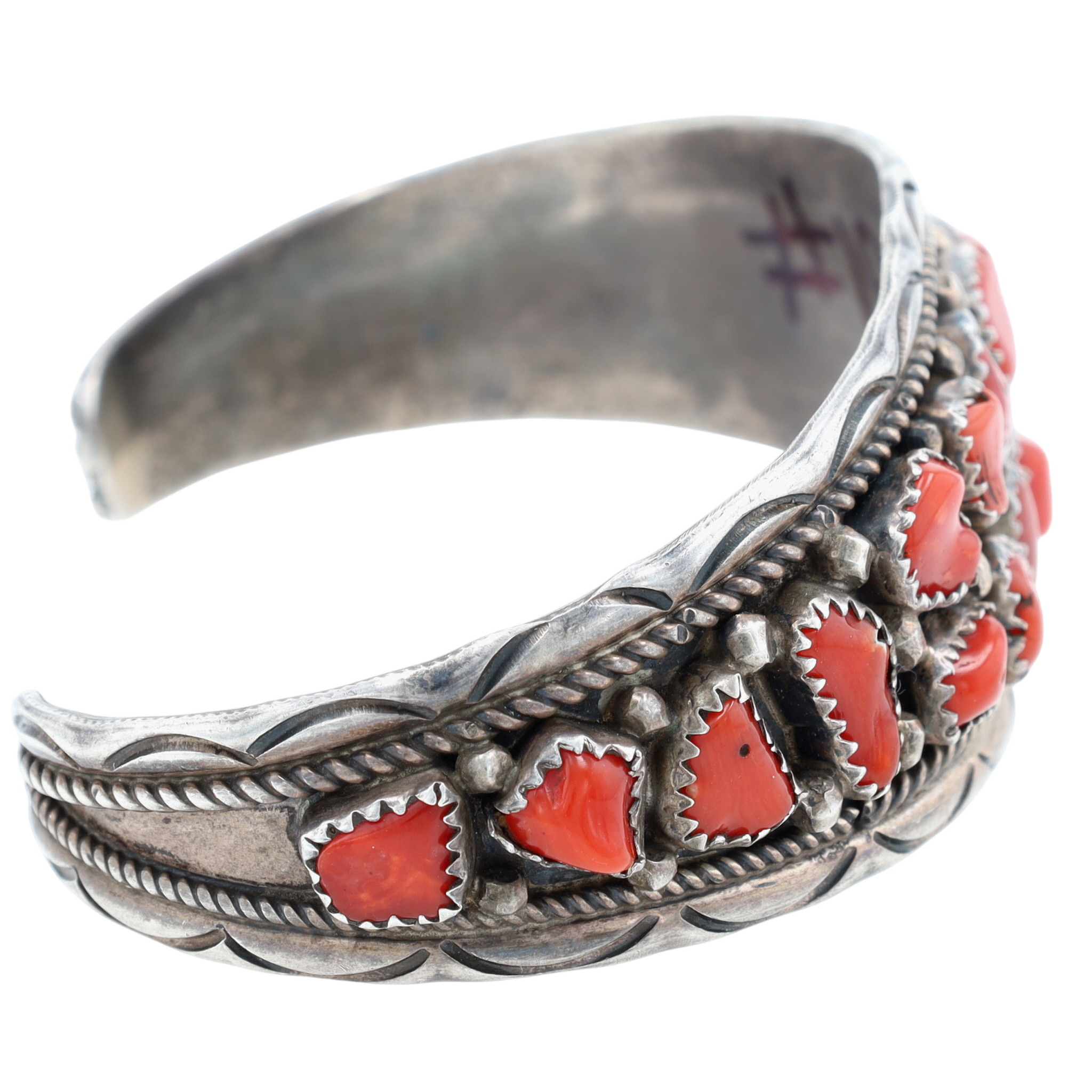 Richardson's Trading Post Anita Whitegoat Navajo Sterling Coral Cuff Bracelet