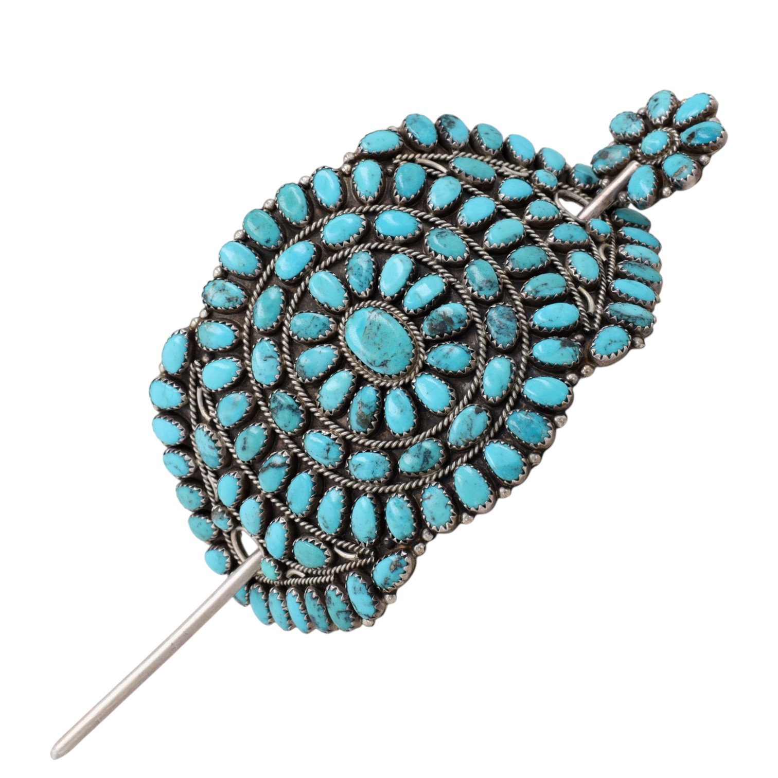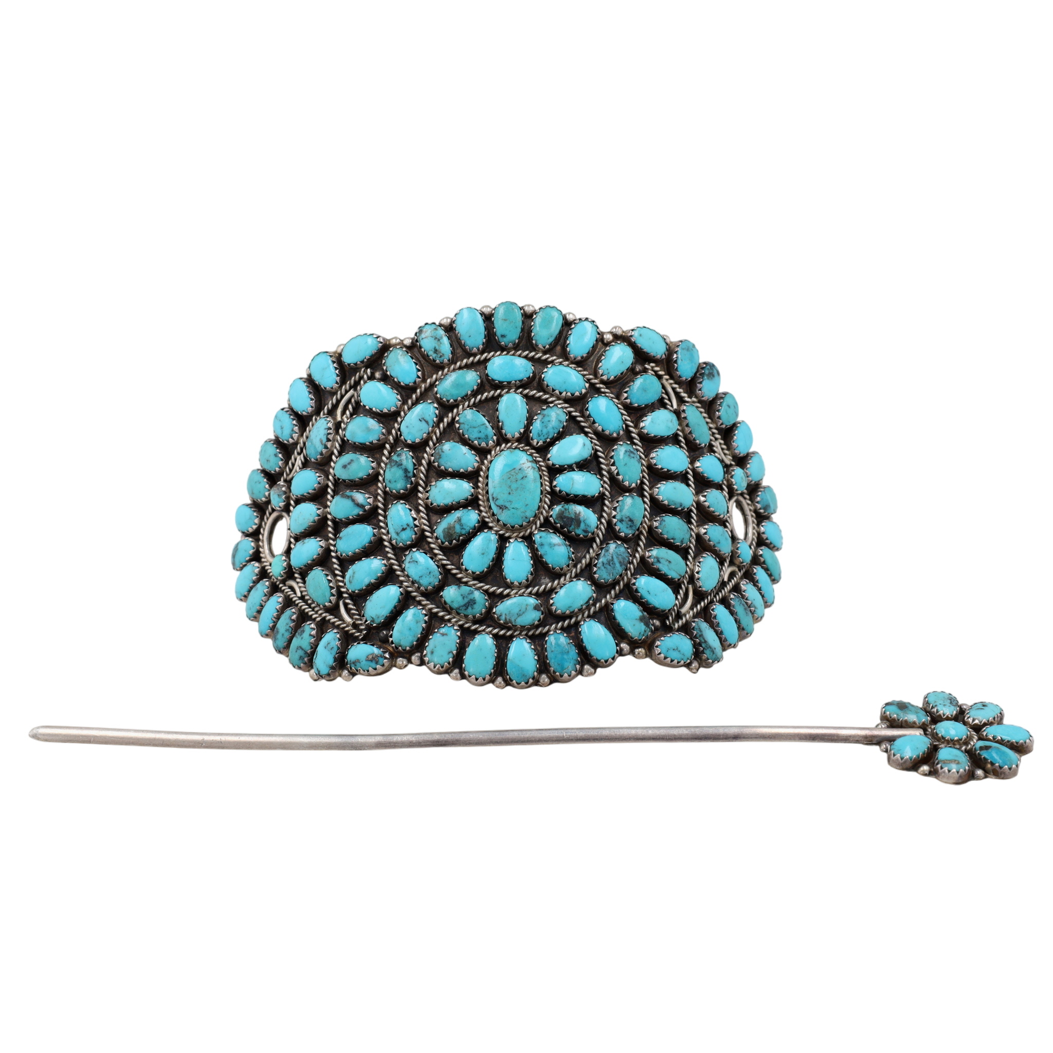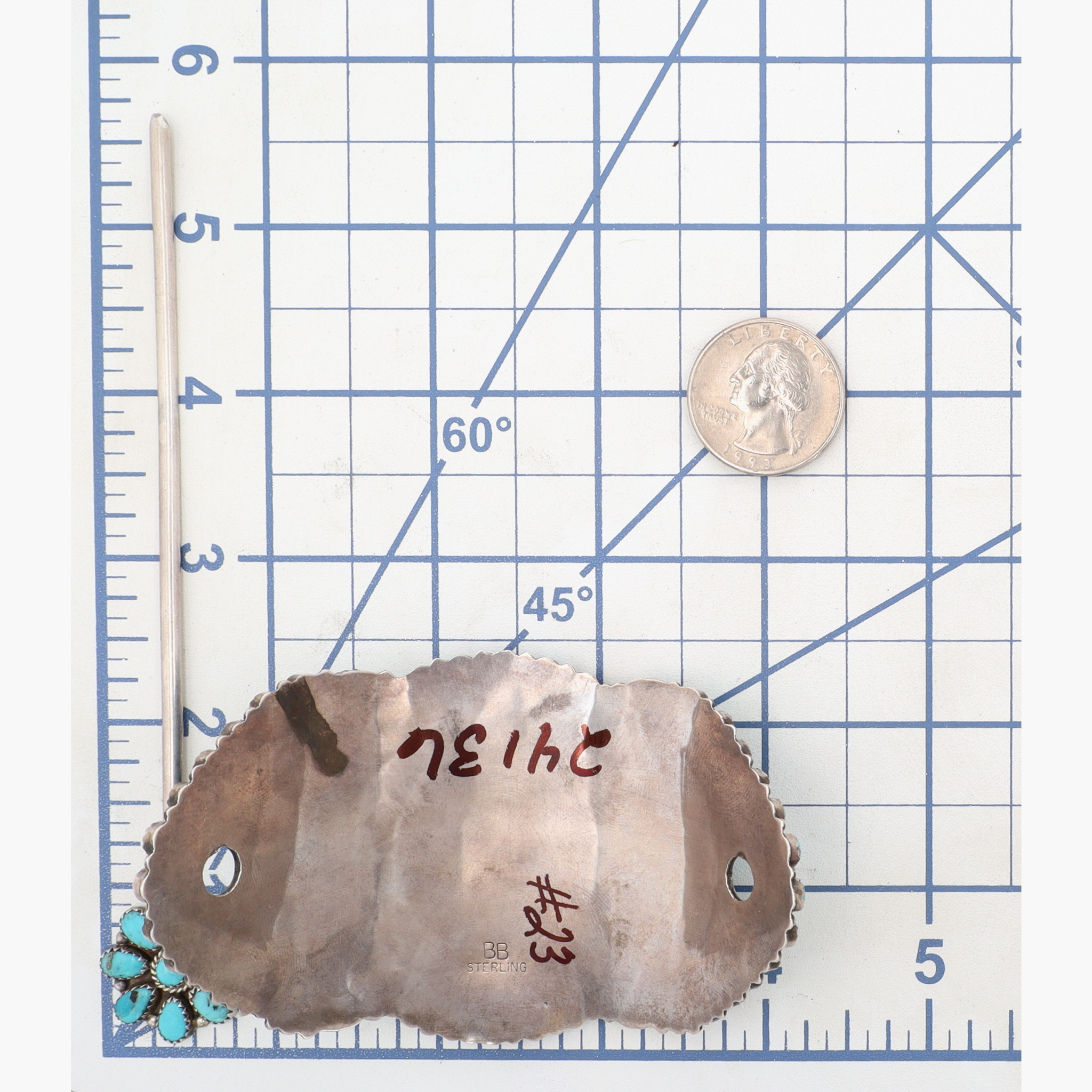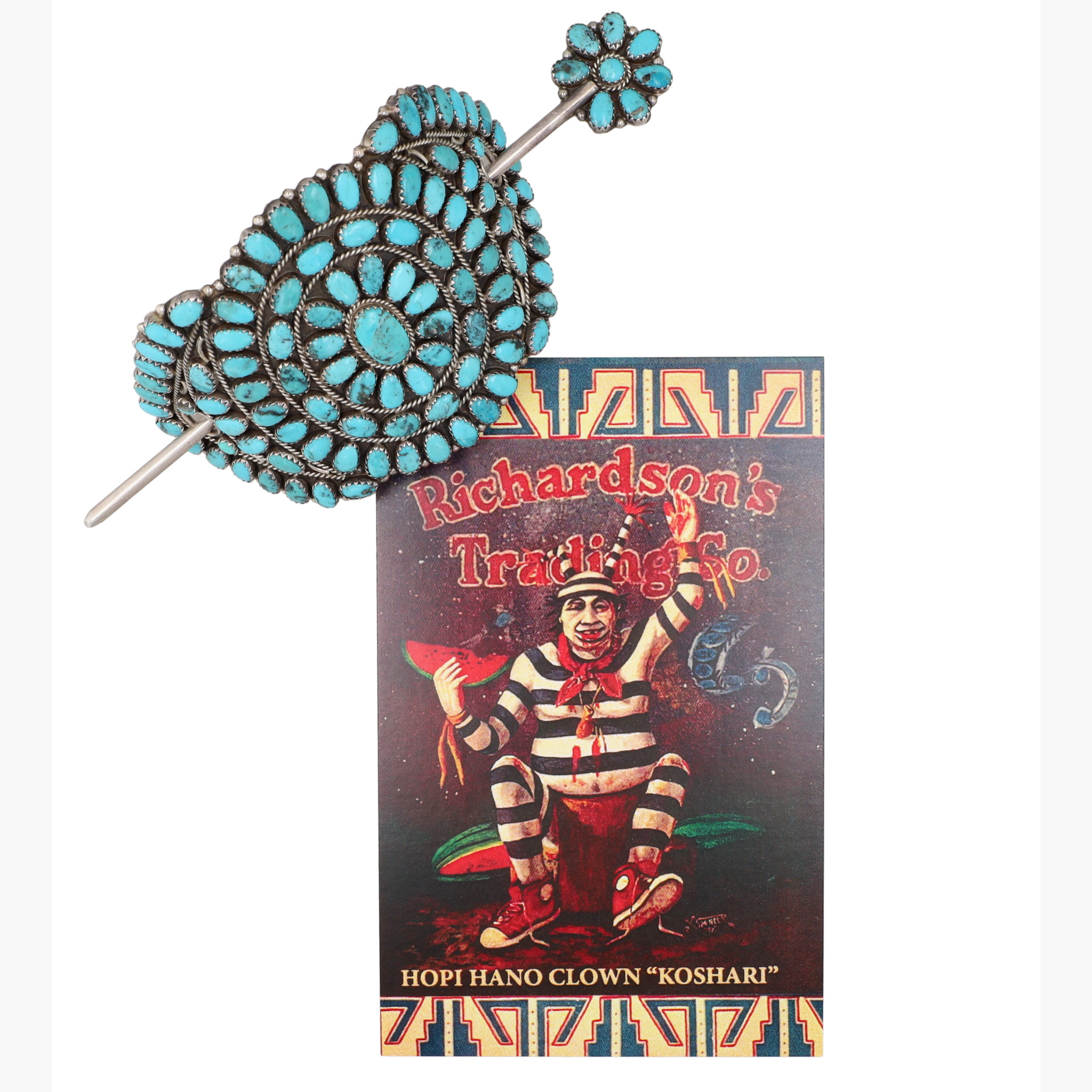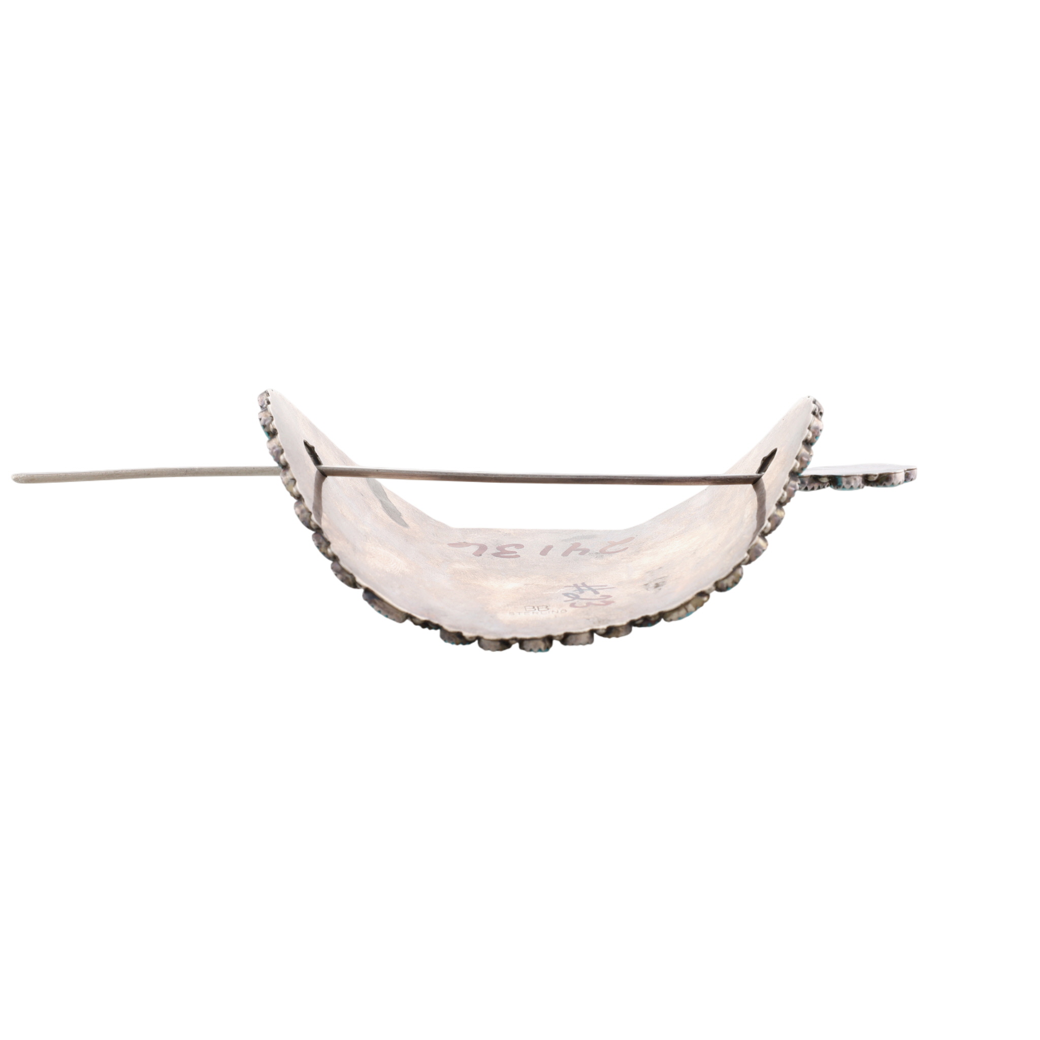 Presented in partnership with the historic Richardson’s Trading Post, a cornerstone of Native American jewelry since 1913. Selected from their archives of rare vintage and contemporary pieces. Signed ‘BB’ Vintage Navajo Sterling Turquoise Hair Clip 50g