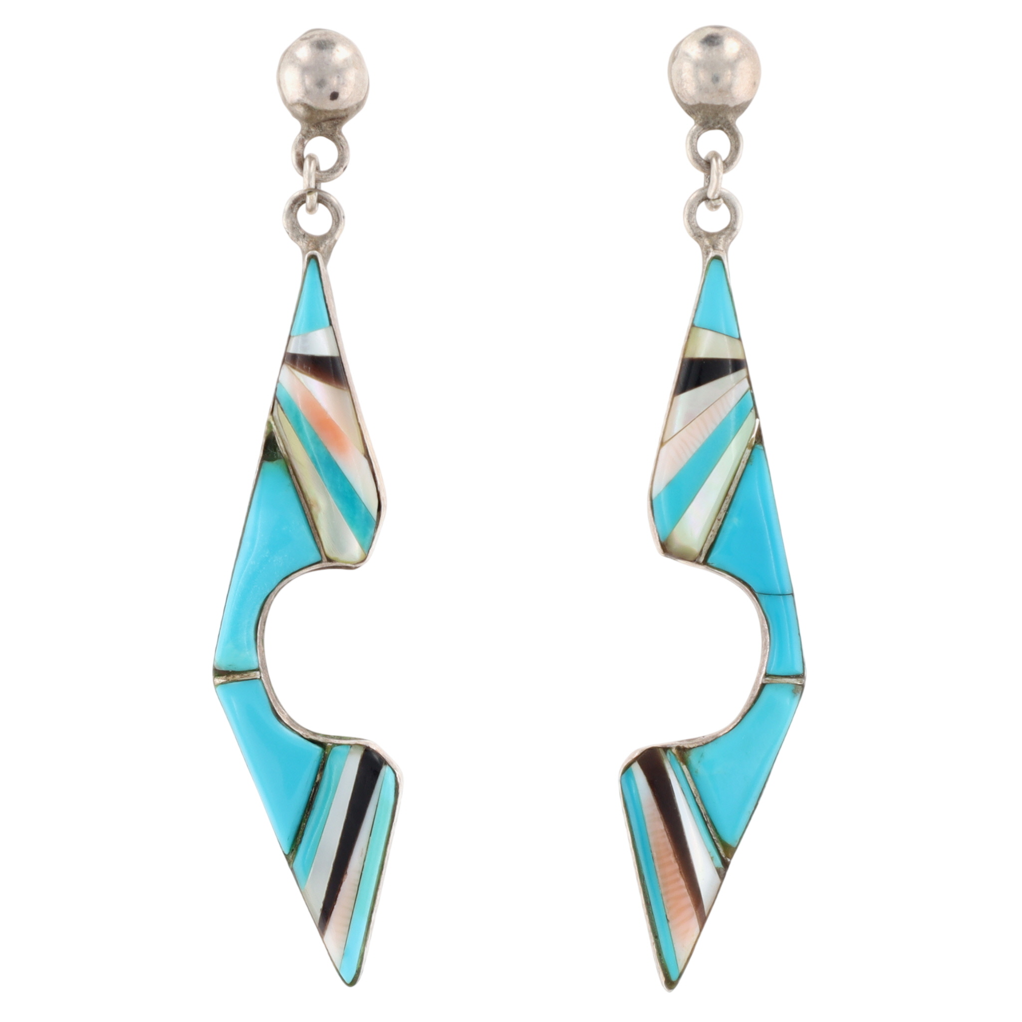 Presented in partnership with the historic Richardson’s Trading Post, a cornerstone of Native American jewelry since 1913. Selected from their archives of rare vintage and contemporary pieces. Vintage Zuni Sterling Multi-Stone Inlay Earrings 6g AS IS