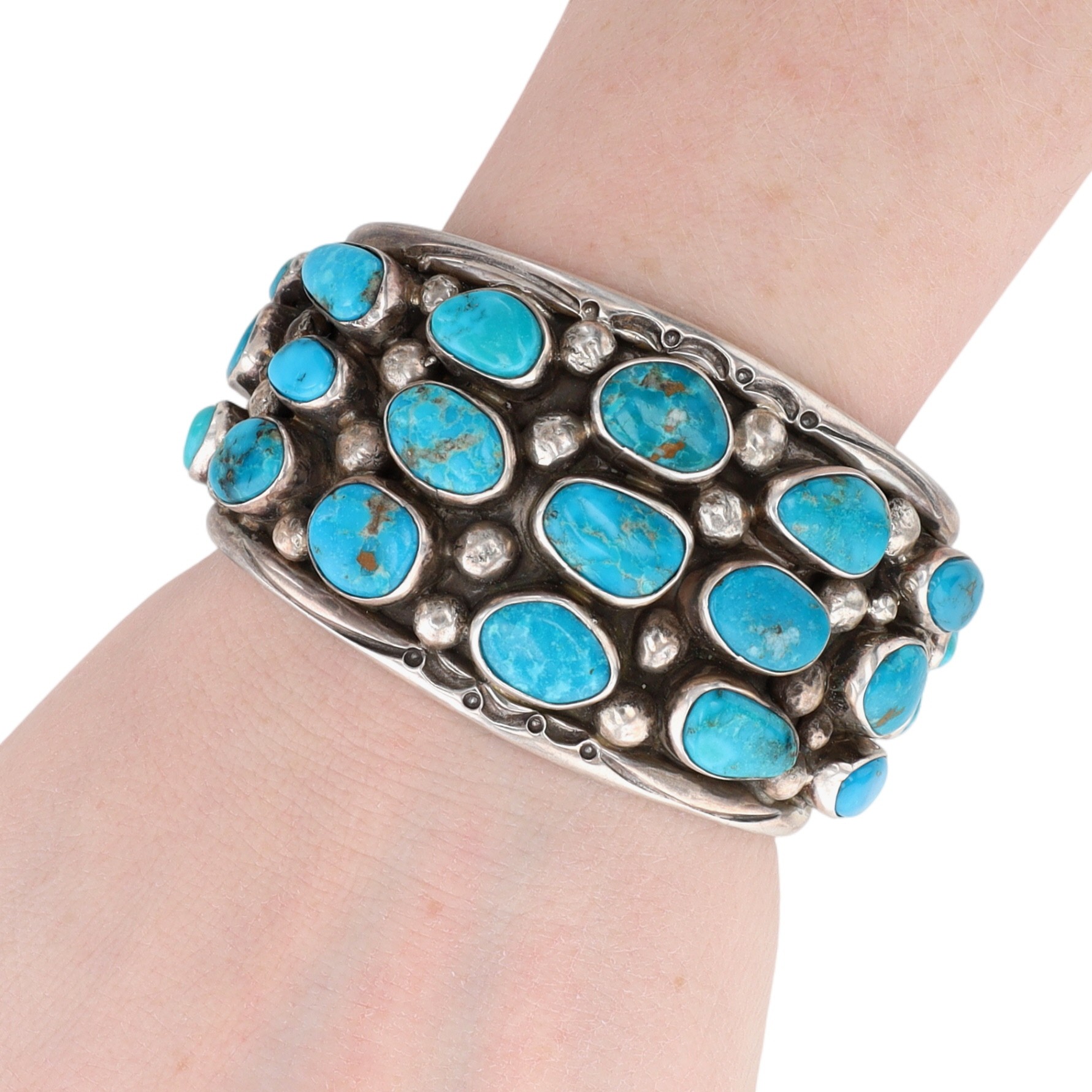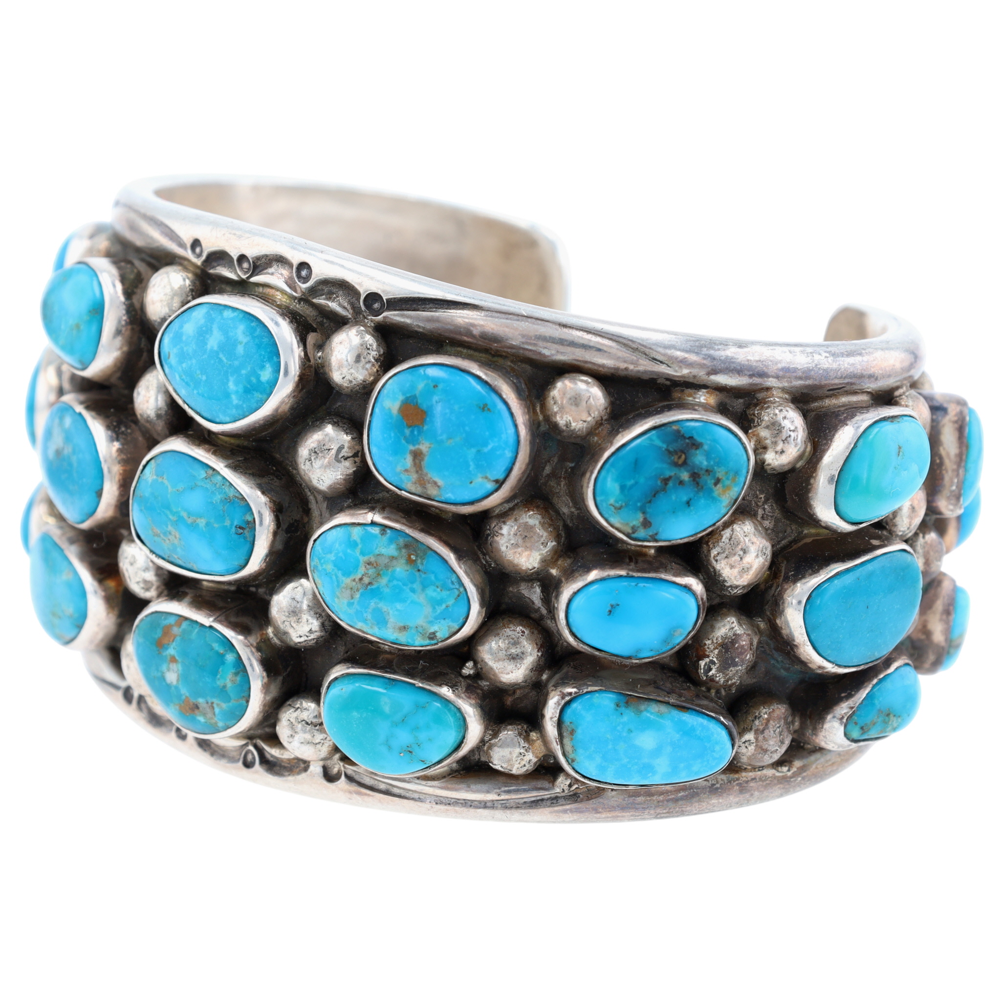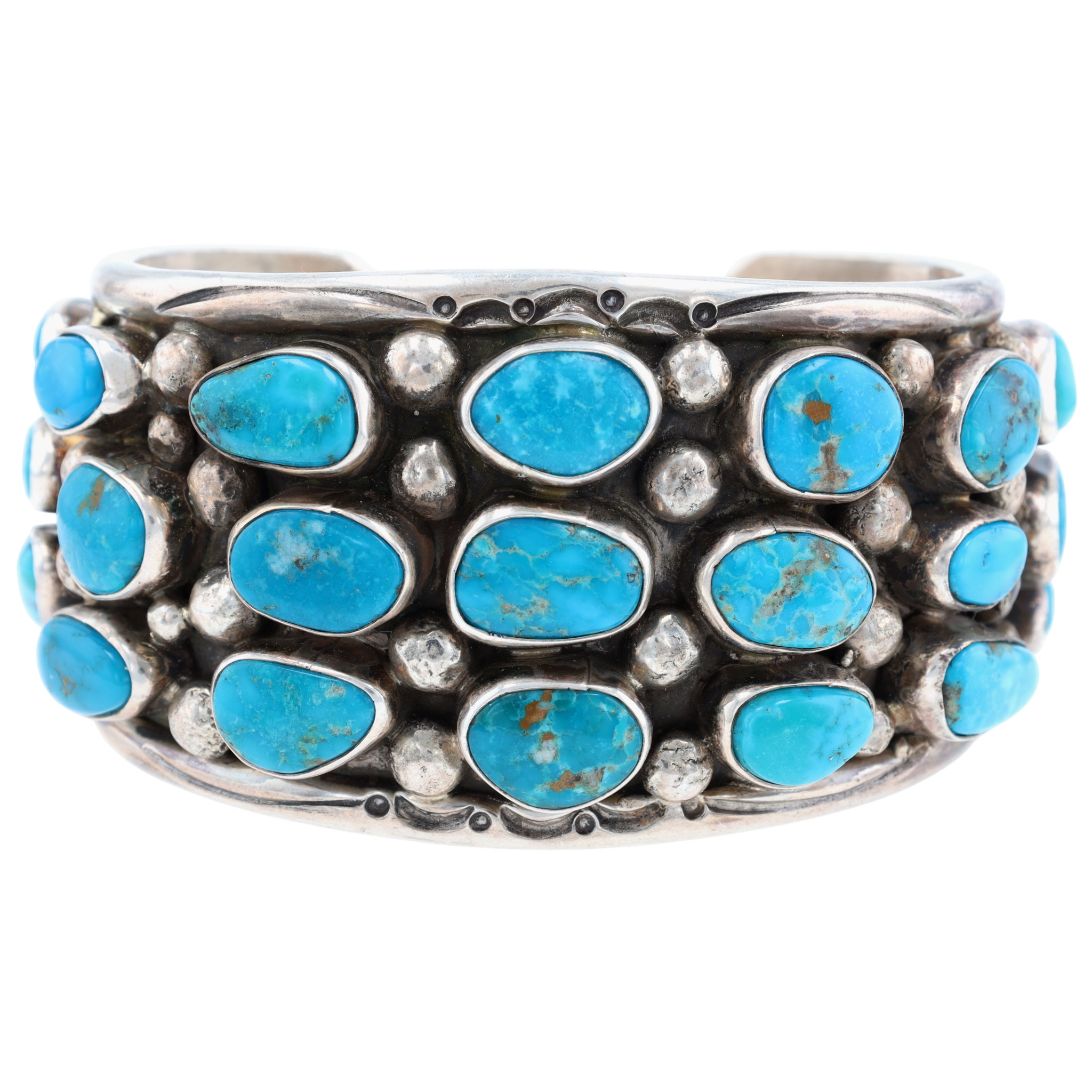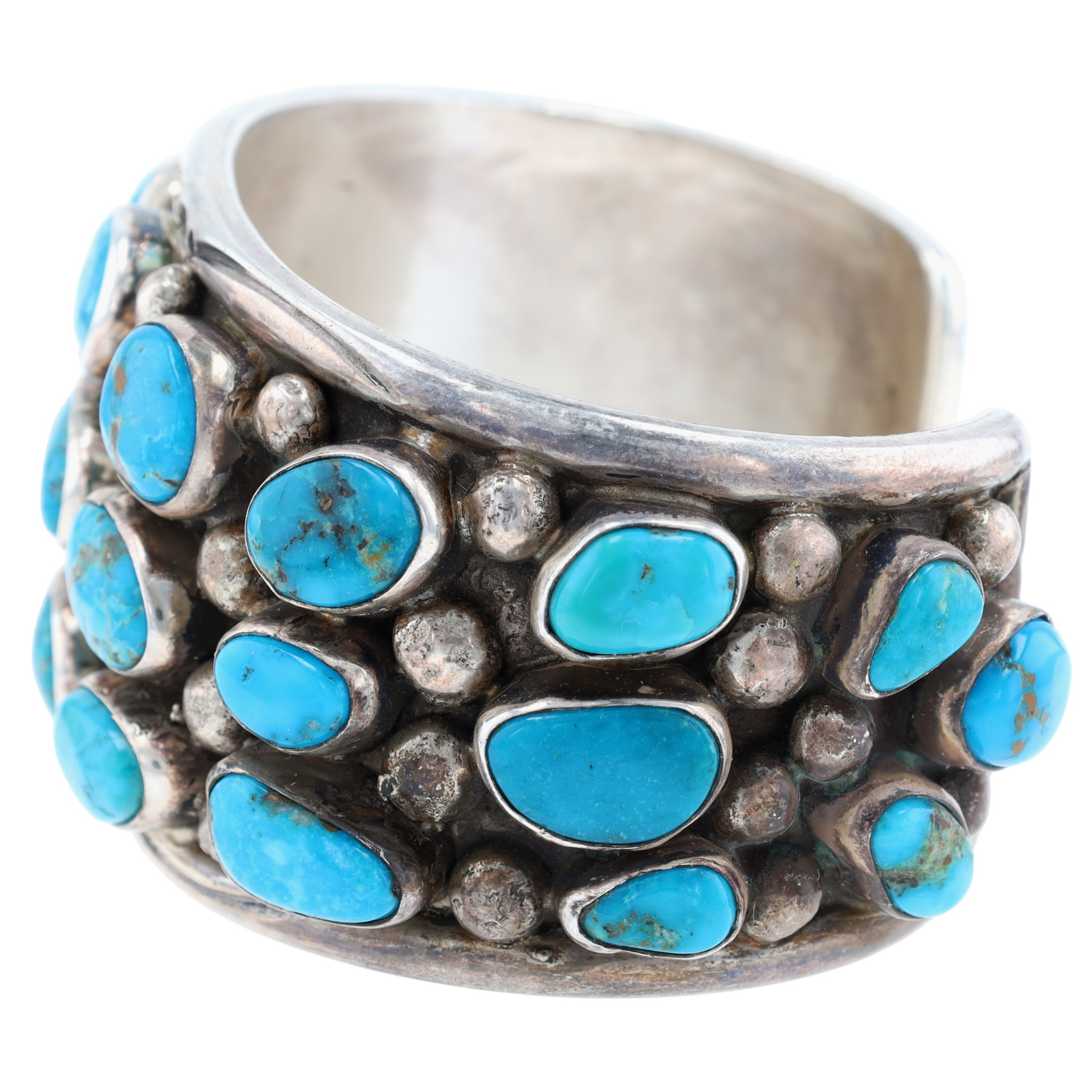 Presented in partnership with the historic Richardson’s Trading Post, a cornerstone of Native American jewelry since 1913. Selected from their archives of rare vintage and contemporary pieces. Mike Platero Navajo Sterling Turquoise Cuff Bracelet 124g