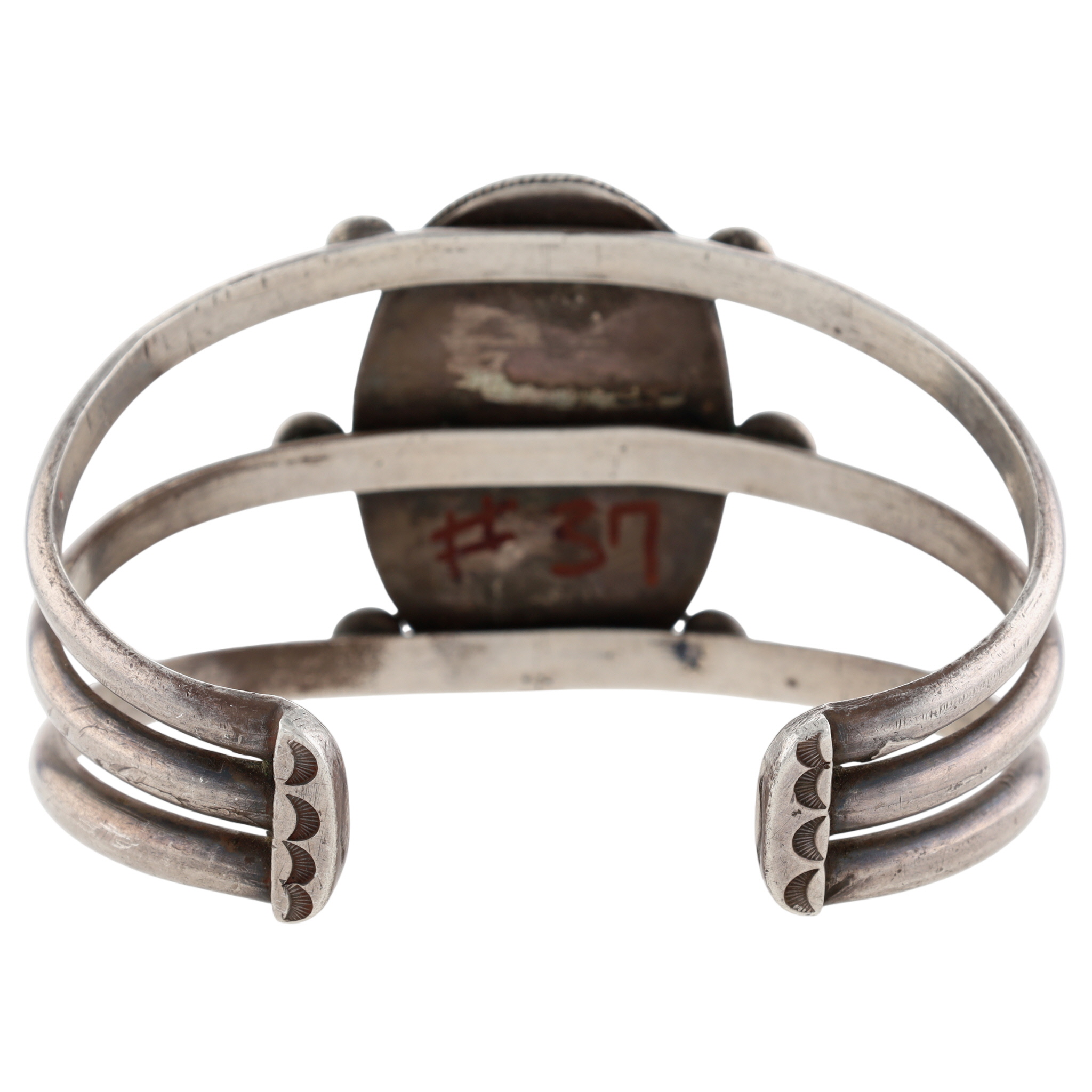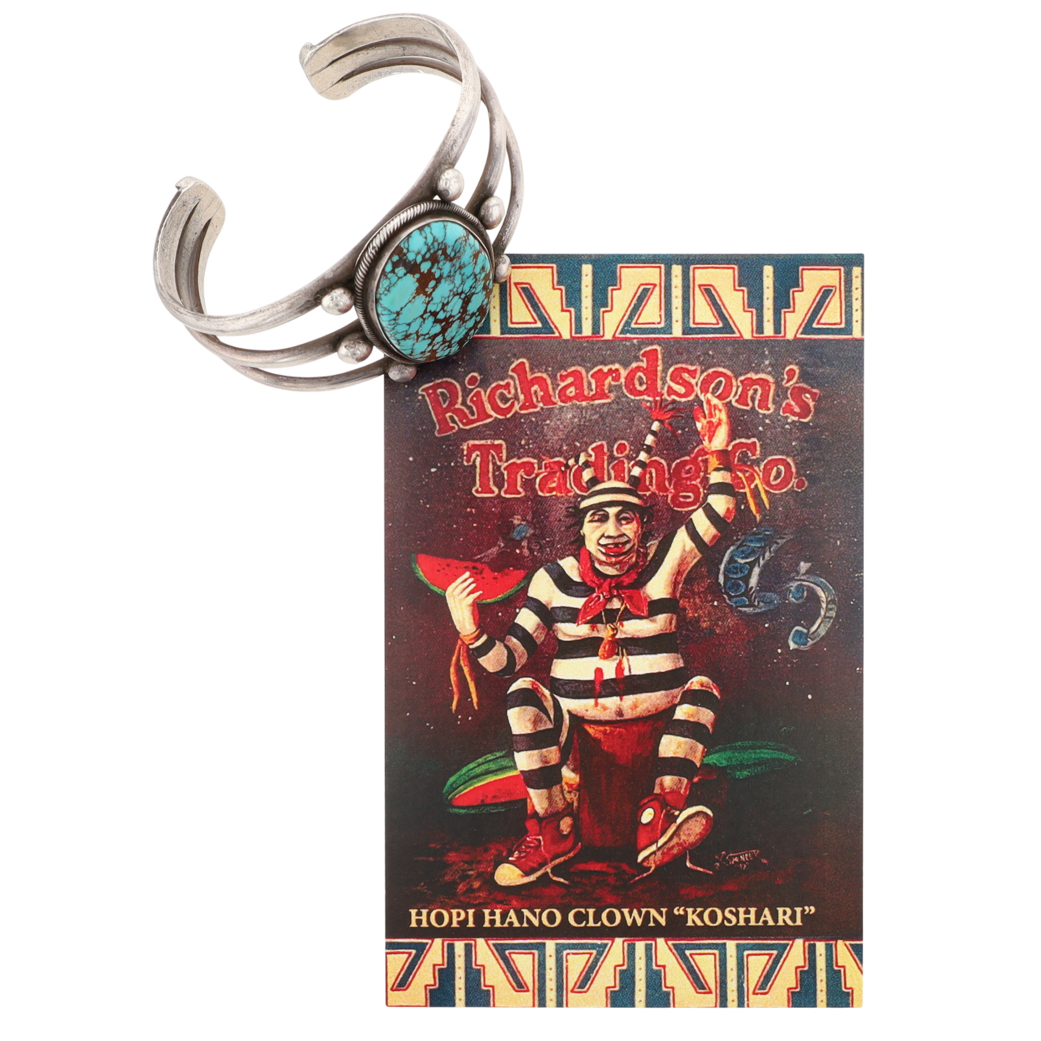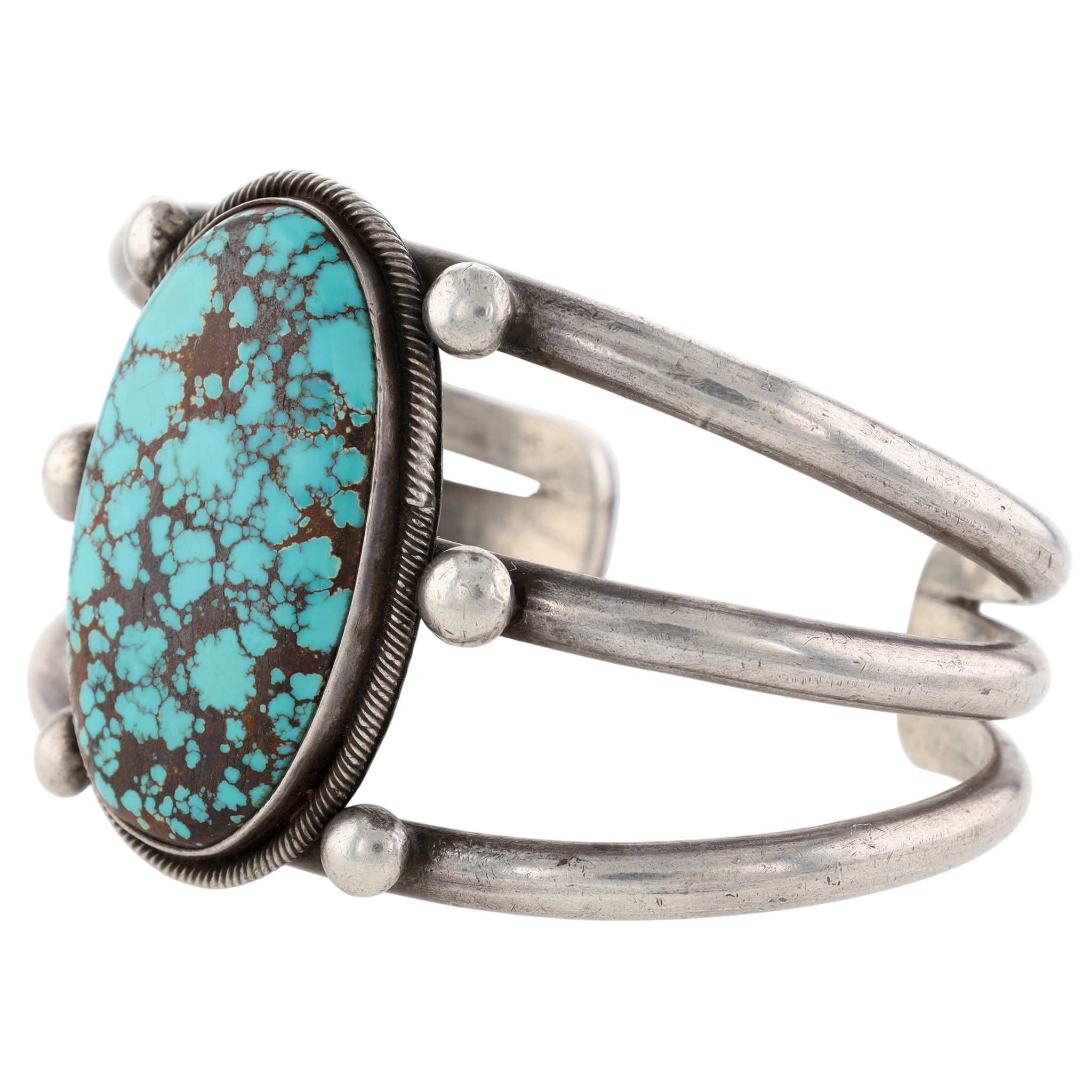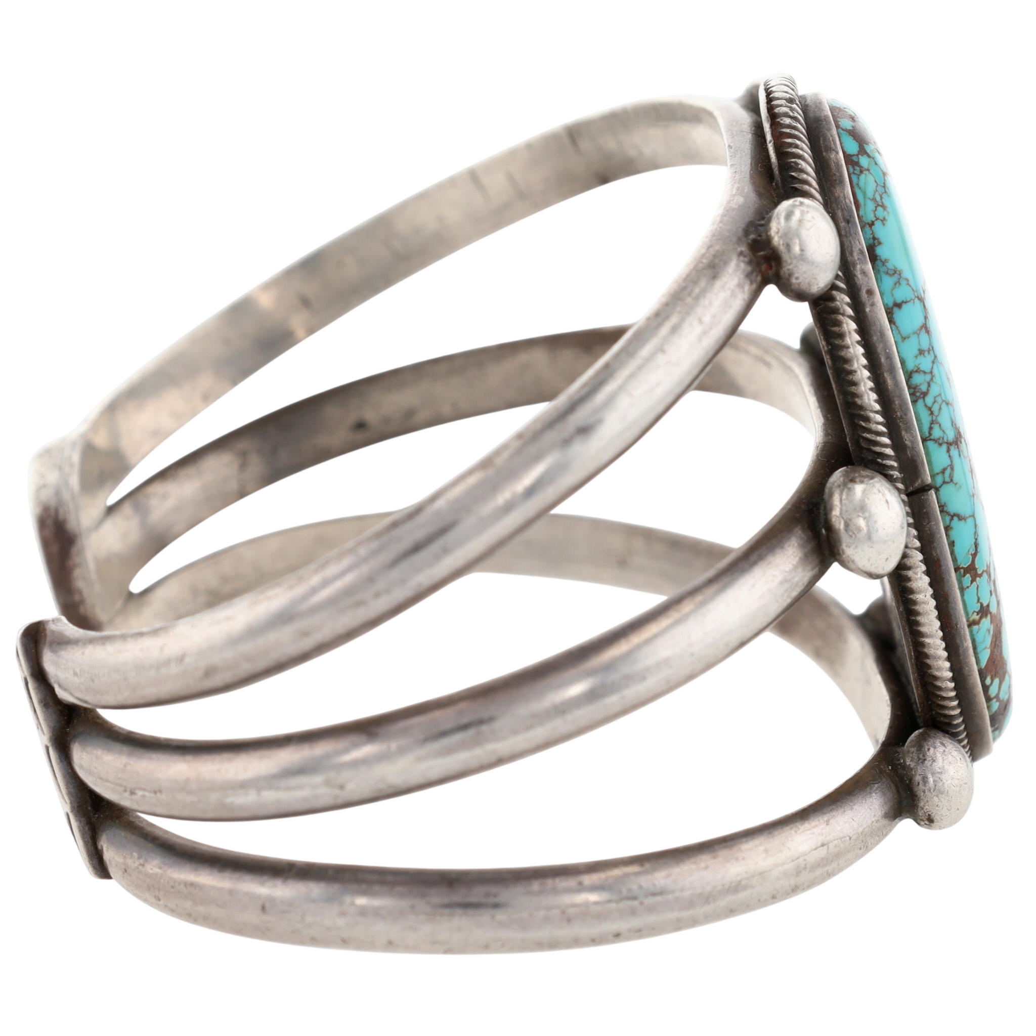 Presented in partnership with the historic Richardson’s Trading Post, a cornerstone of Native American jewelry since 1913. Selected from their archives of rare vintage and contemporary pieces. Vintage Navajo Sterling Morenci Turquoise Cuff Bracelet 60g