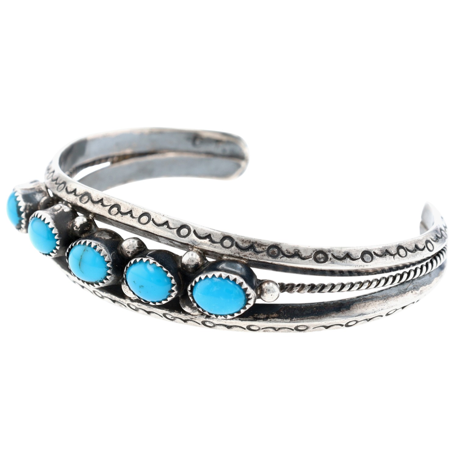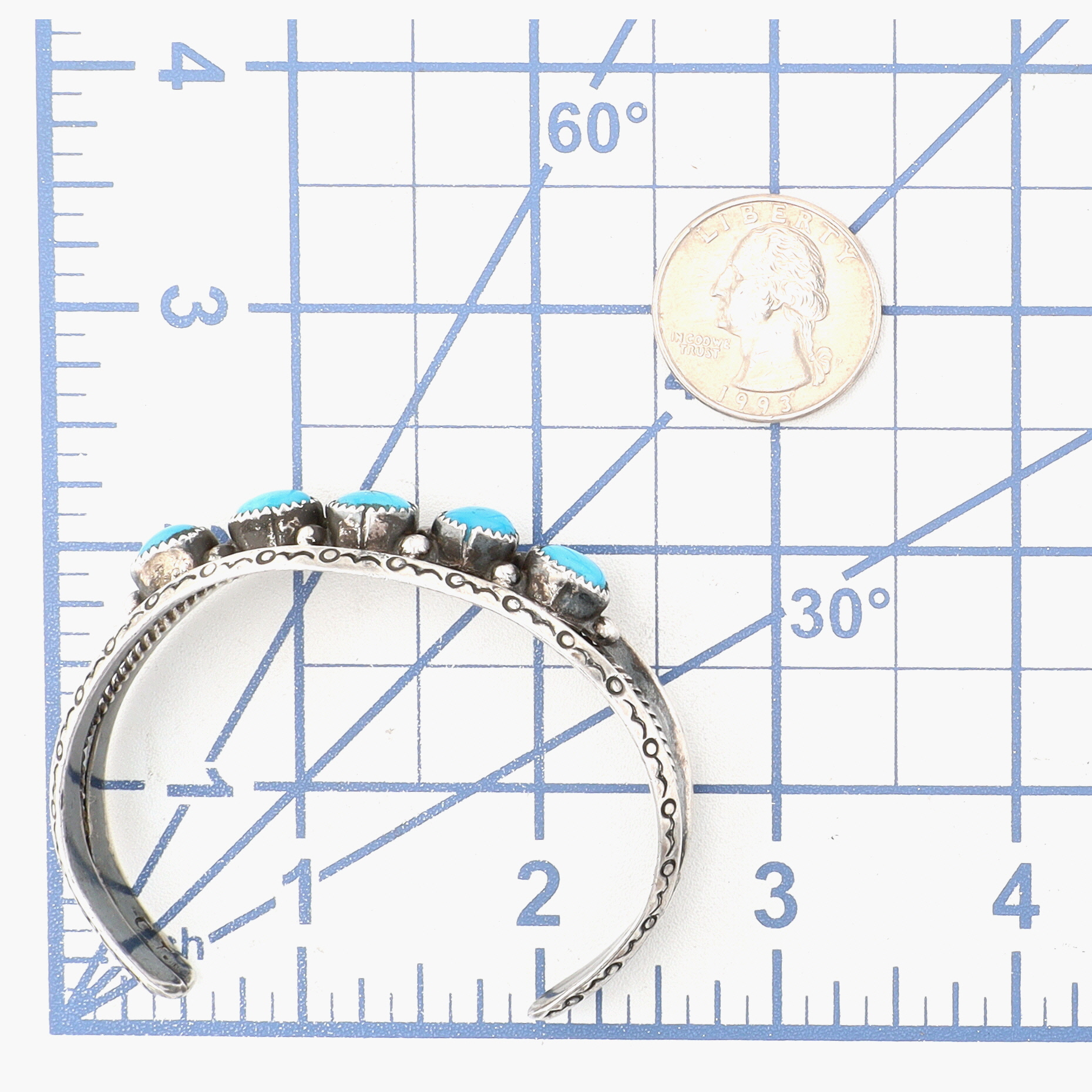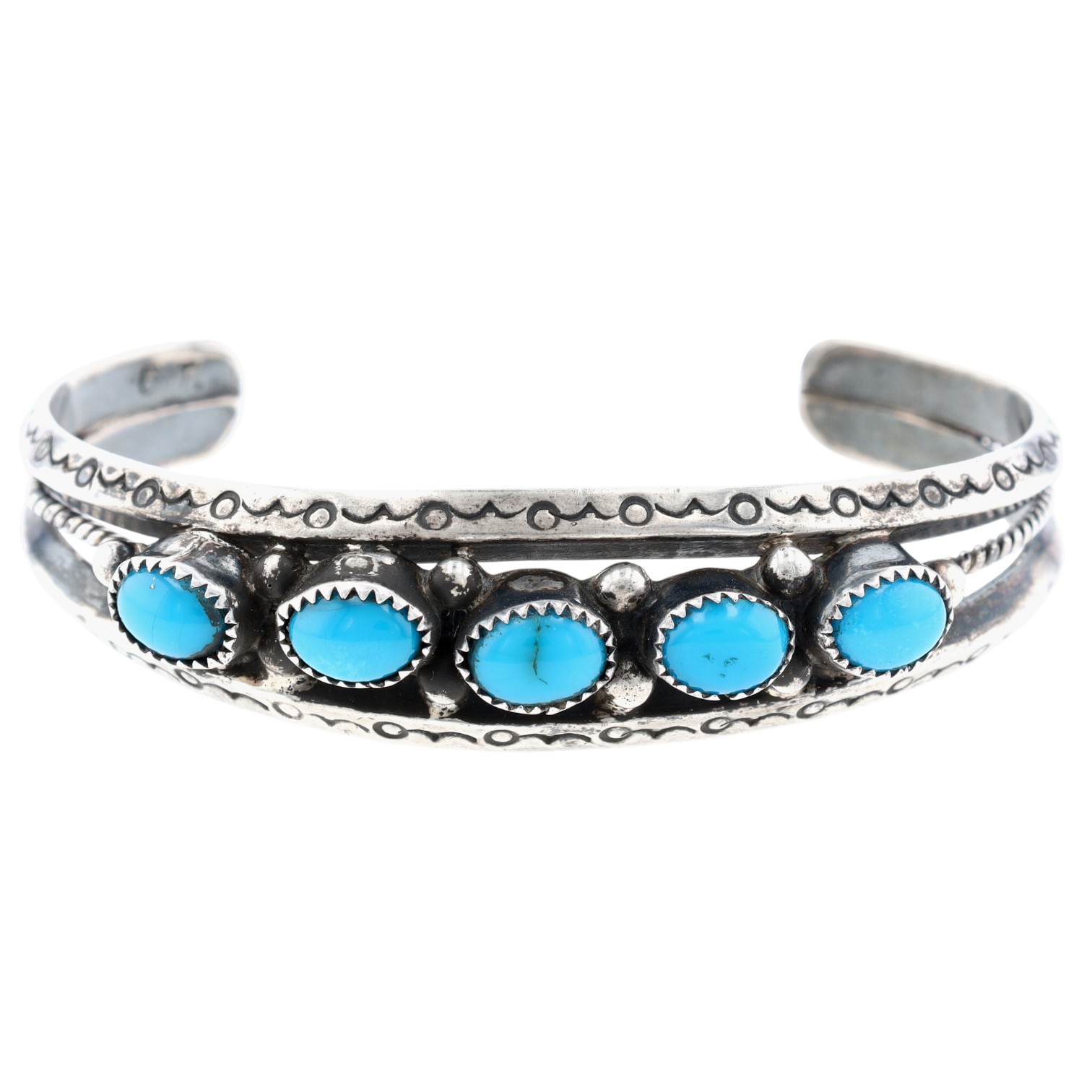 Signed ‘CT.’ Vintage Navajo Sterling Turquoise Cuff Bracelet 27g