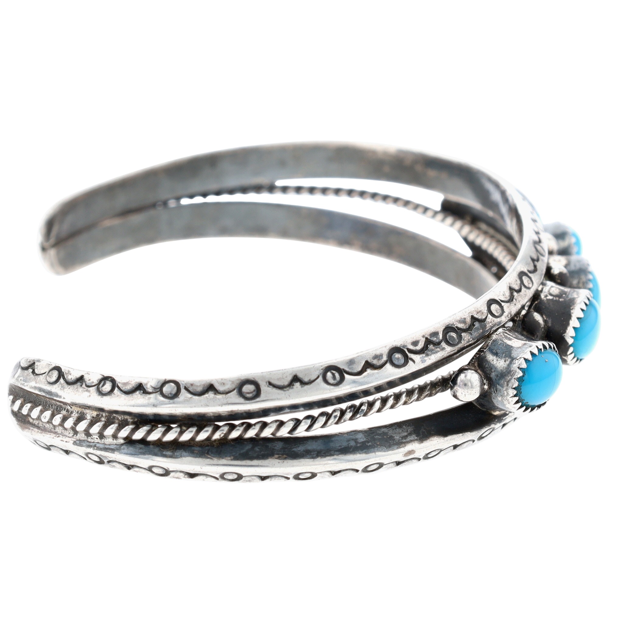 Signed Vintage Navajo Sterling Turquoise Cuff Bracelet
