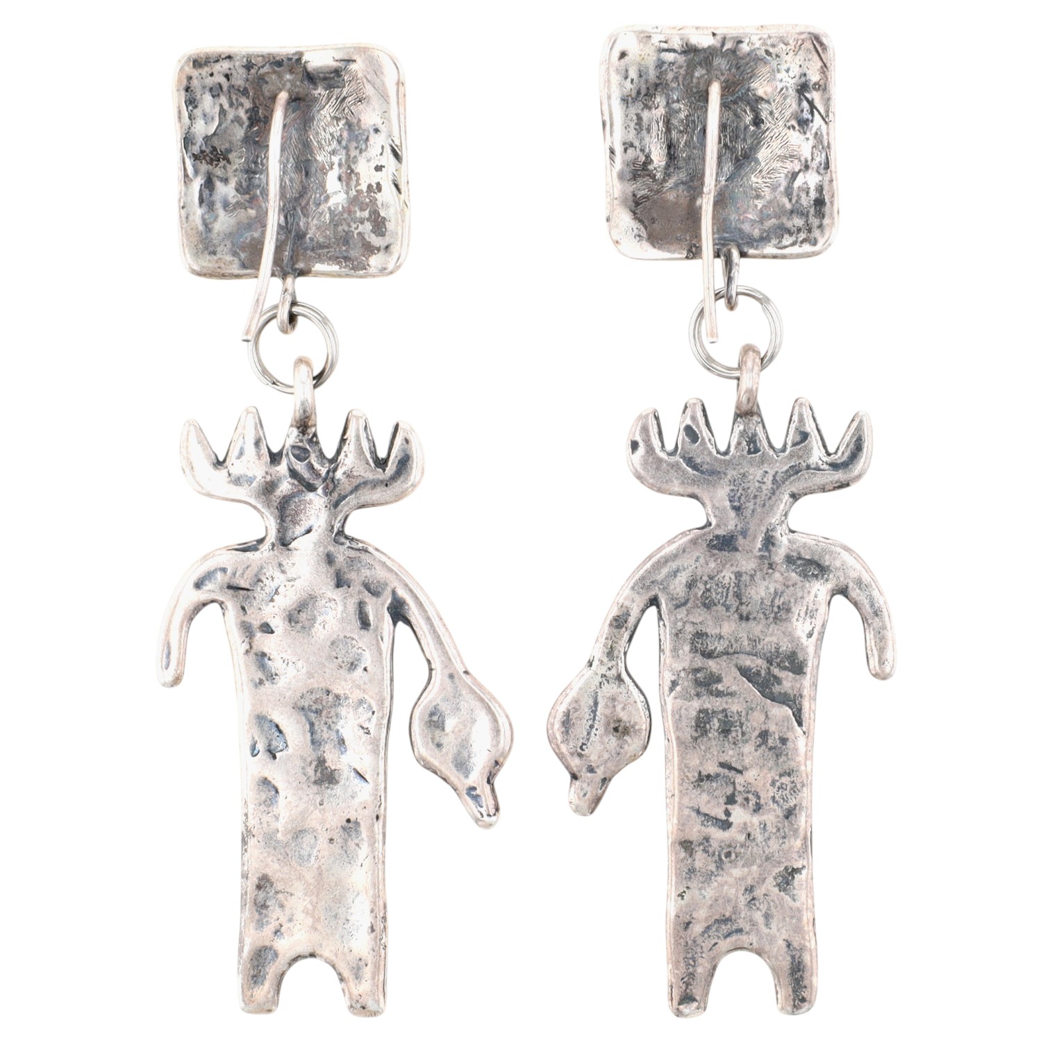 Vintage Native American Sterling Deer Hook Dangle Earrings 18g