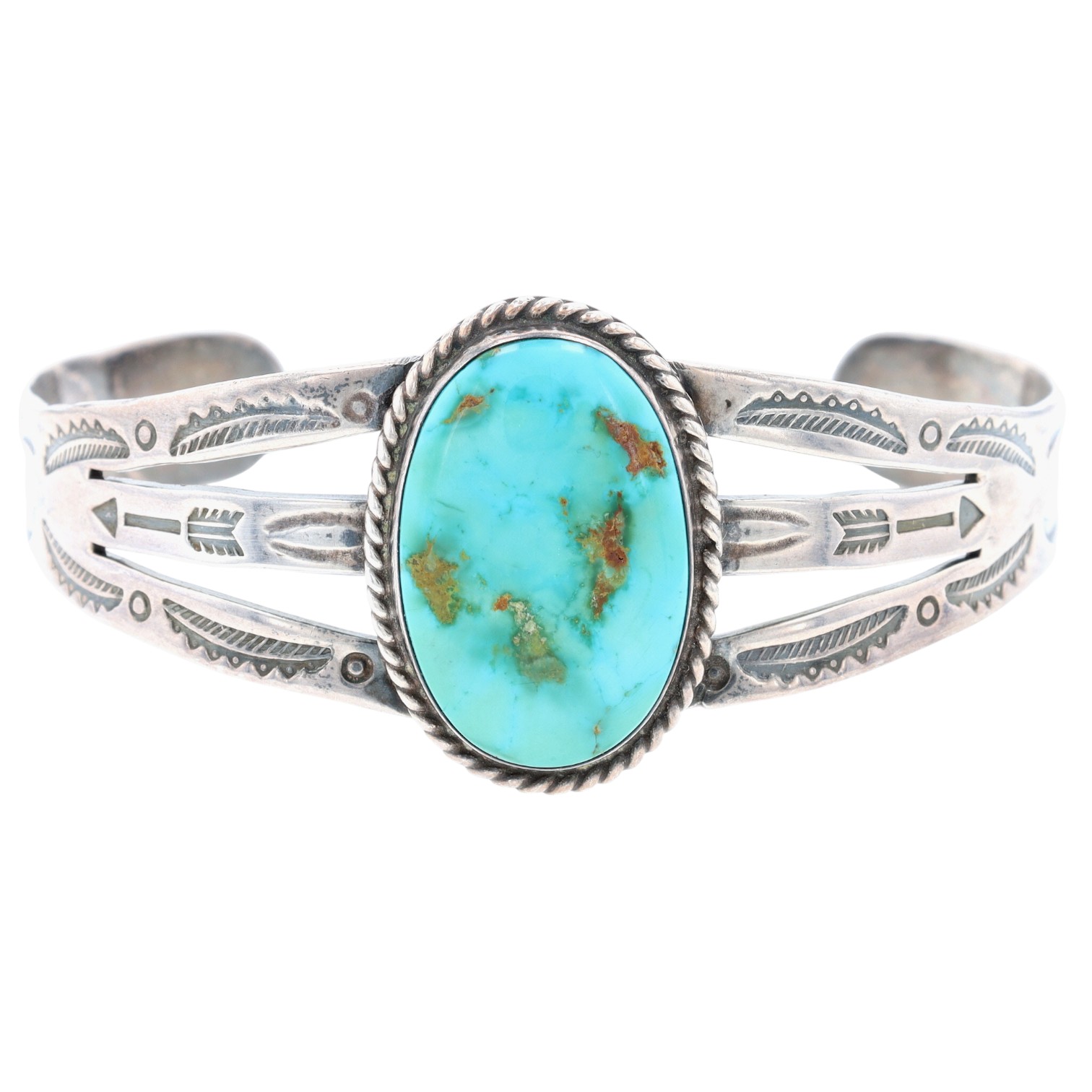 Fred Harvey Era Navajo Sterling Turquoise Cuff Bracelet 20.5g