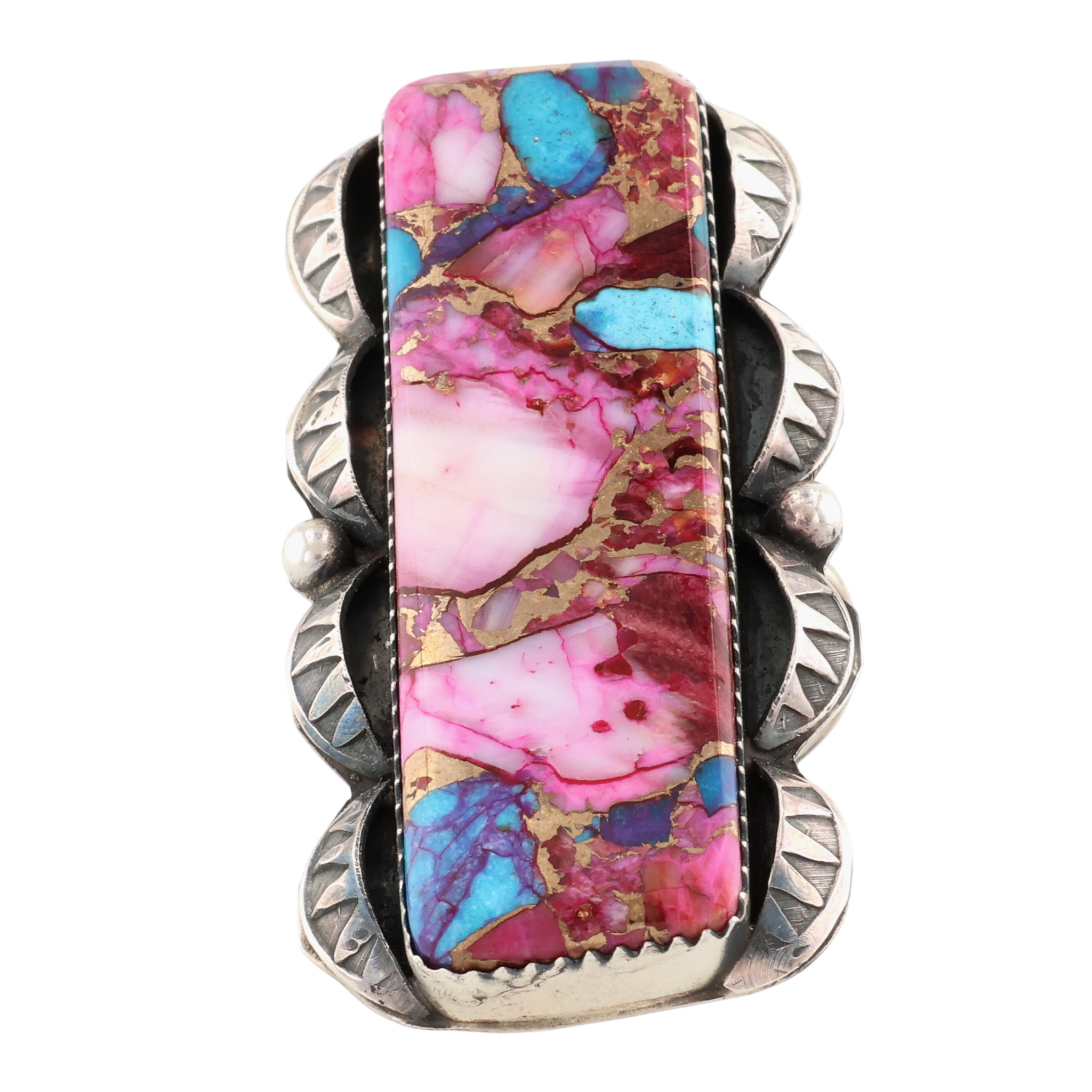 Tia Long Navajo Sterling Pink Dahlia Adjustable Ring 16g, Sz 6