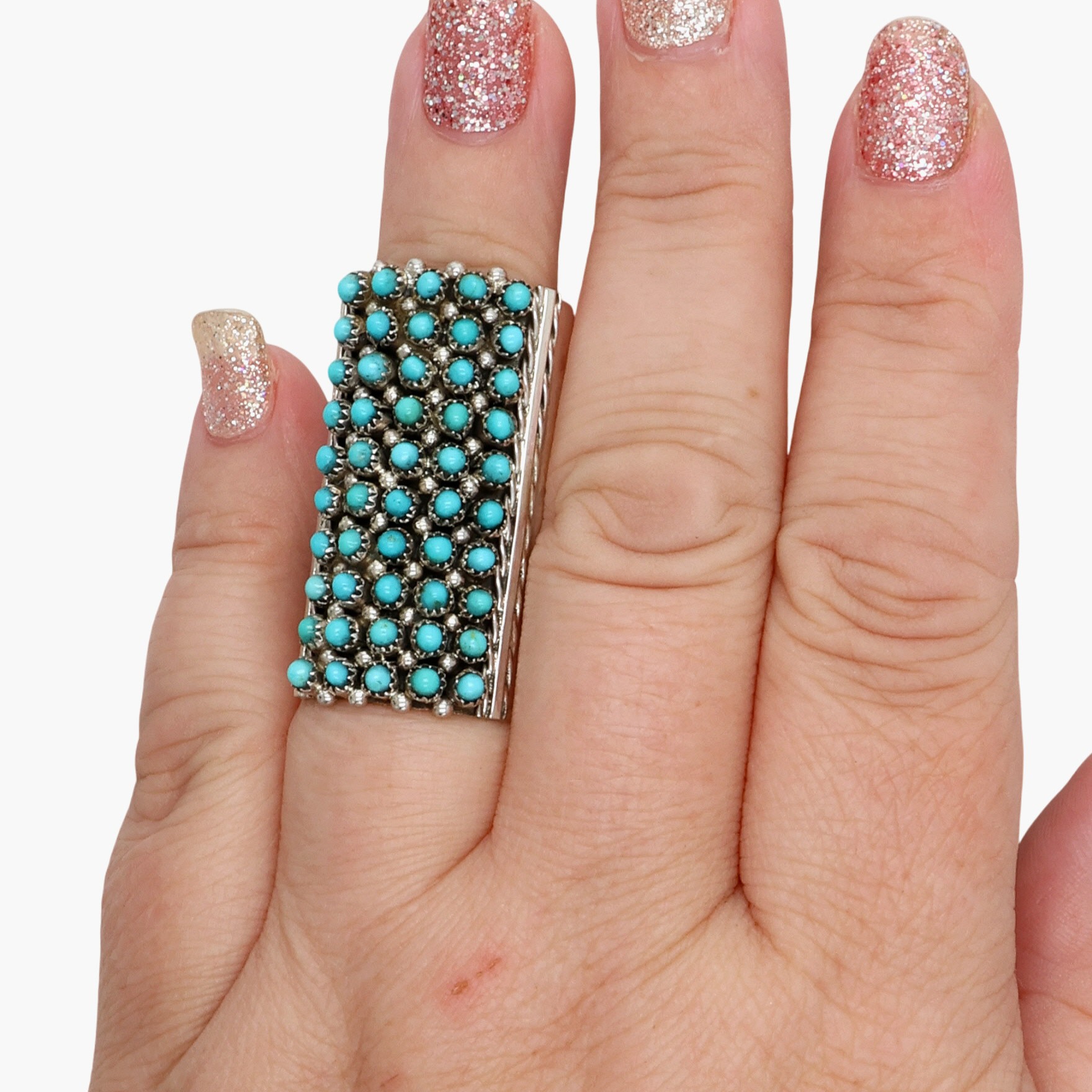 Steven Haloo Zuni Sterling Turquoise Ring Sz 7.5, 14g