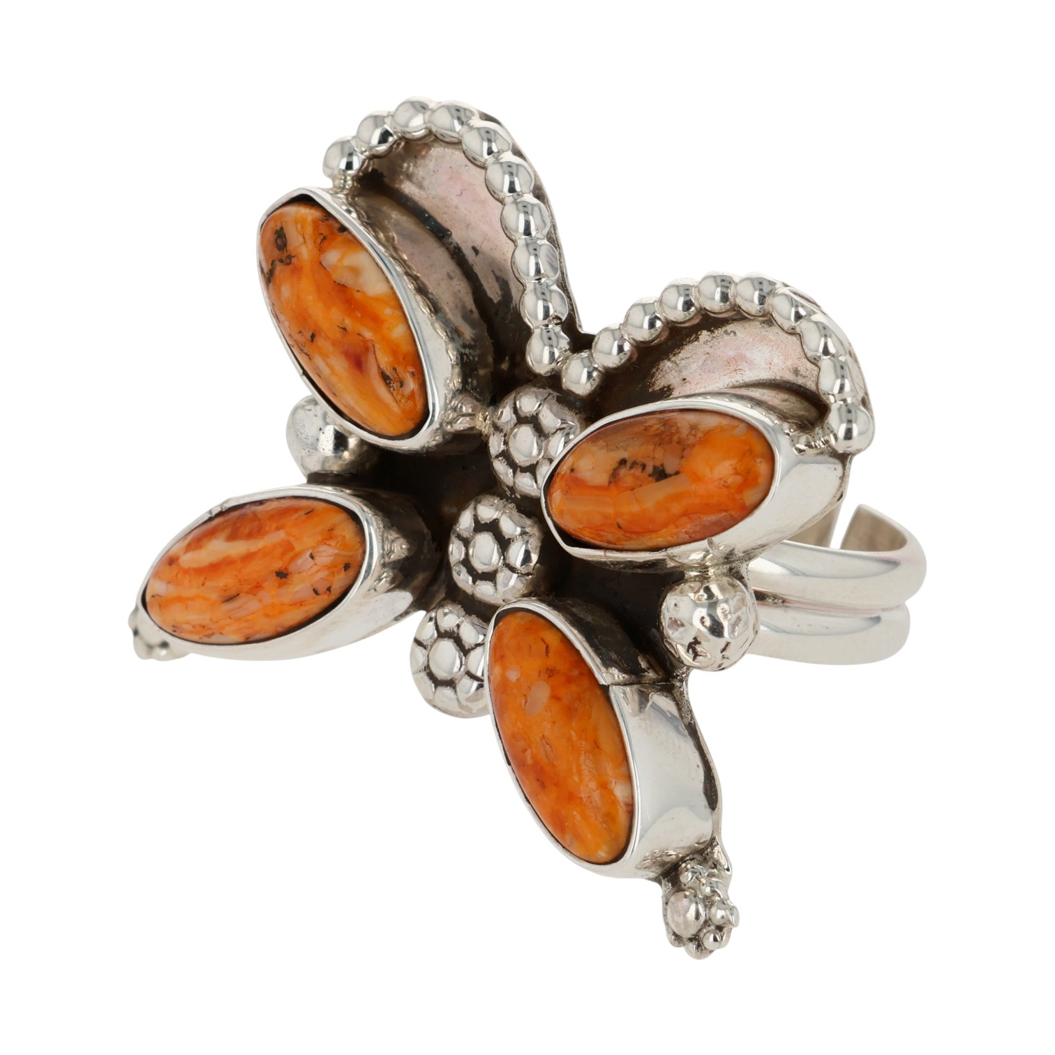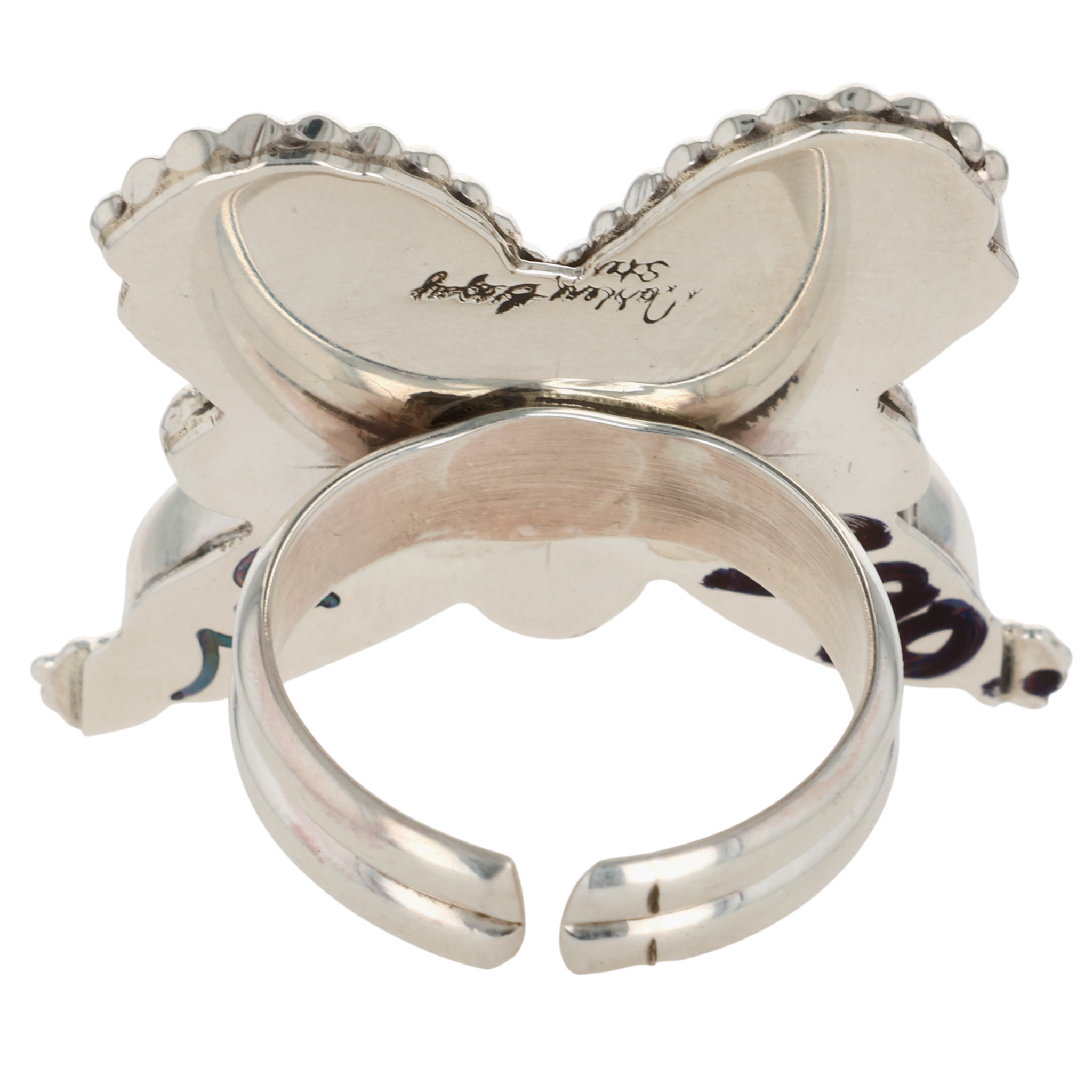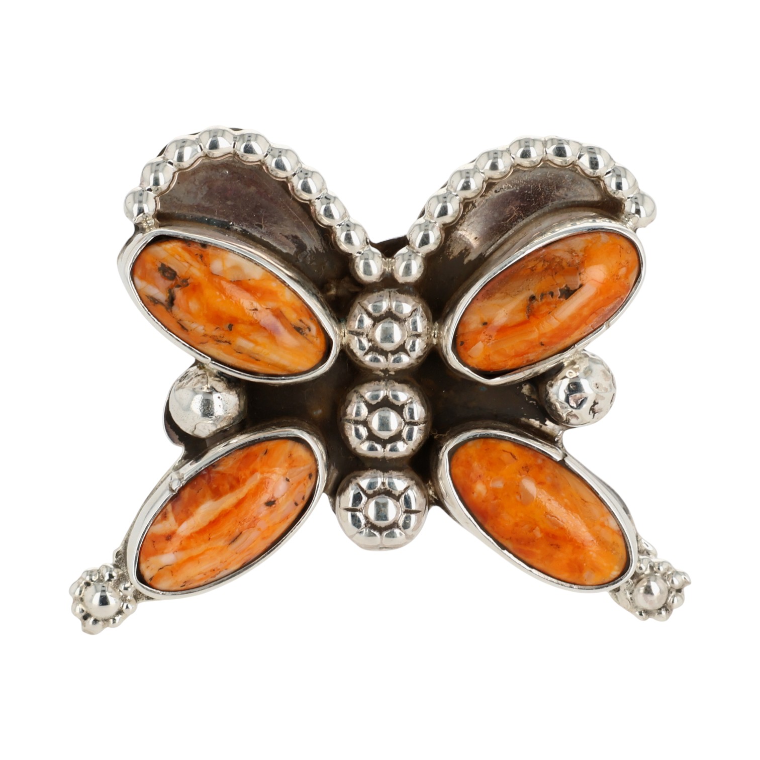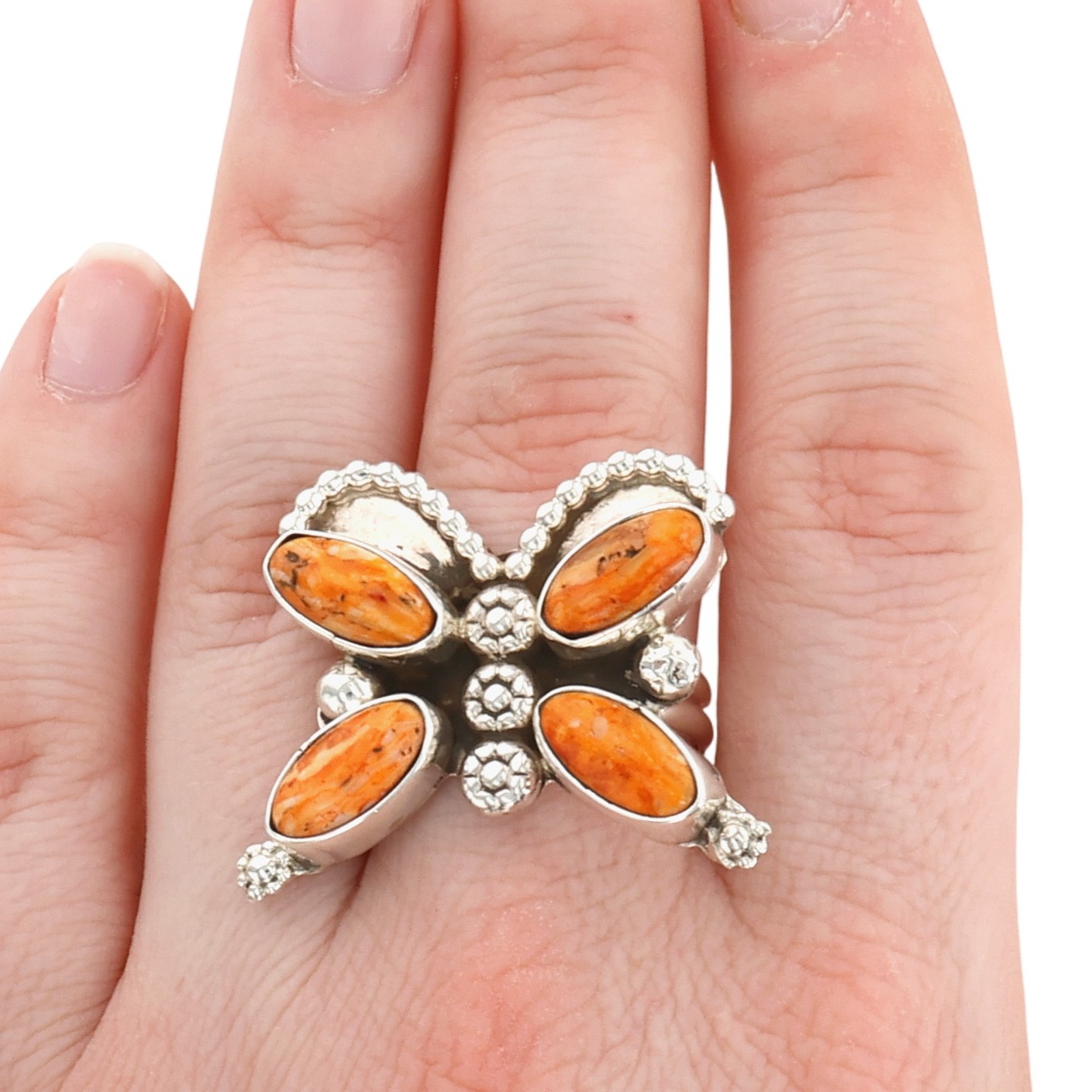 Darlene Begay Navajo Sterling Spiny Oyster Butterfly Adjustable Ring 14g, Sz 9