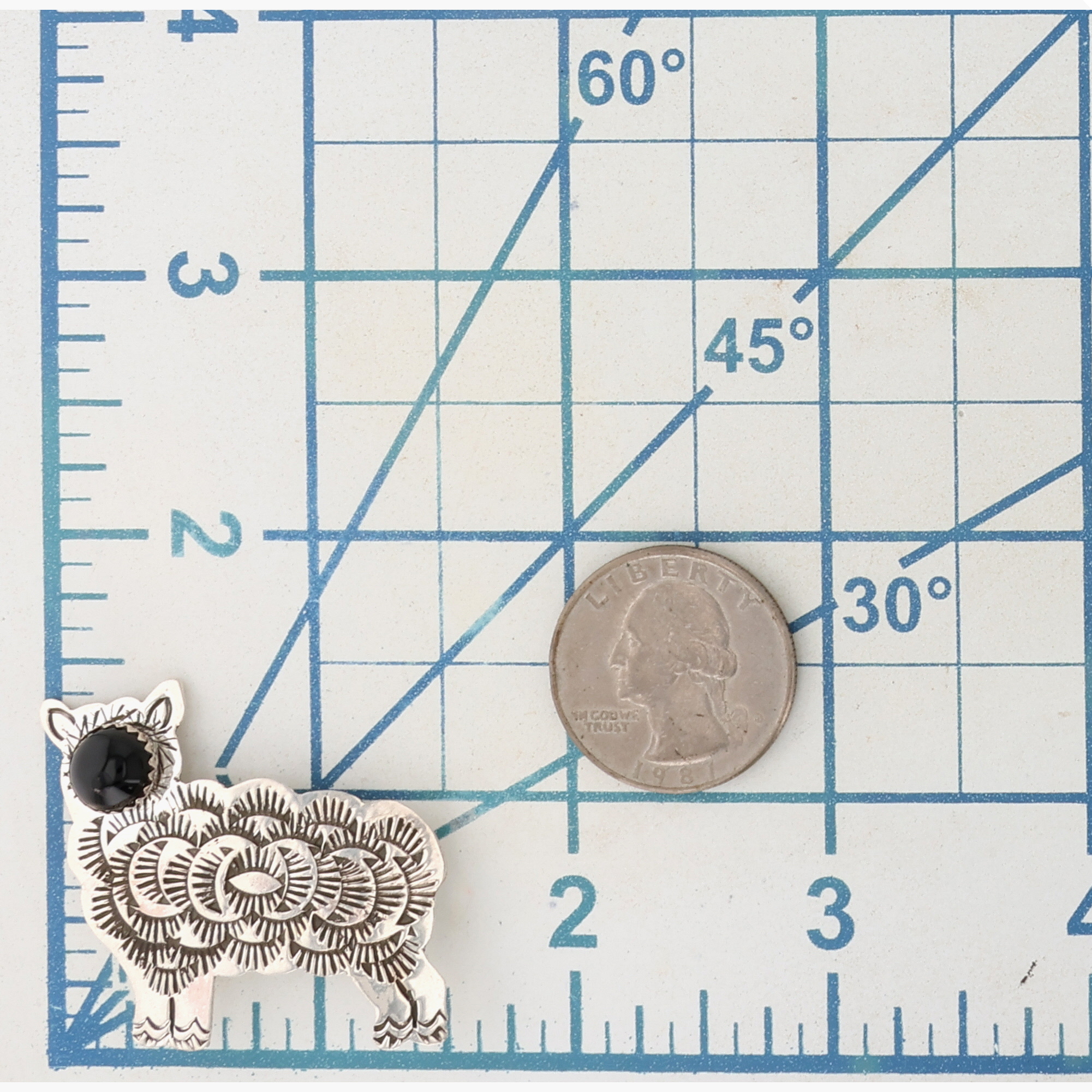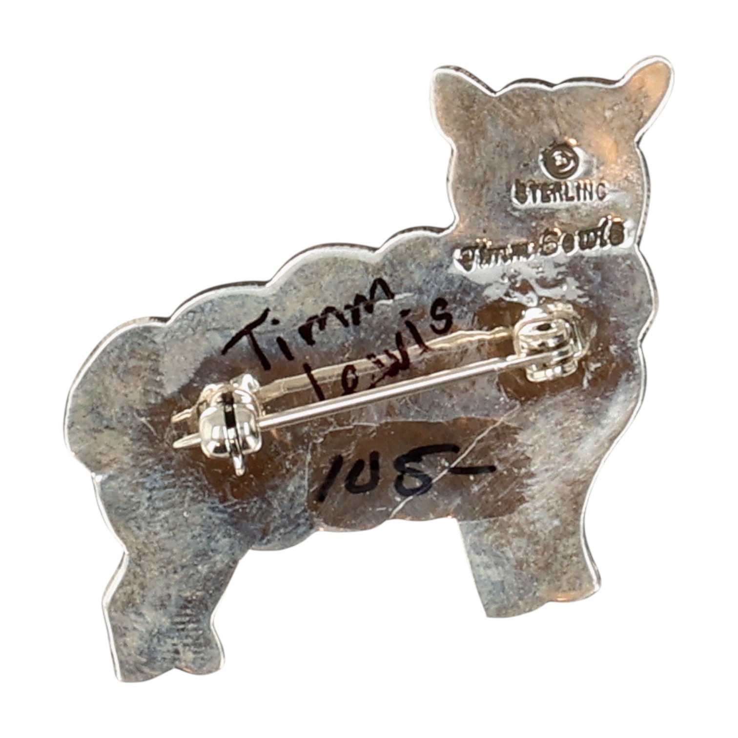 Timm Lewis Navajo Sterling Onyx Lamb Brooch