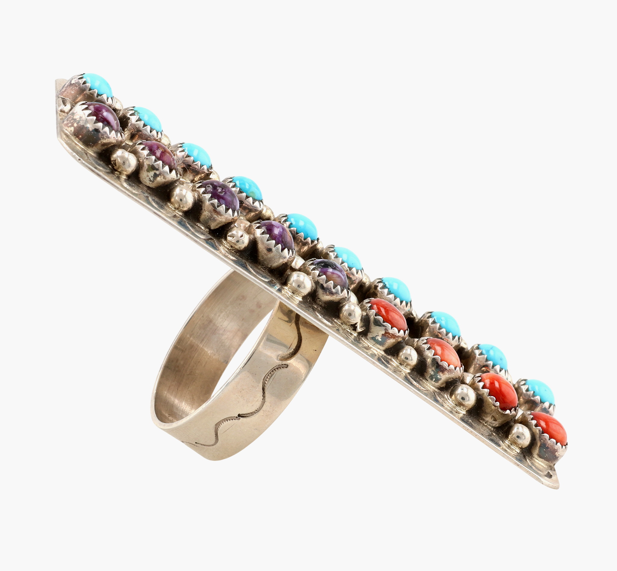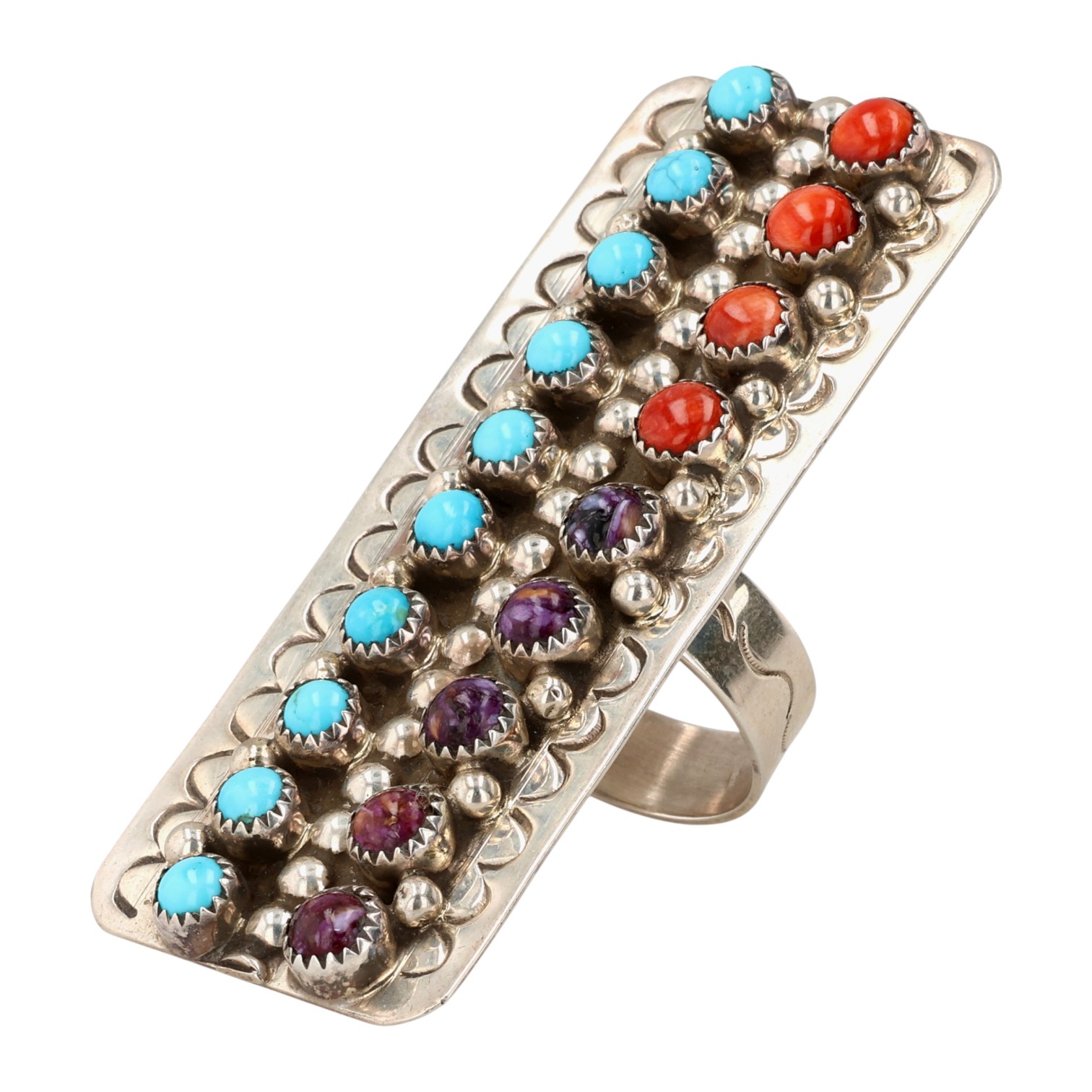 Darlene Begay Navajo Sterling Multi-Stone Ring Sz 9.5, 21g