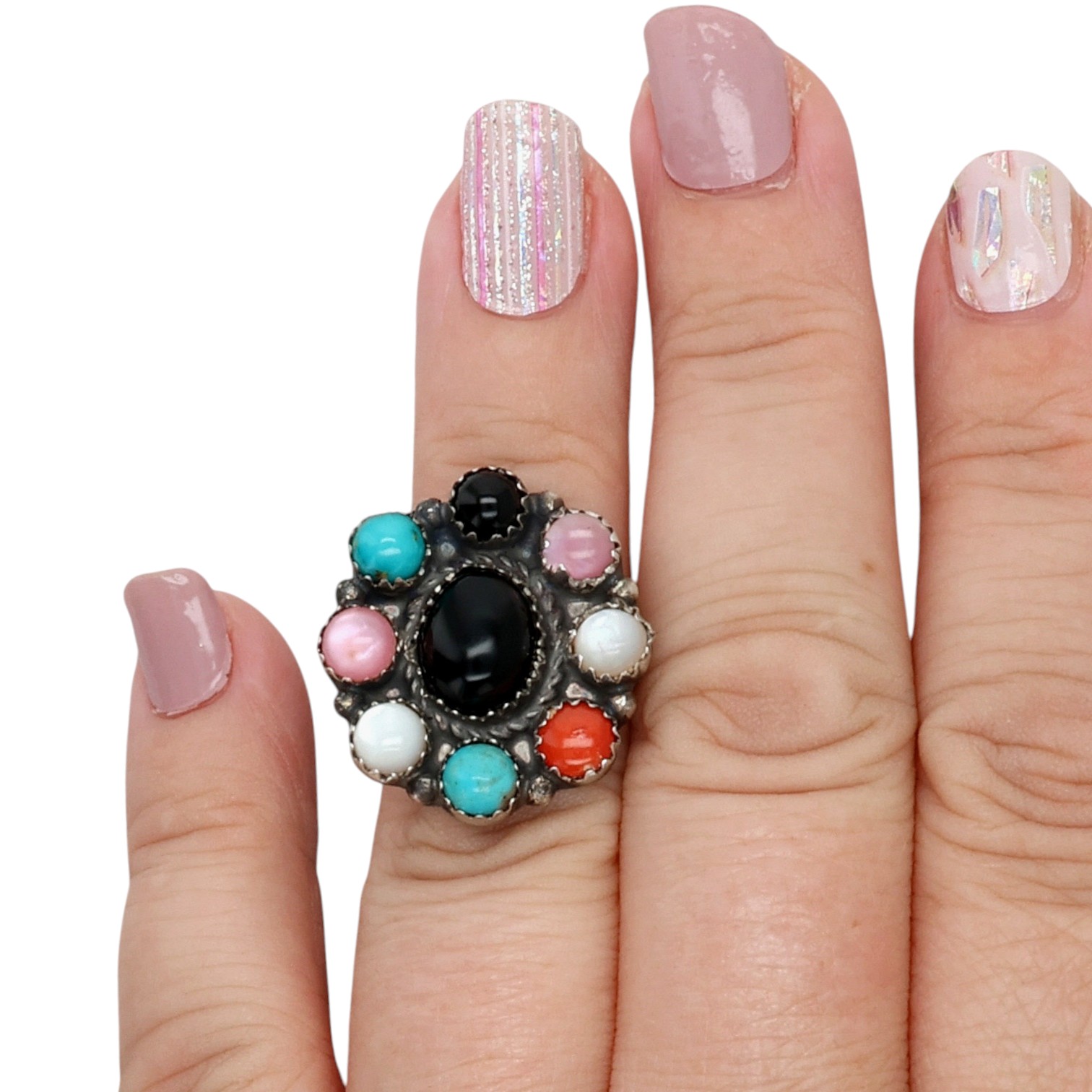 -Coral, Pink Conch, Mother-of-Pearl, Turquoise, Onyx