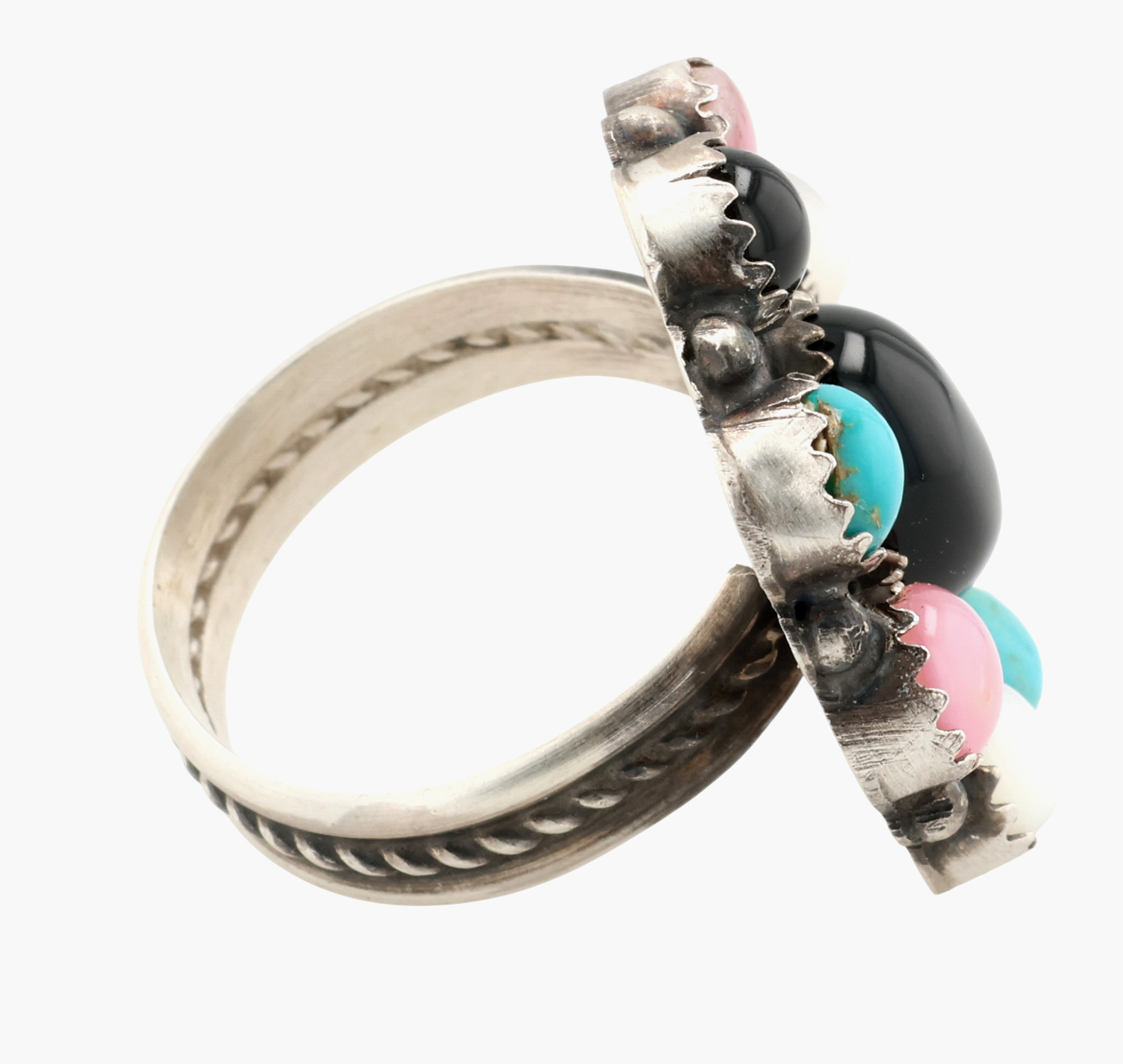 Delvin Brown Navajo Sterling Multi-Stone Adjustable Ring 6.5g, Sz 6.25