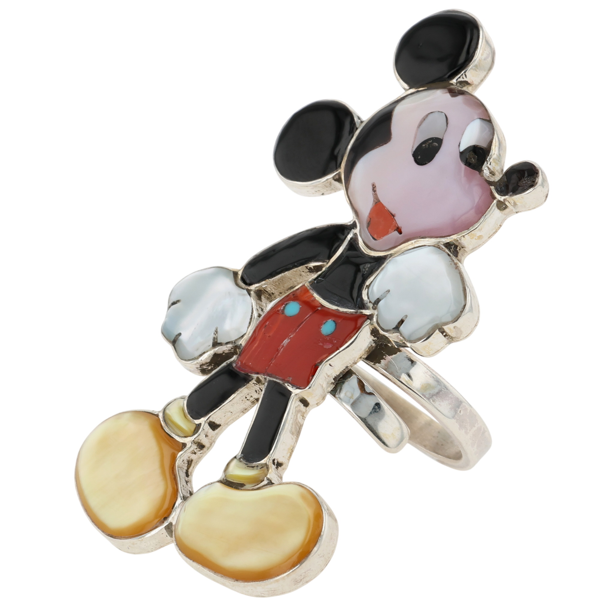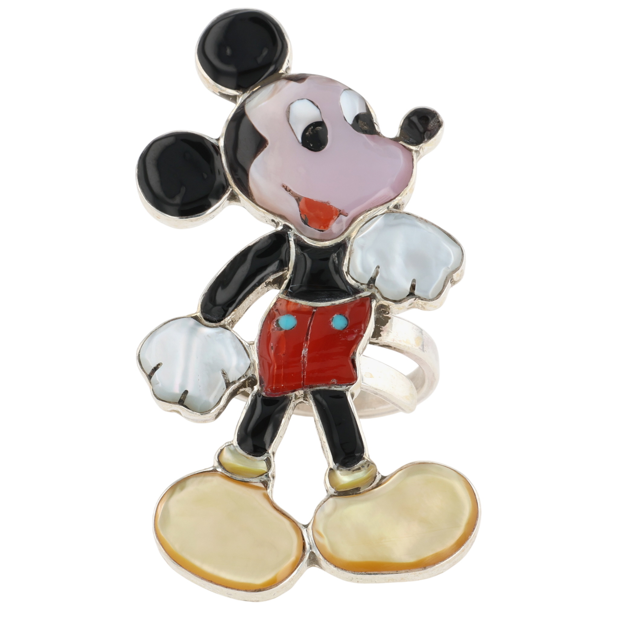 Don Dewa Zunitoon Sterling Multi-Stone Inlay Mickey Mouse Adjustable Ring