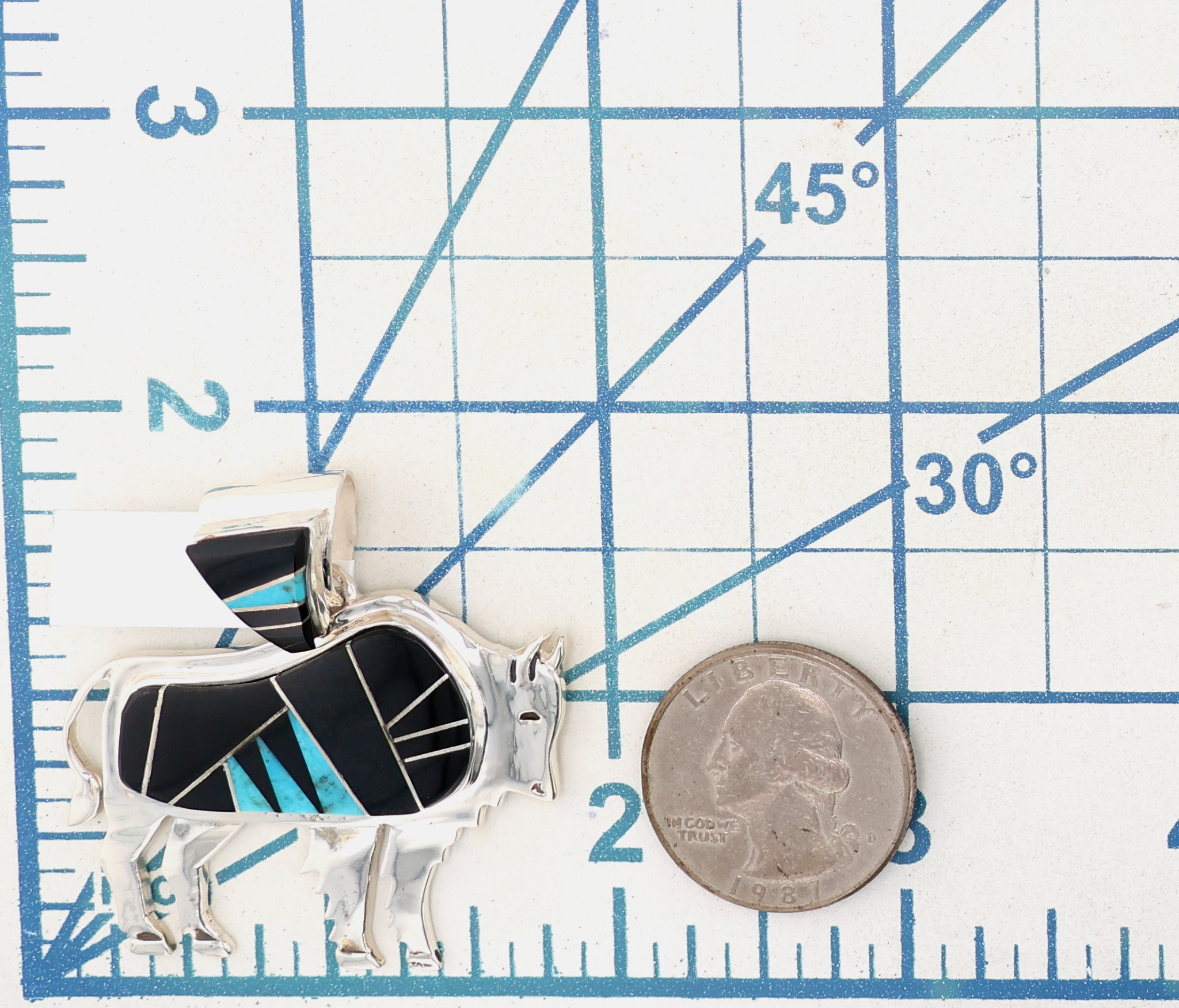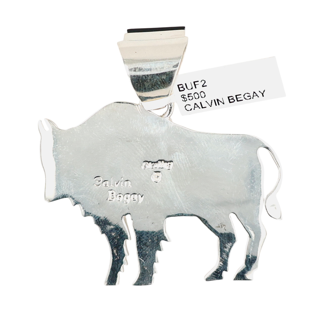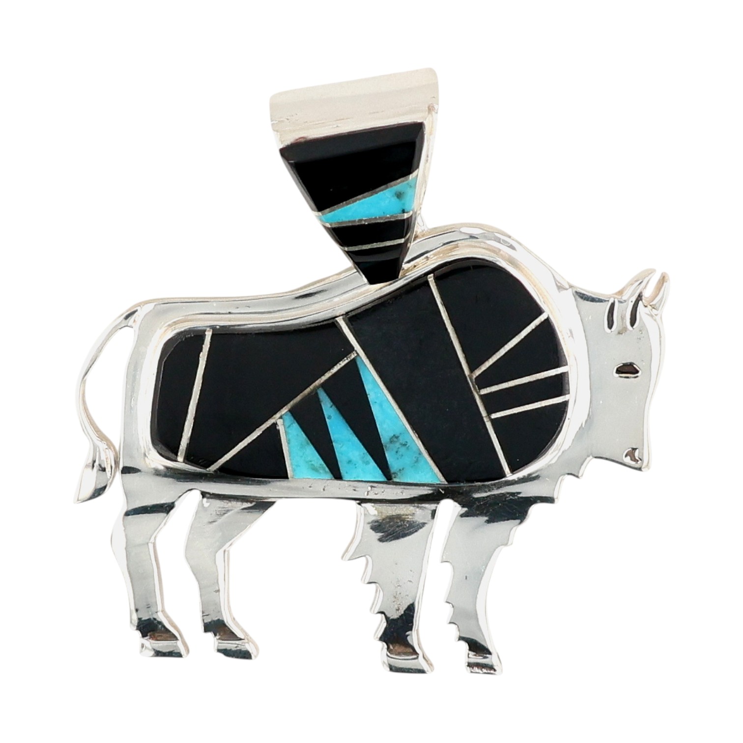 Calvin Begay Navajo Sterling Onyx Turquoise Buffalo Pendant 20g, Buffalo #2