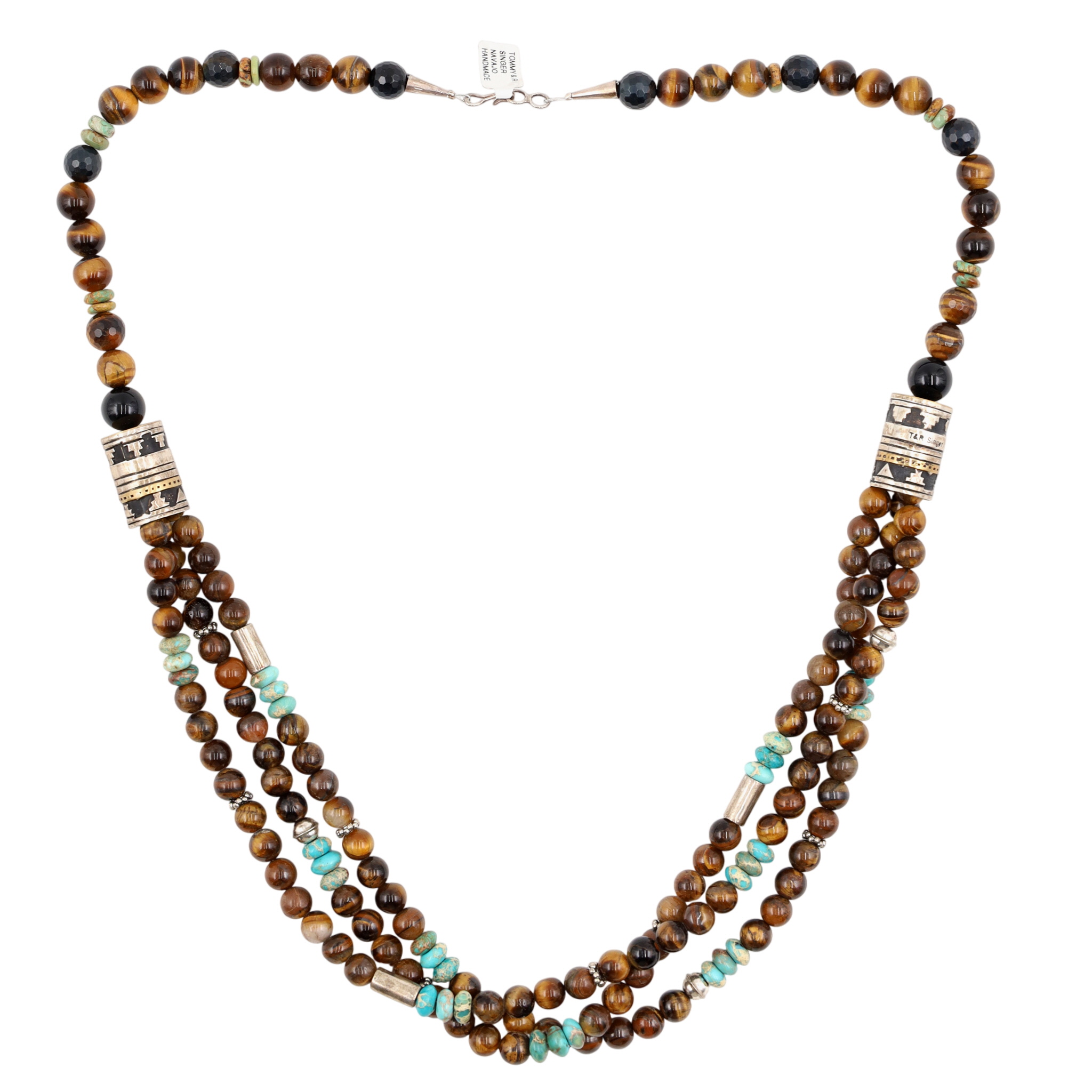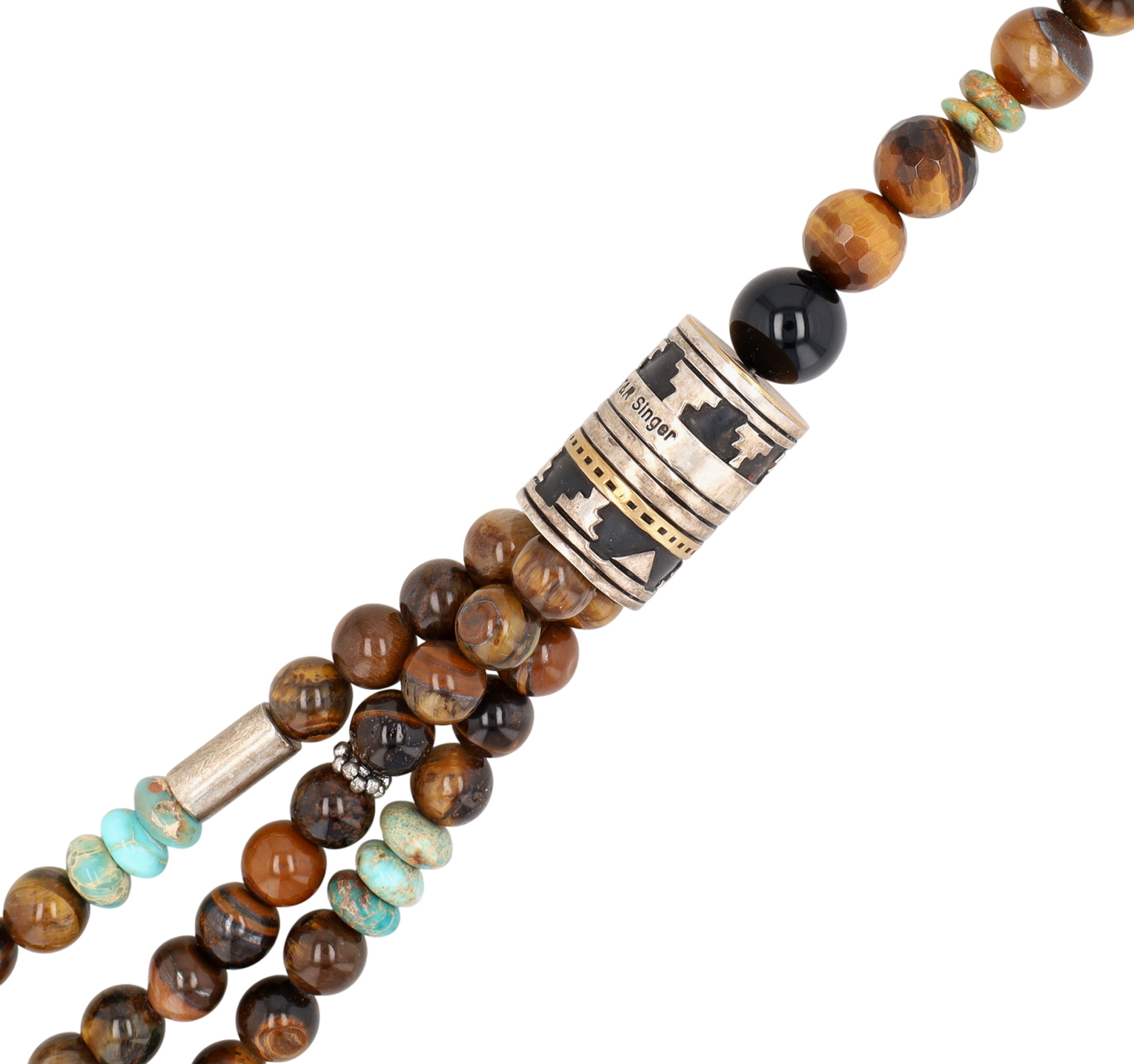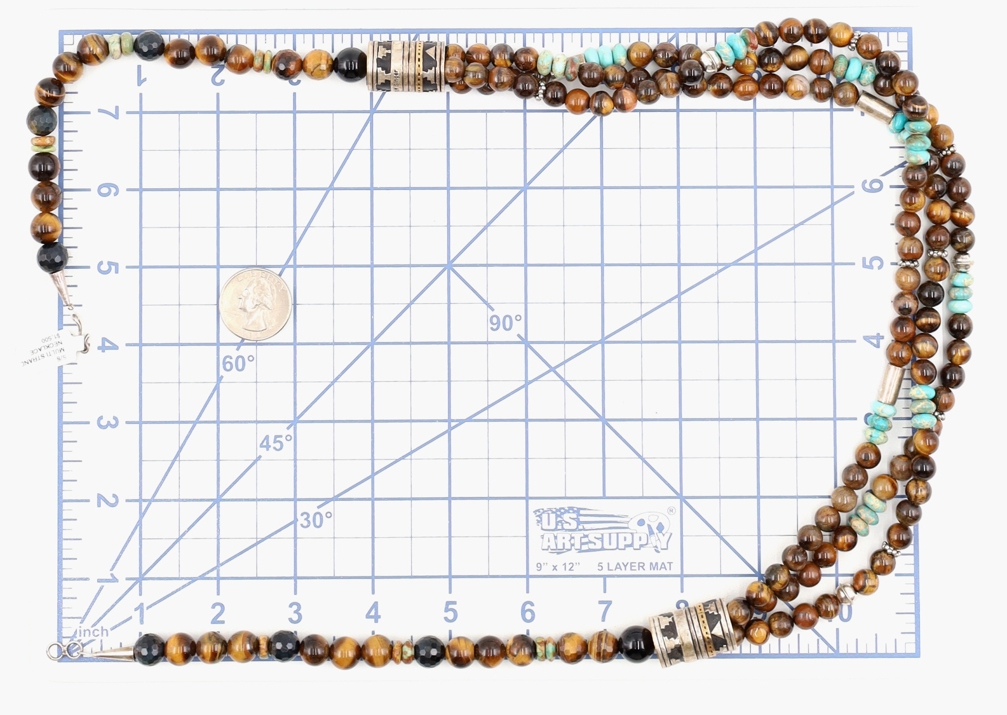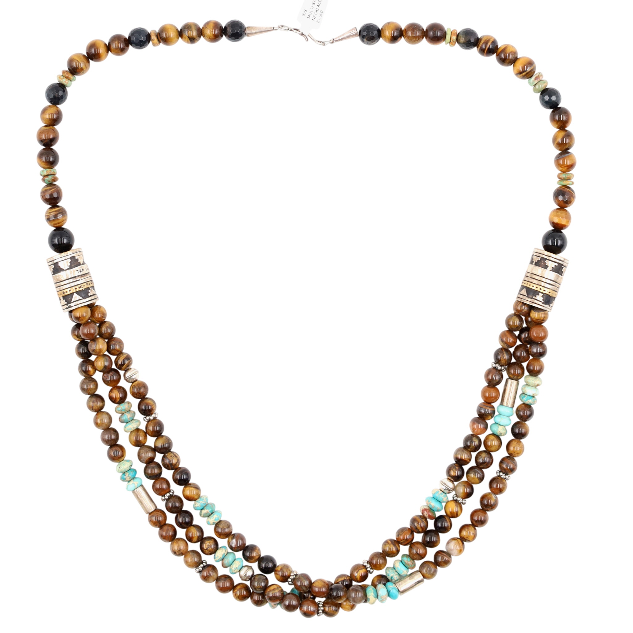 Tommy & R Singer Navajo Sterling Multi-Stone Necklace with Barrel Spacers 190g