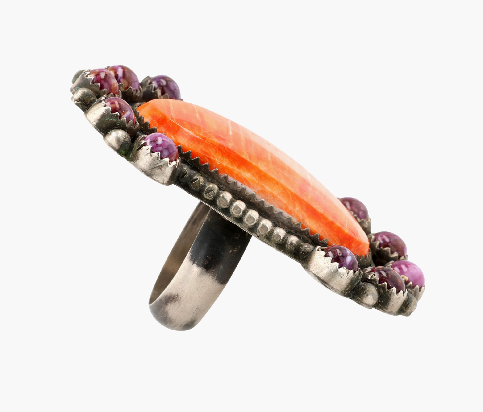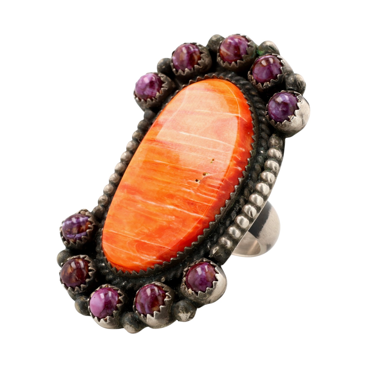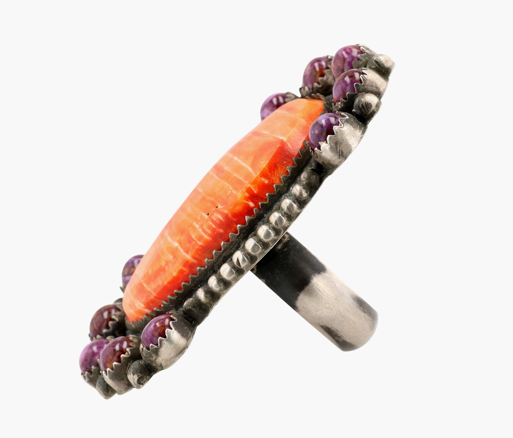 Delvin Brown Navajo Sterling Spiny Oyster Ring Sz 7.25, 21g