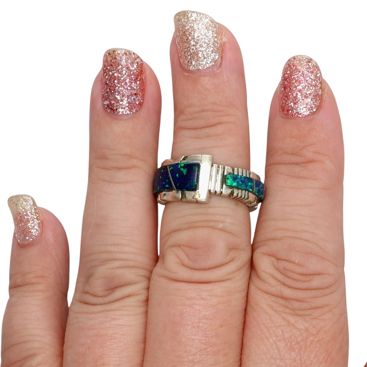 Steve Francisco Navajo Sterling Opal Inlay Ring Sz 6.25, 7g