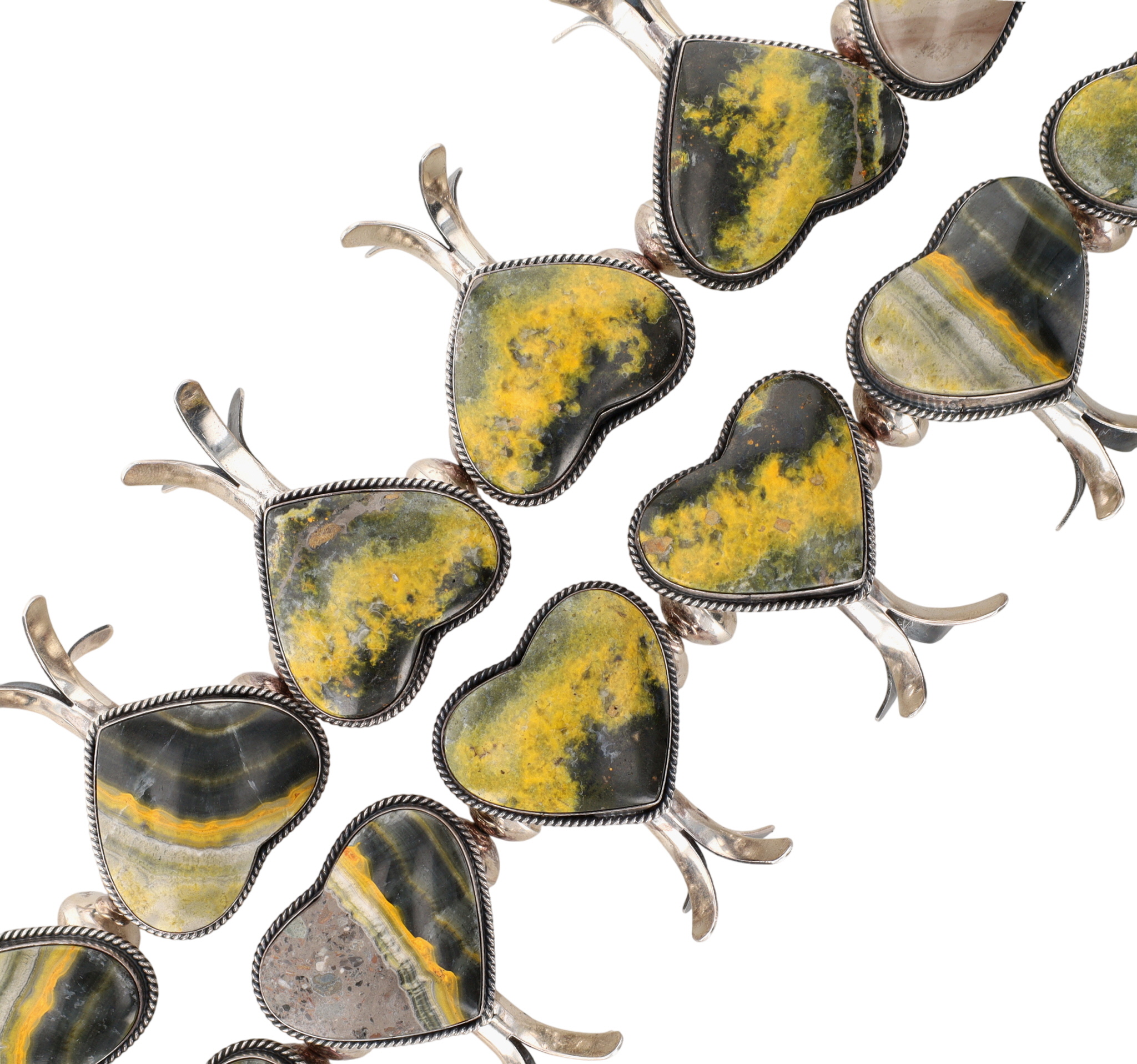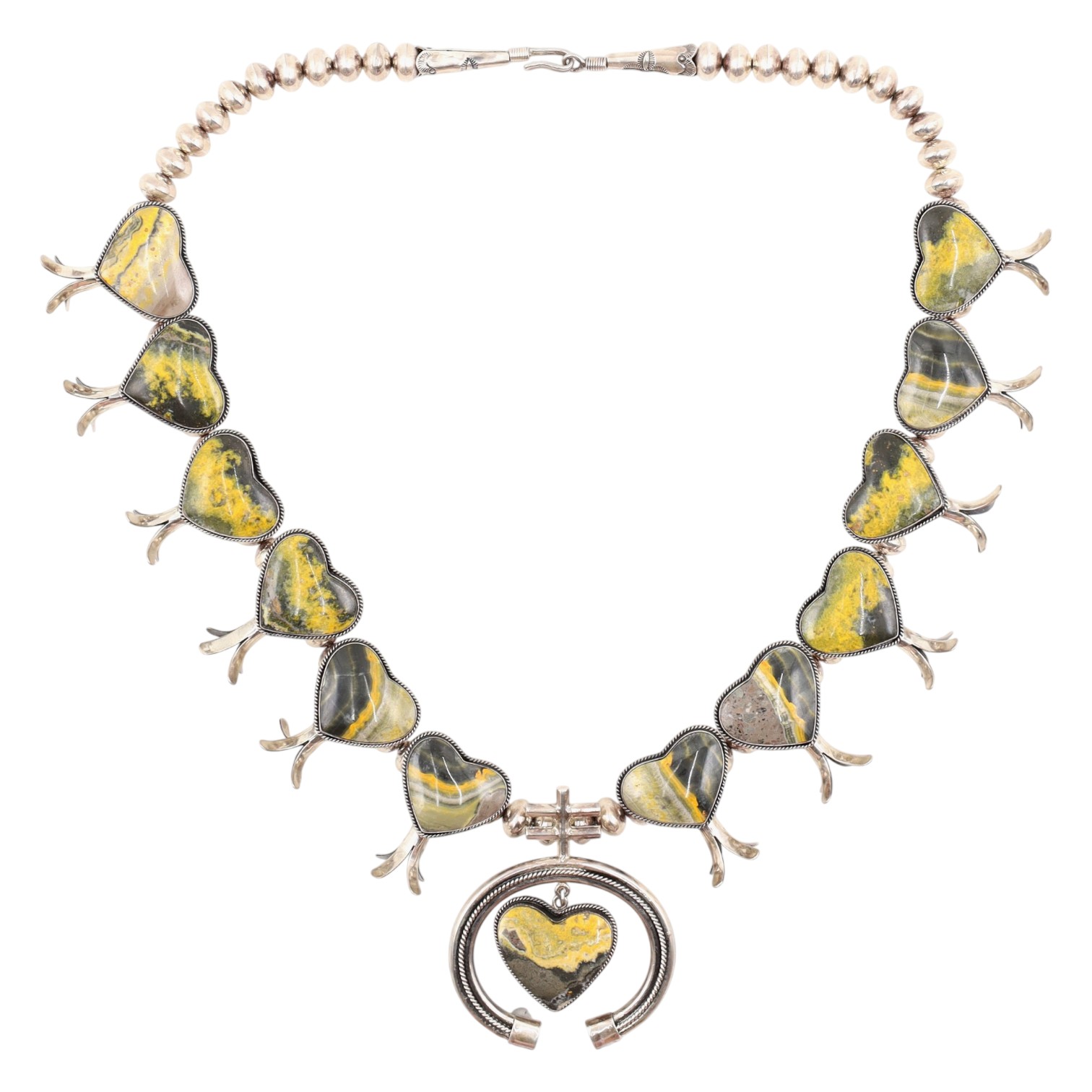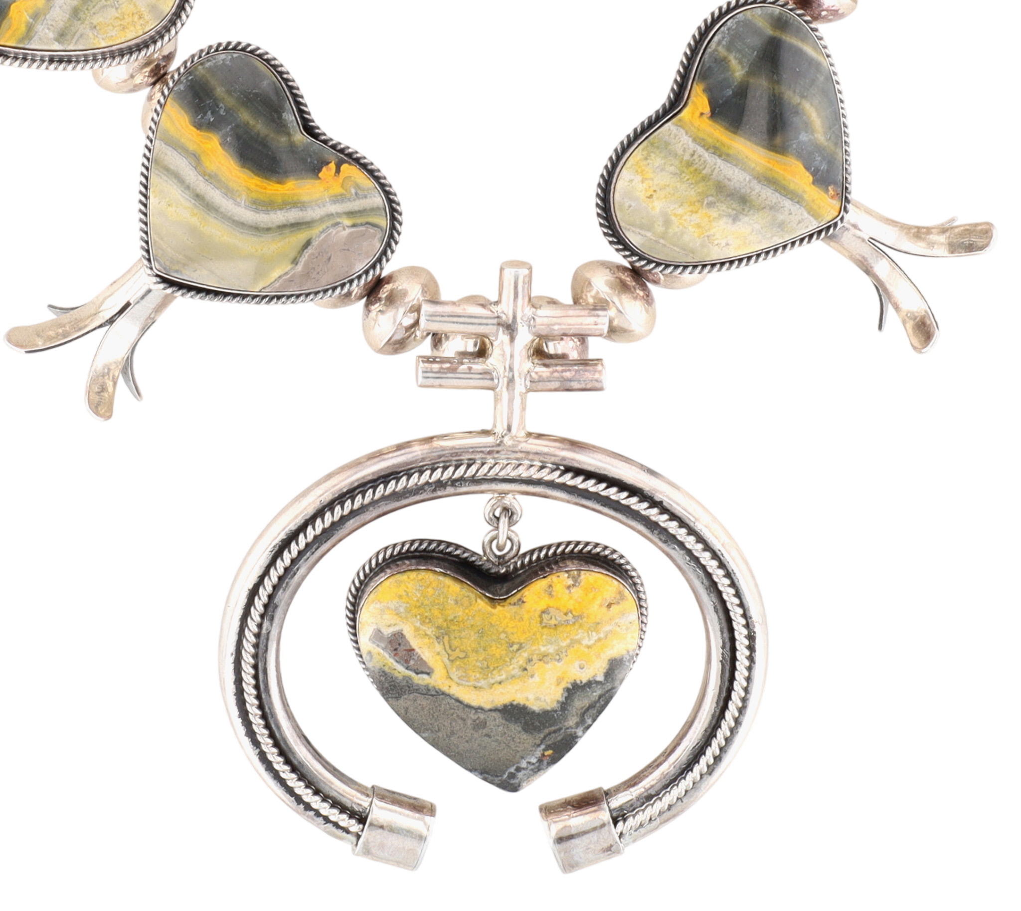 Delayne Reeves Navajo Sterling Bumblebee Jasper Heart Squash Blossom Necklace