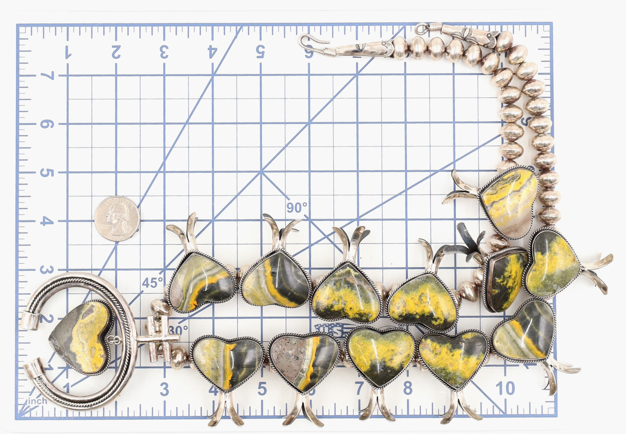 Delayne Reeves Navajo Sterling Bumblebee Jasper Heart Squash Blossom Necklace 472g