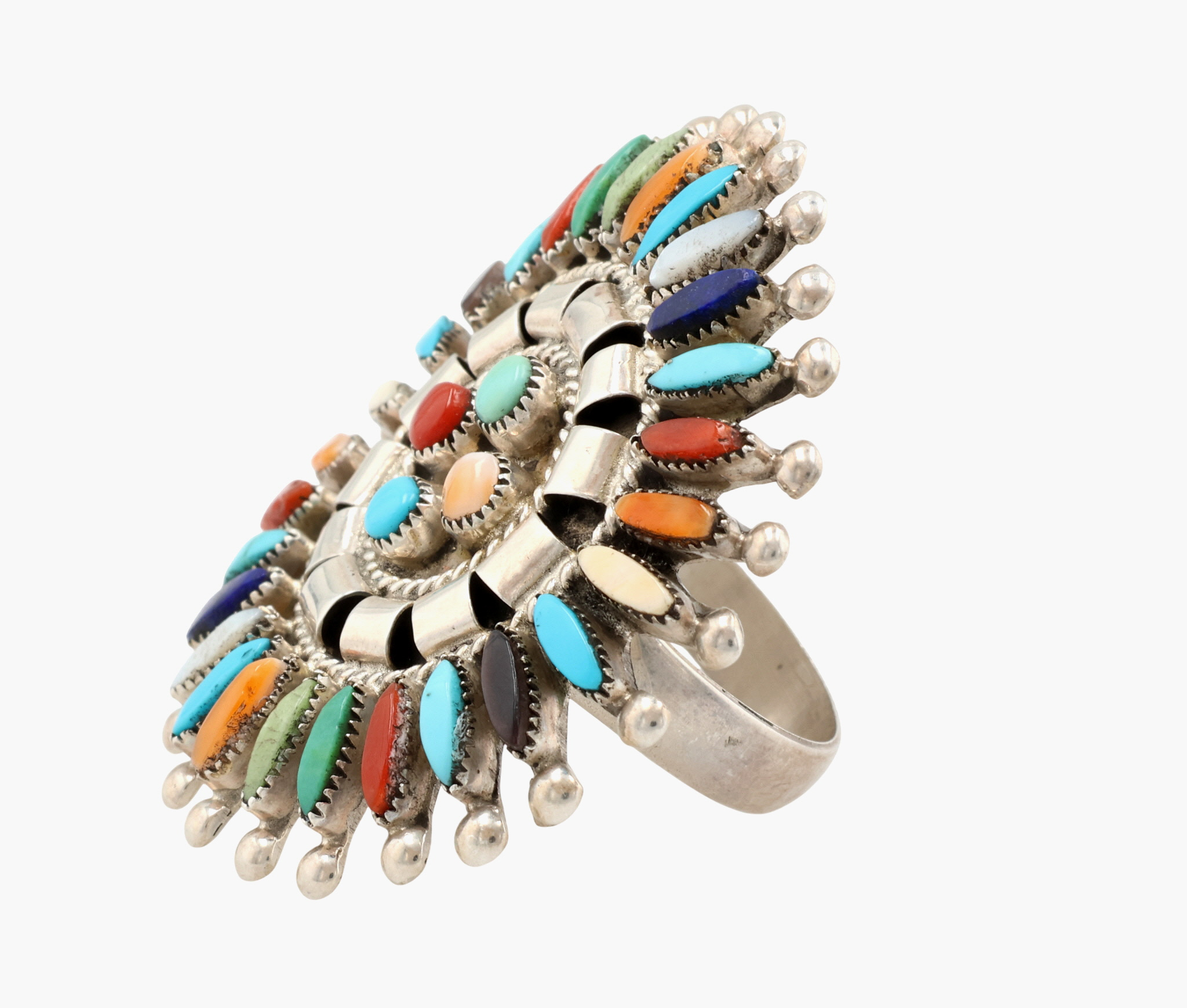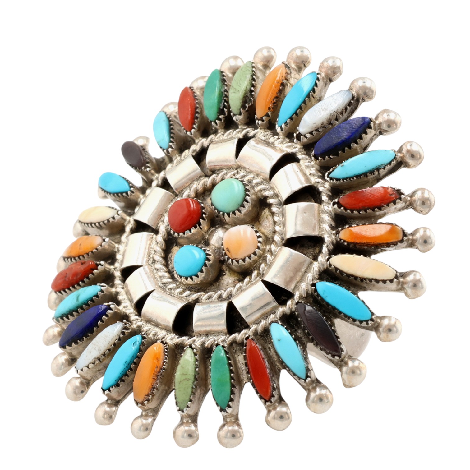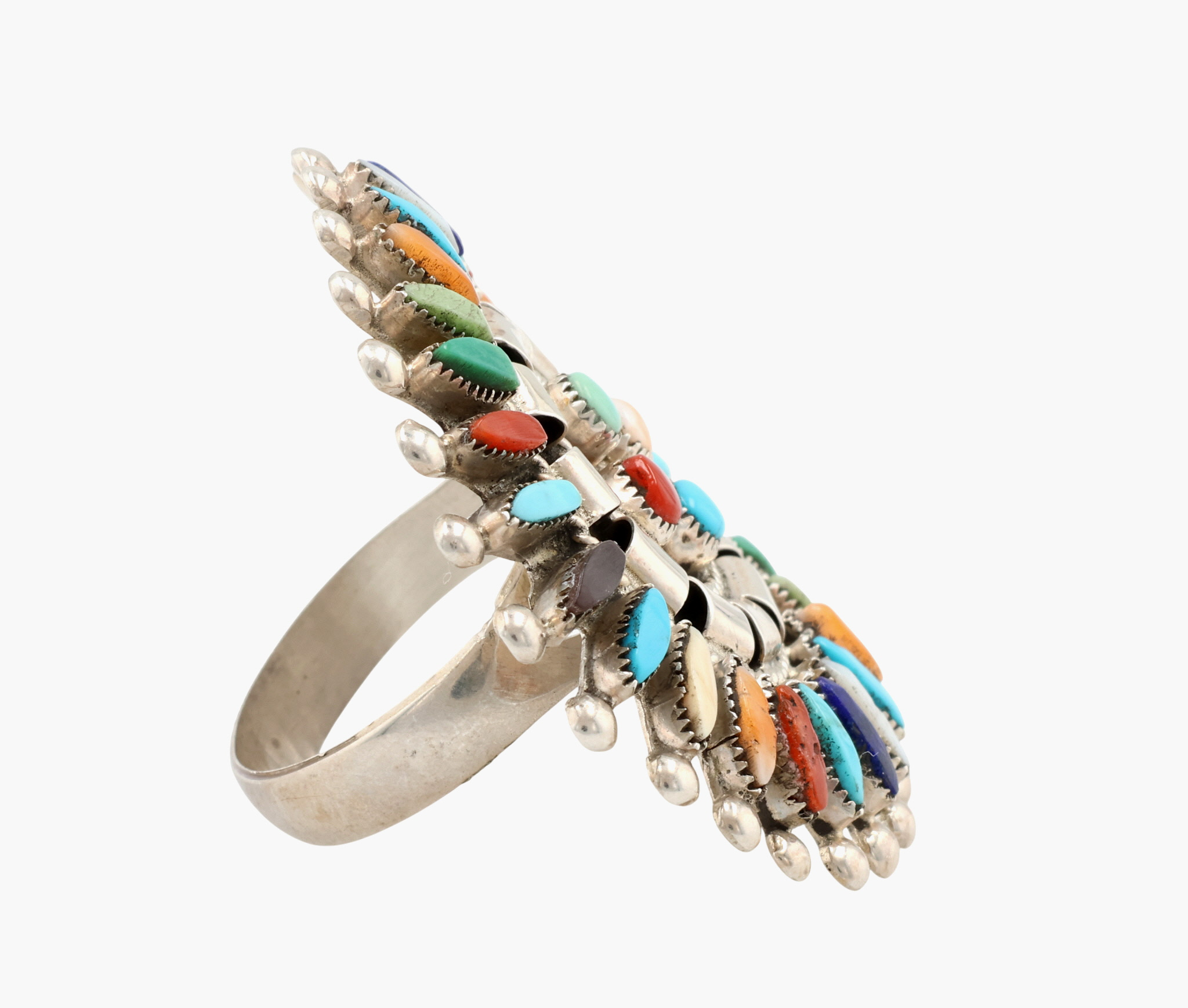 Dan Etsate Zuni Sterling Multi-Stone Needlepoint Ring Sz 8.5
