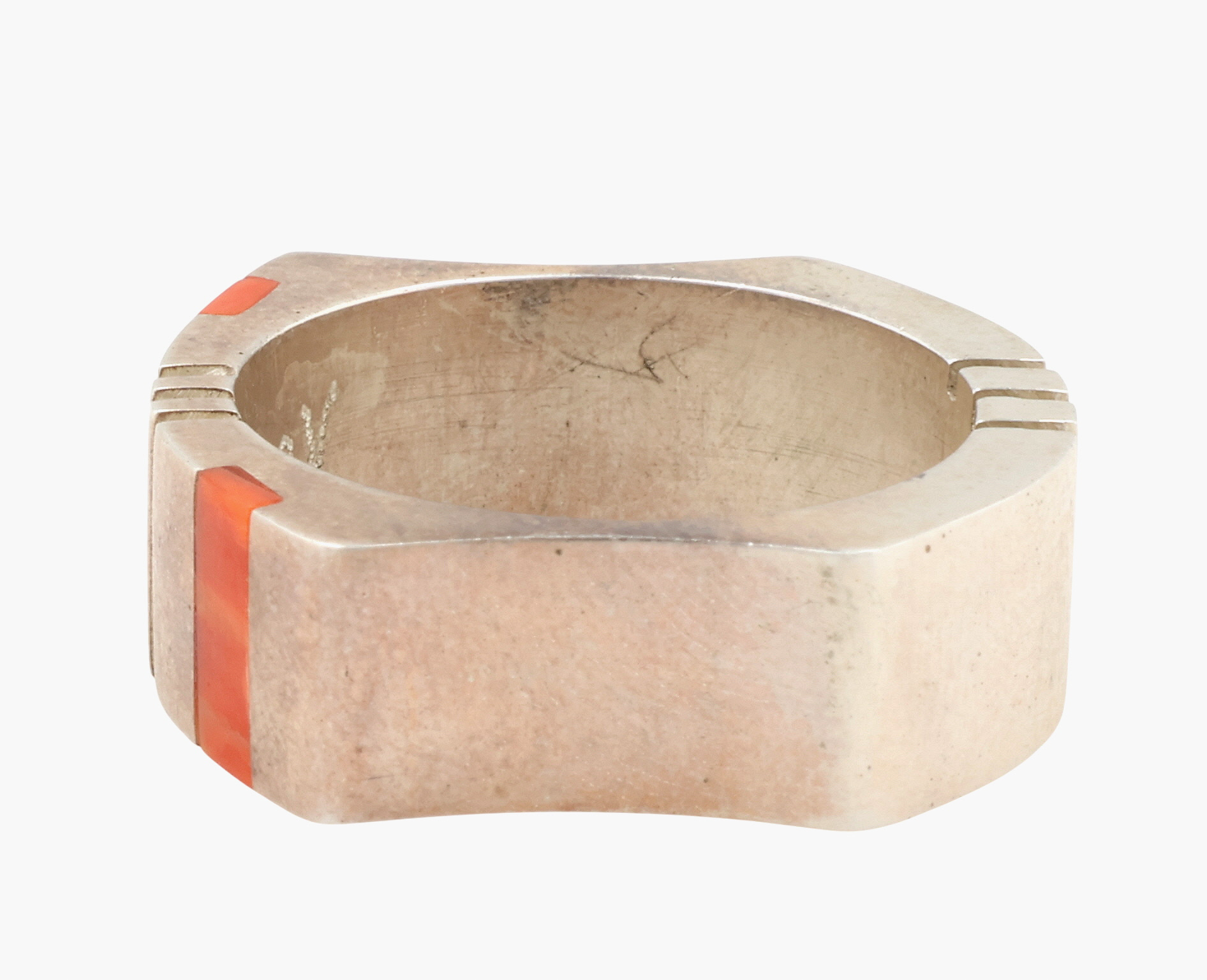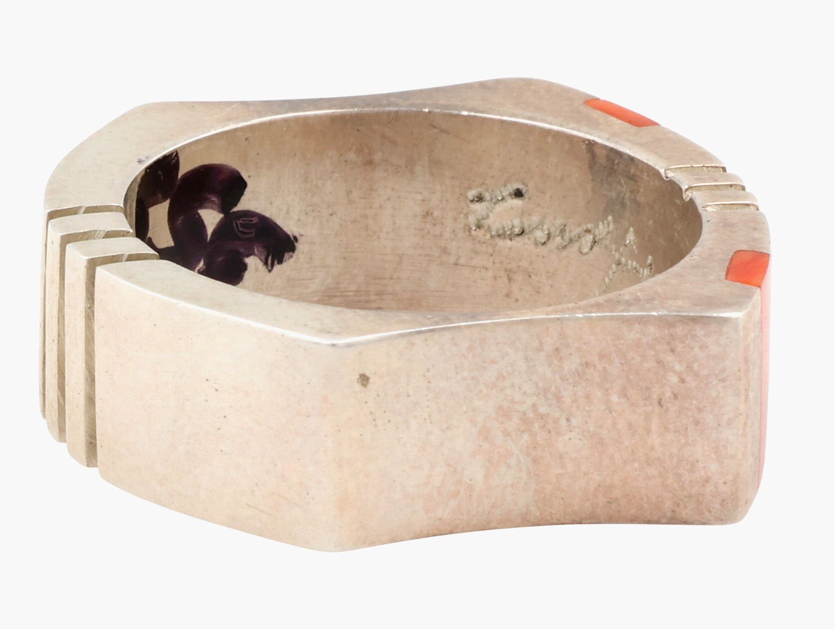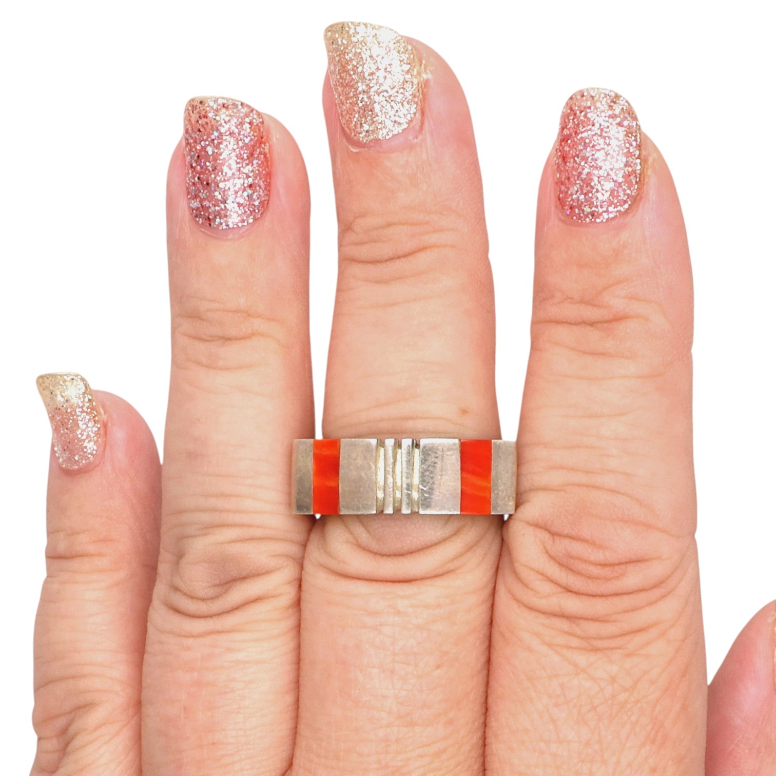 Signed Sterling Spiny Oyster Inlay Ring Sz 8.5, 13.5g, Signature is hard to read- see photos