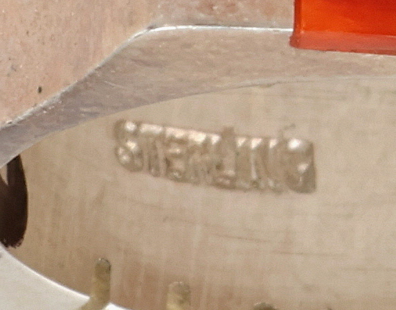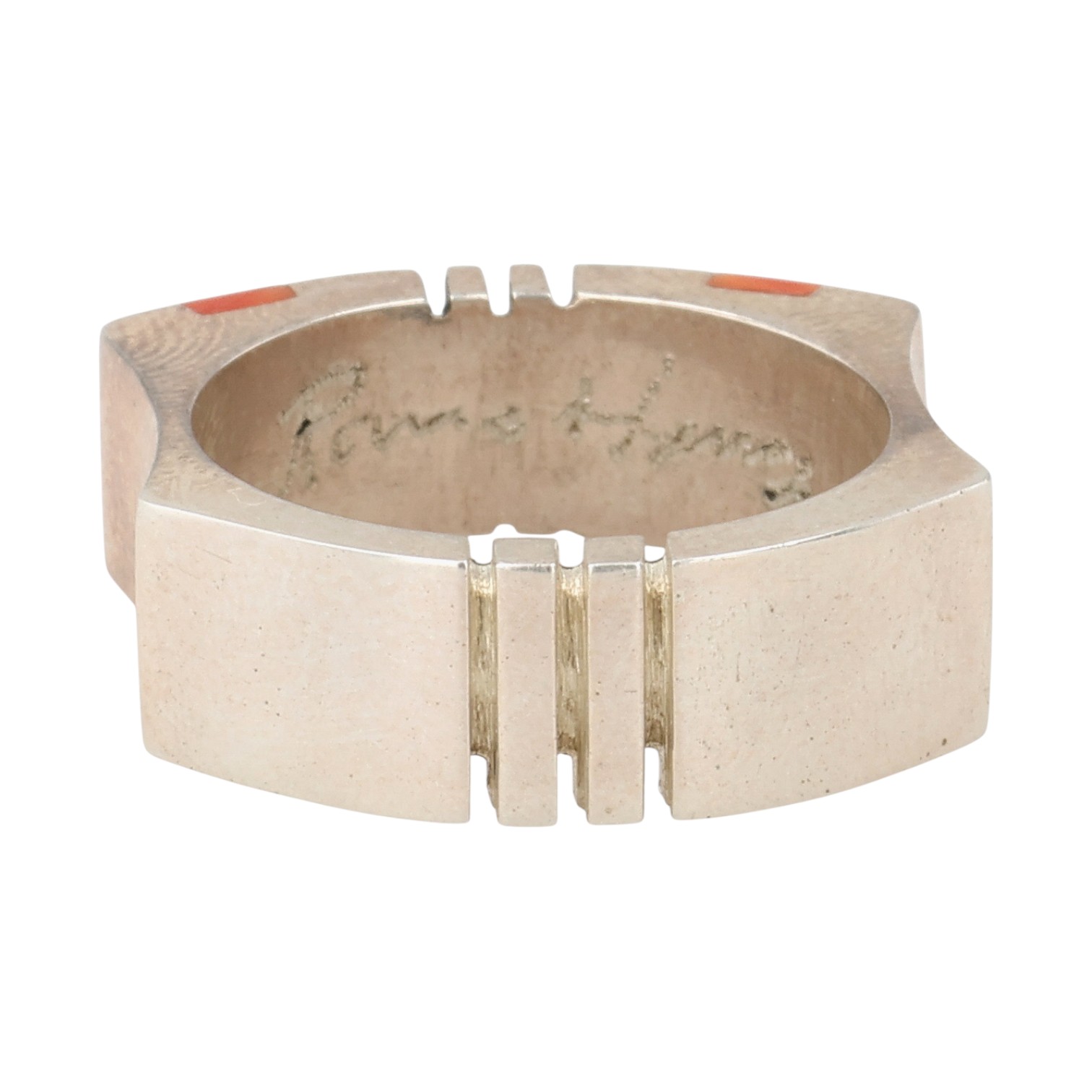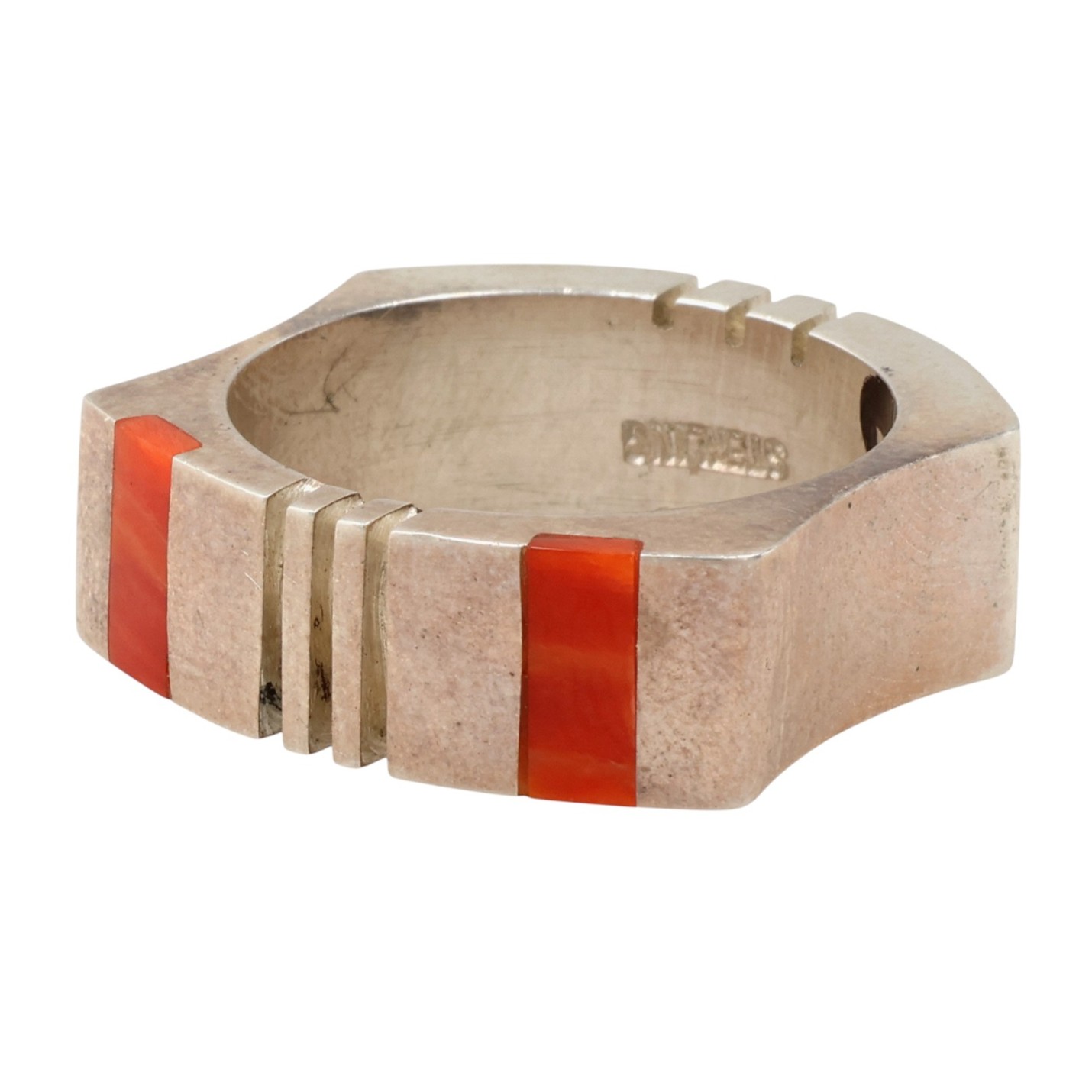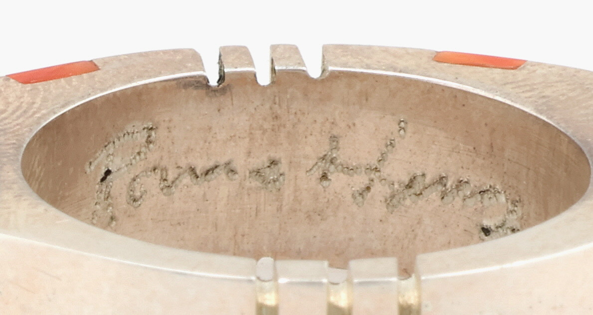 Signed Sterling Spiny Oyster Inlay Ring Sz 8.5, 13.5g, Signature is hard to read- see photos