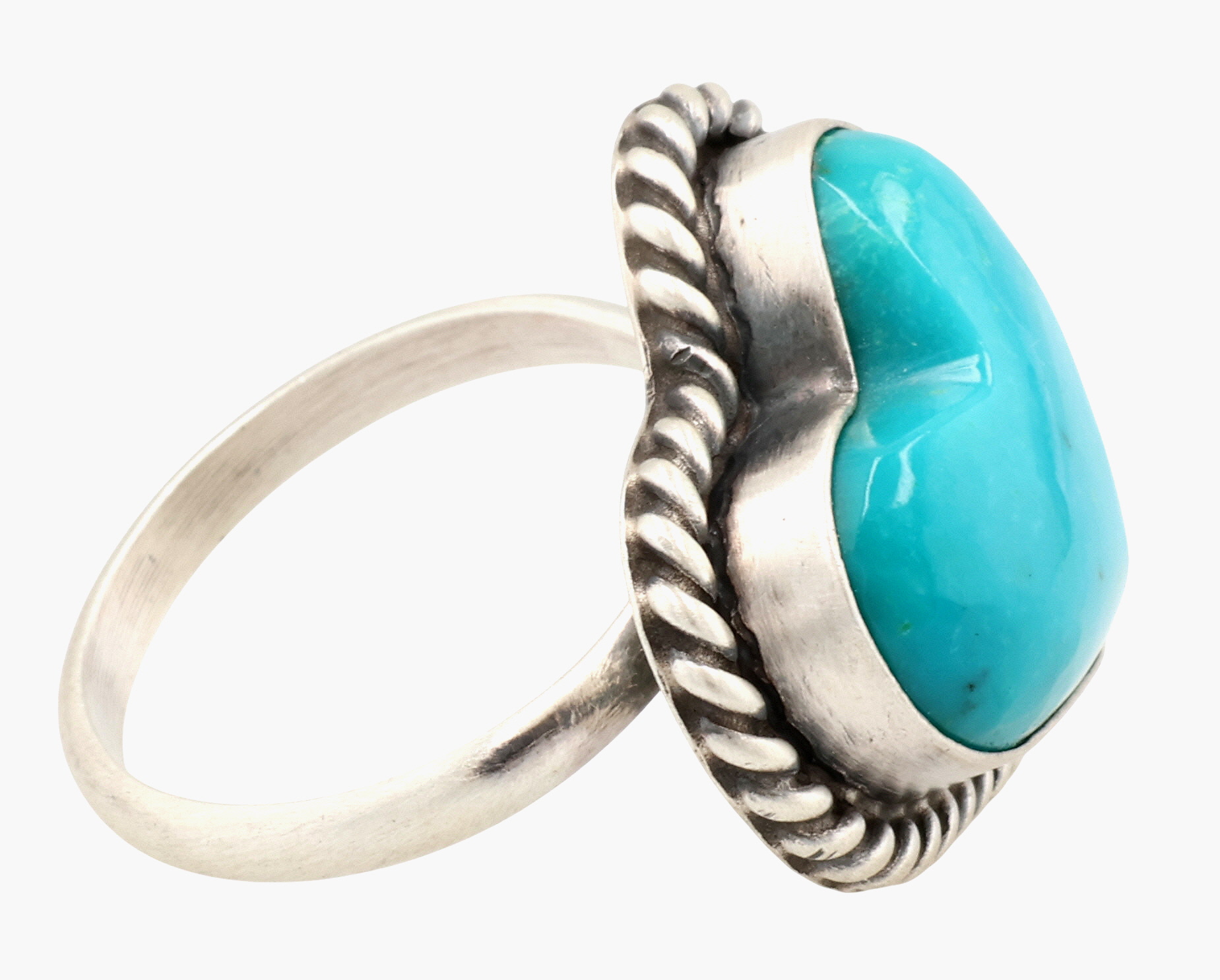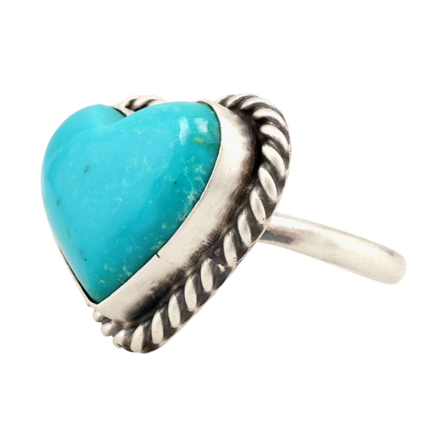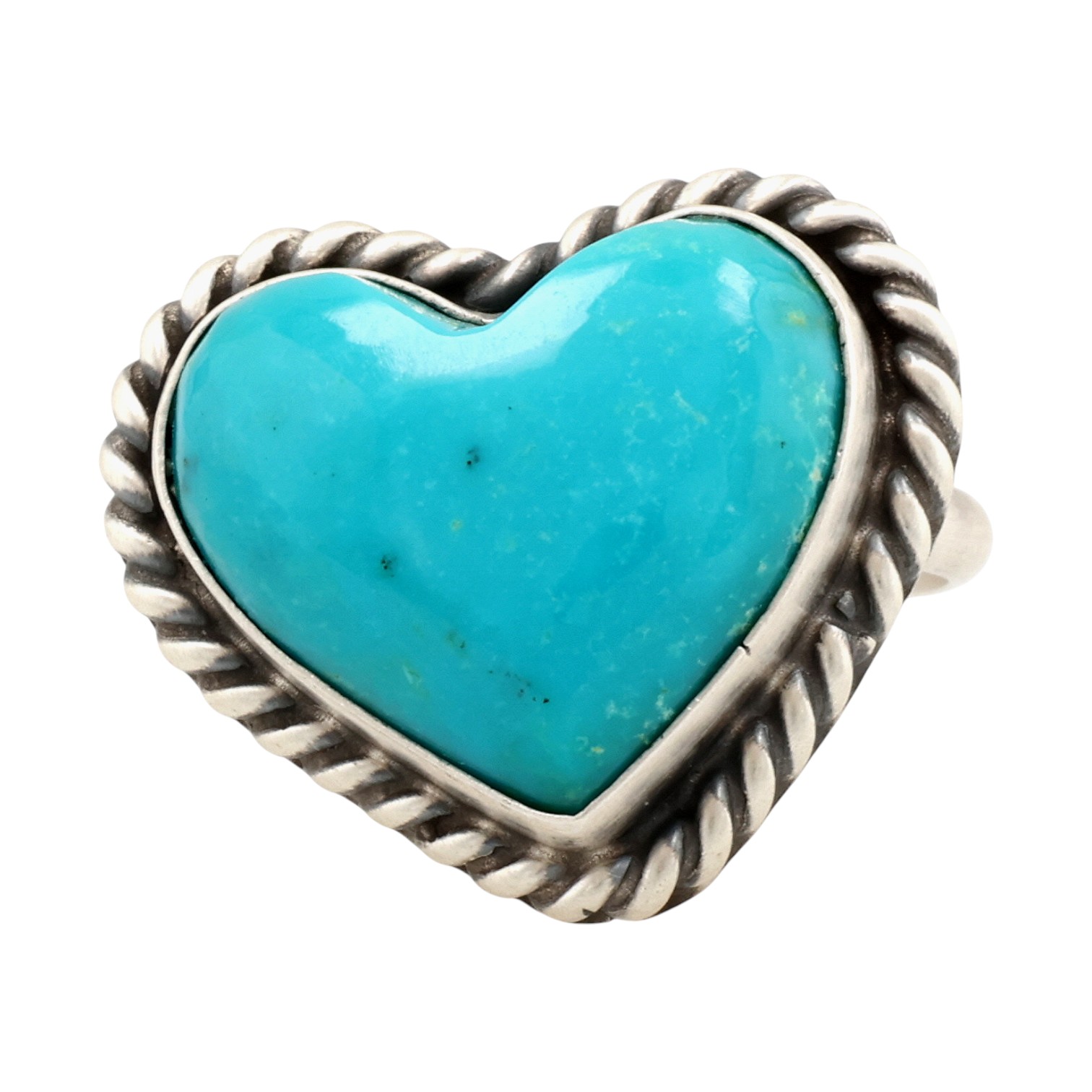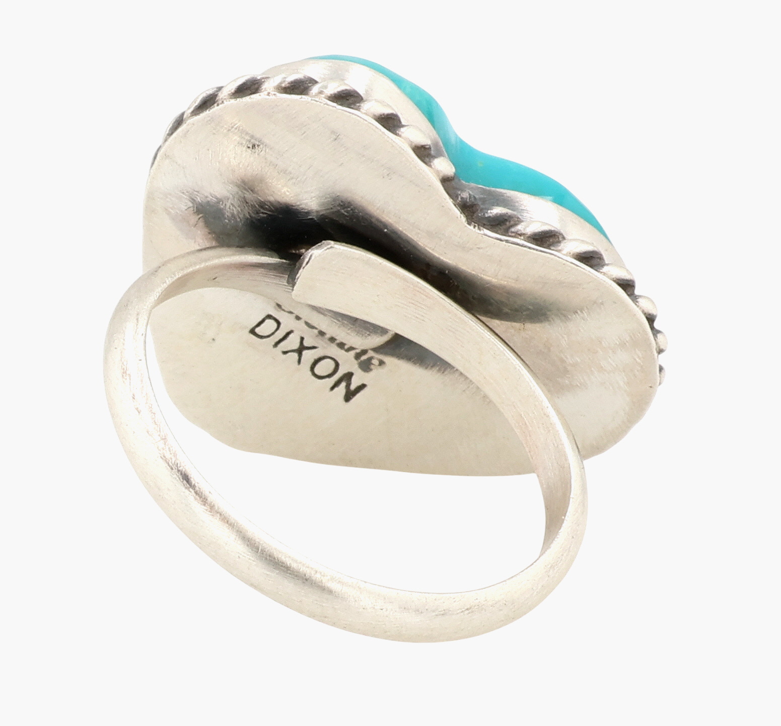 Johnny Dixon Navajo Sterling Kingman Turquoise Heart Adjustable Ring 8g, Sz 7.5