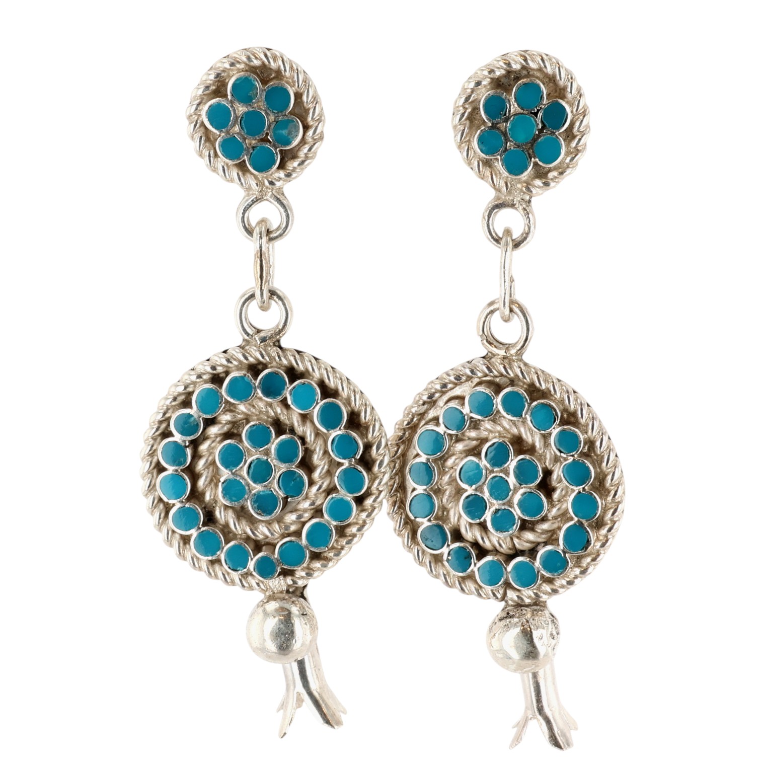 Devin Quam Zuni Sterling Turquoise Squash Blossom Earrings 11g
