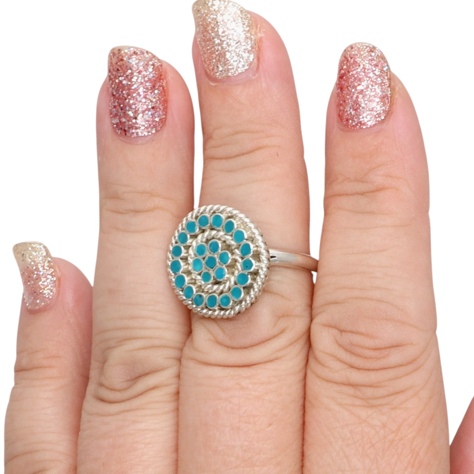 Devin Quam Zuni Sterling Turquoise Ring Sz 7.5, 5g