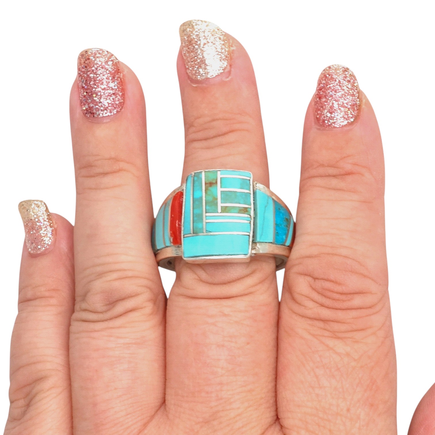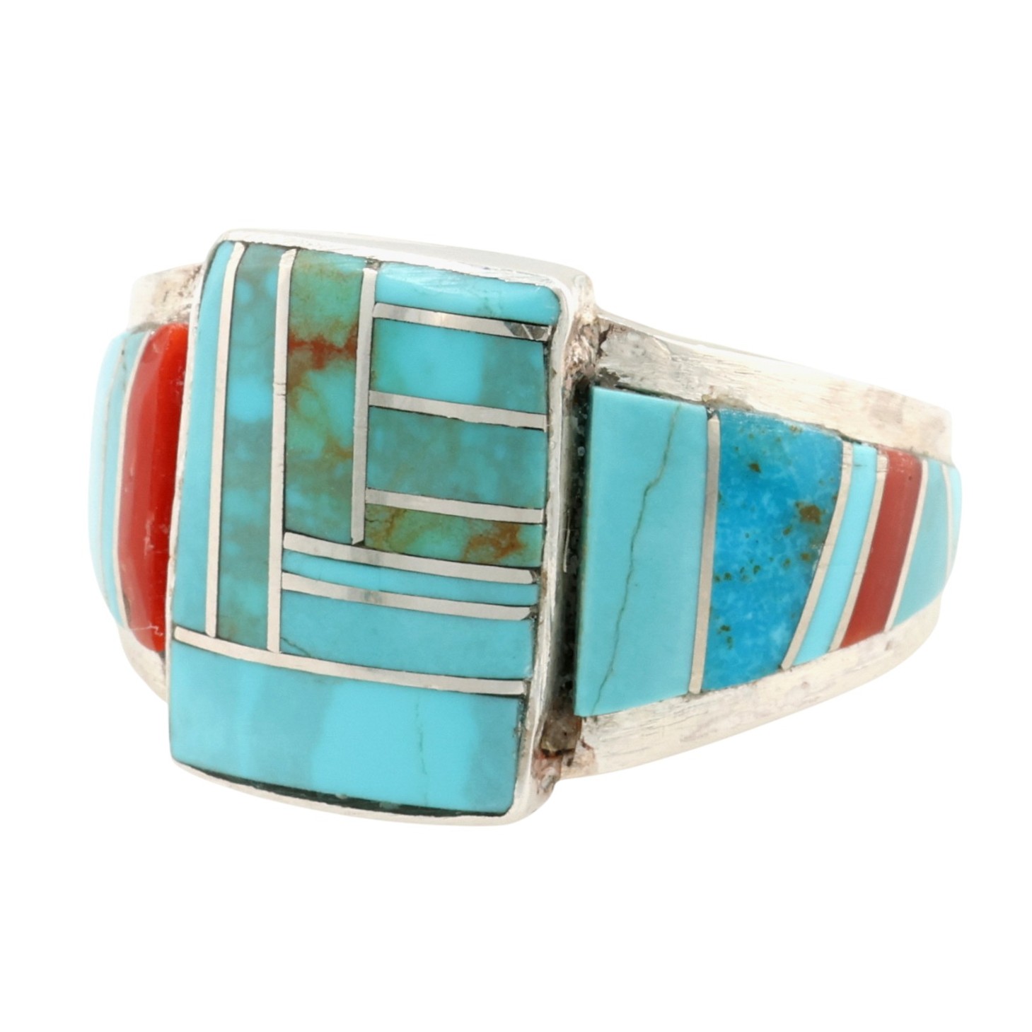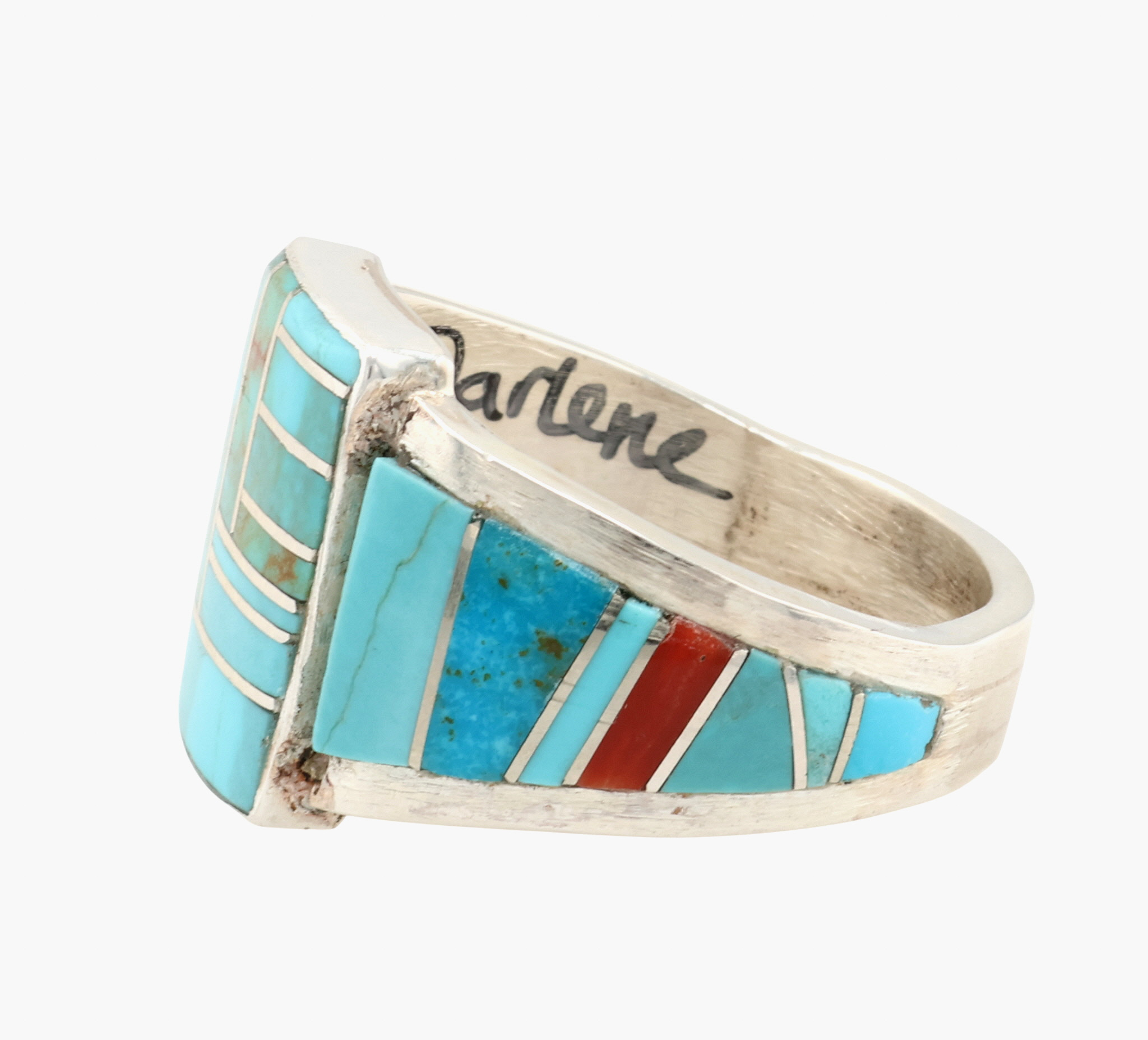 Darlene Noble Navajo Sterling Multi-Stone Inlay Ring Sz 13.25