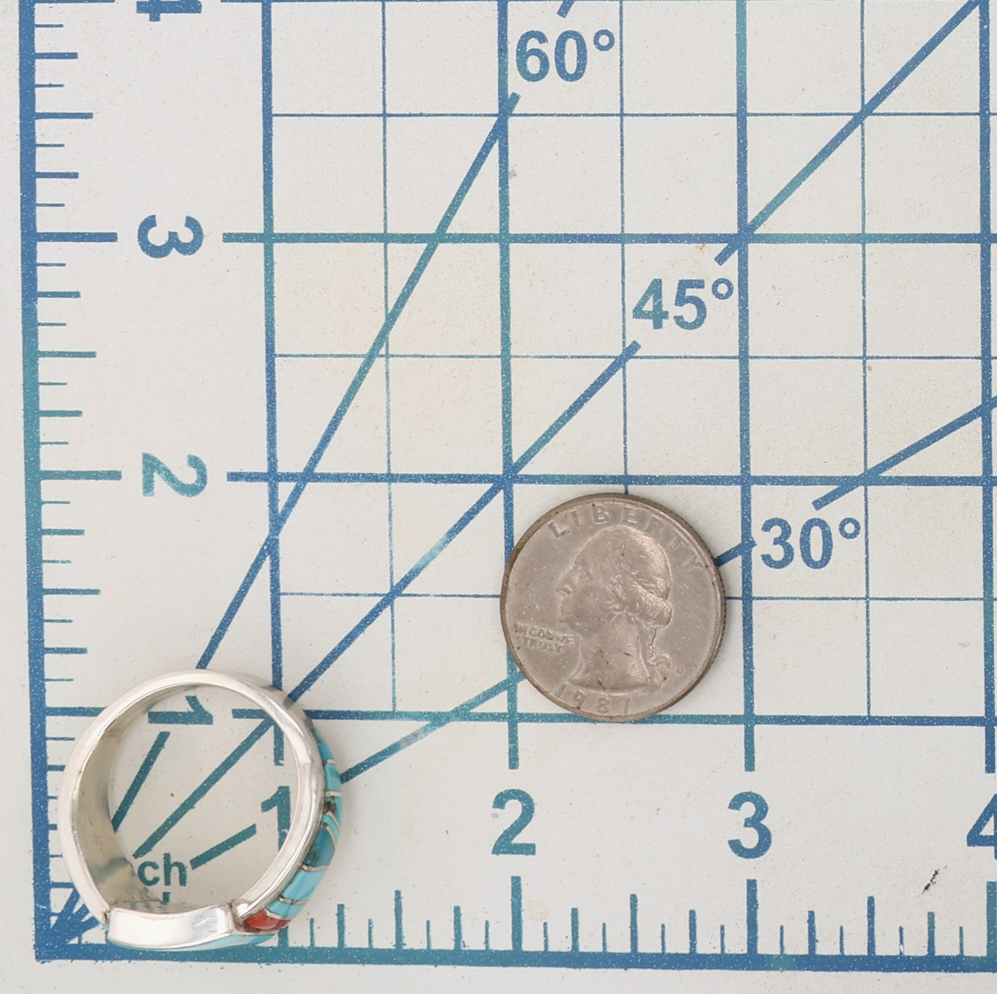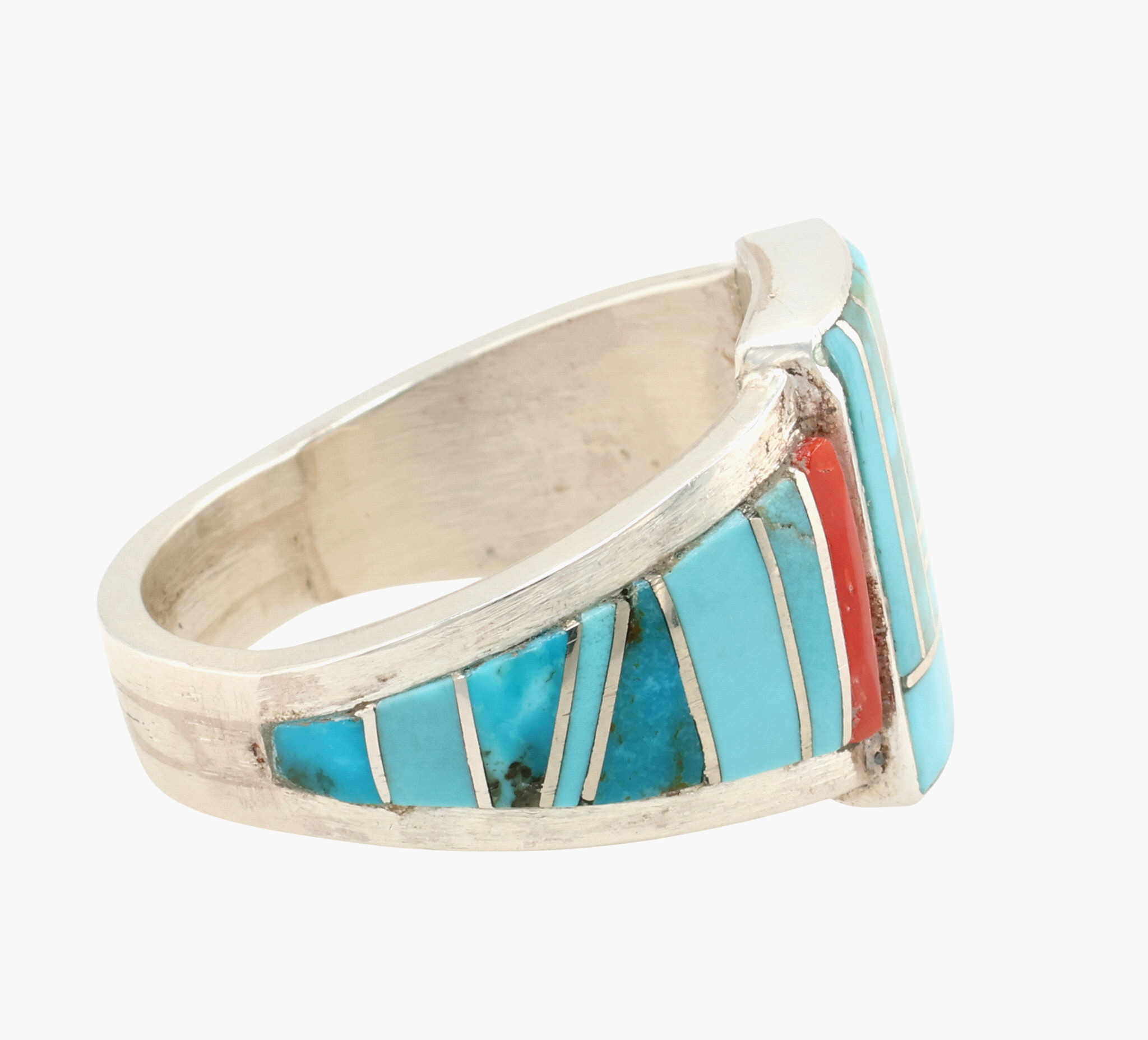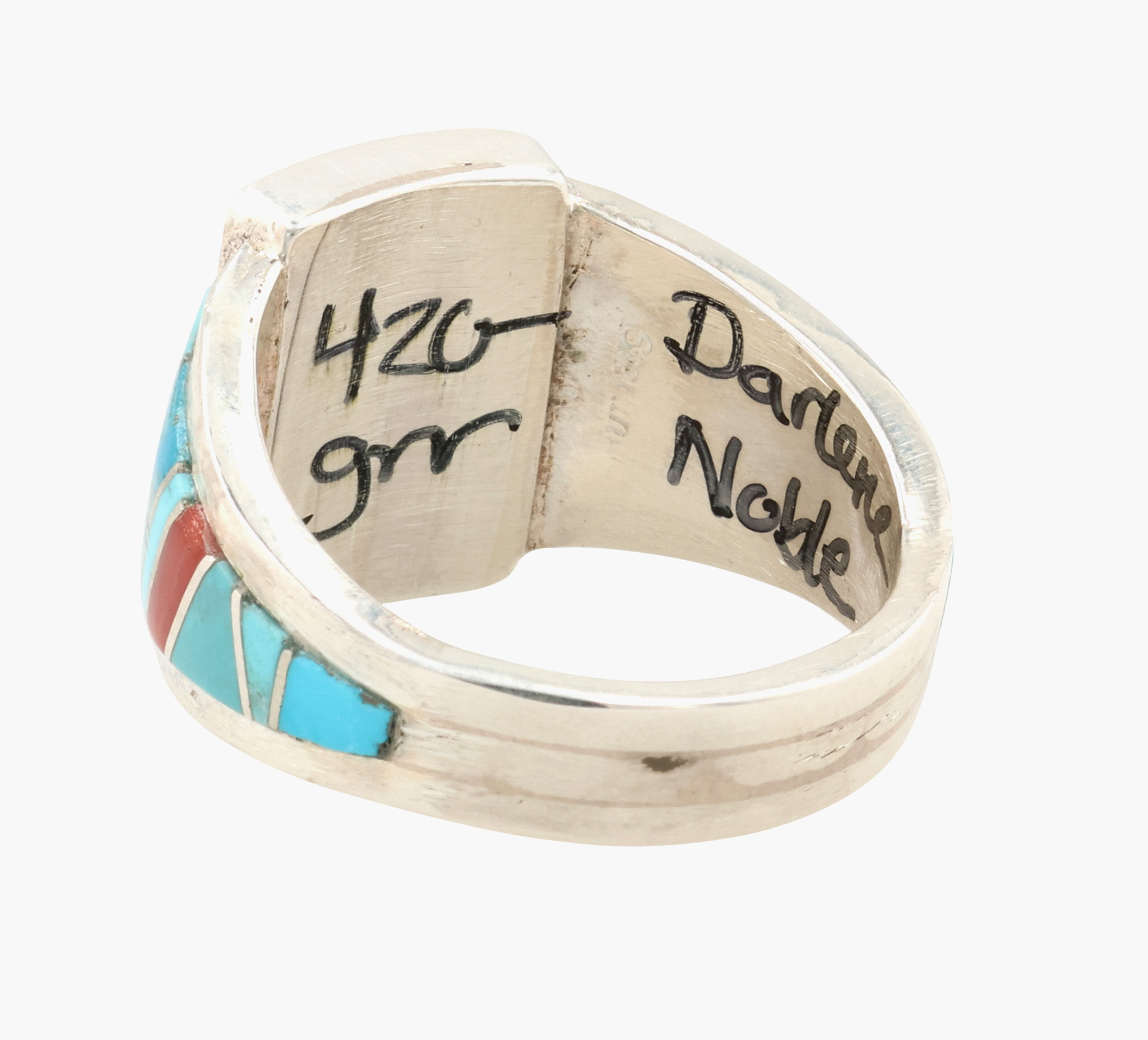 Darlene Noble Navajo Sterling Multi-Stone Inlay Ring Sz 13.25, 13.5g