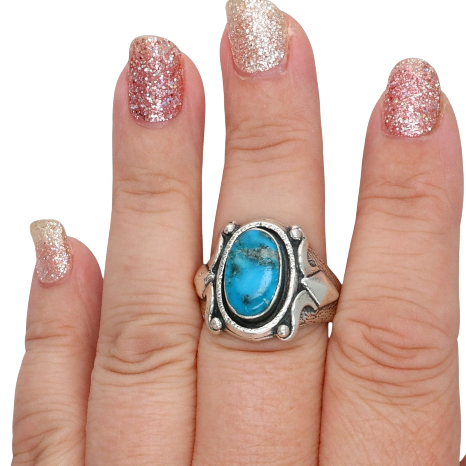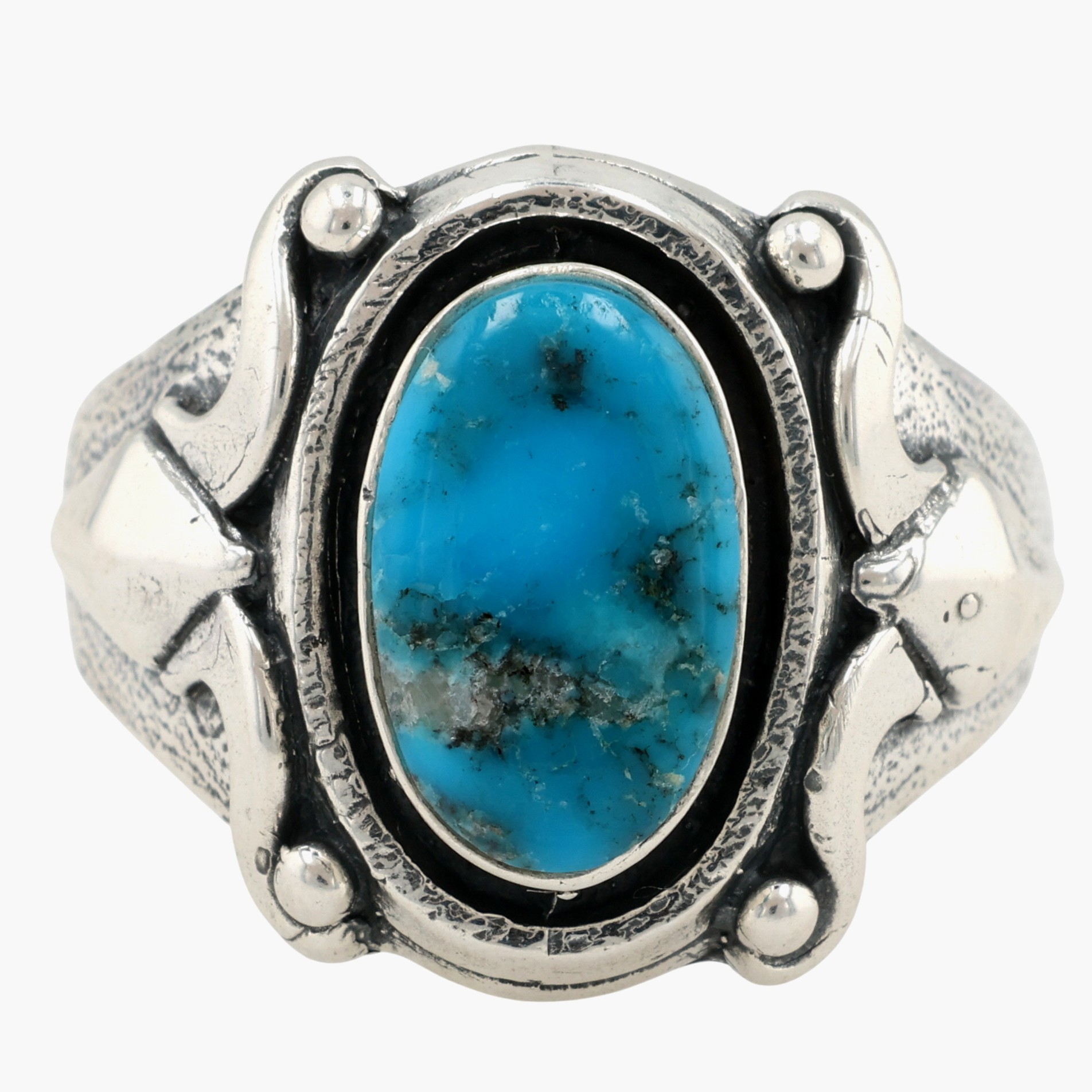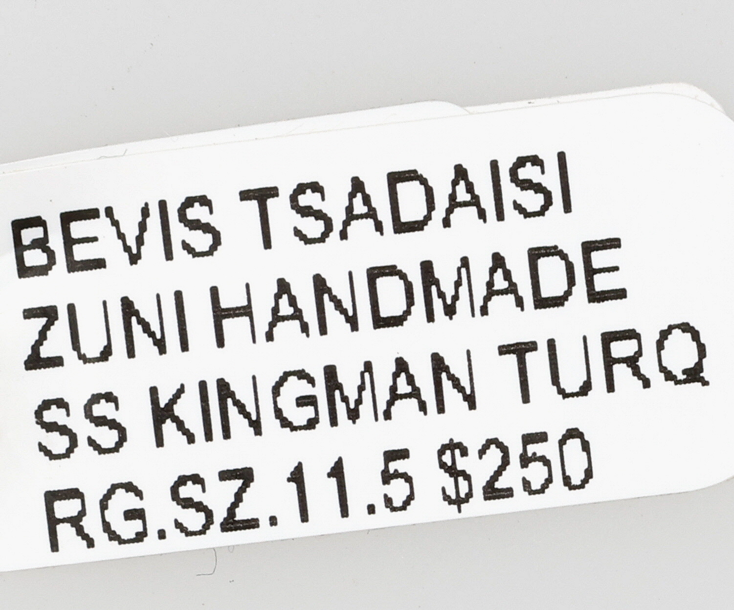 Bevis Tsadiasi Zuni Sterling Kingman Turquoise Ring Sz 11, 14g