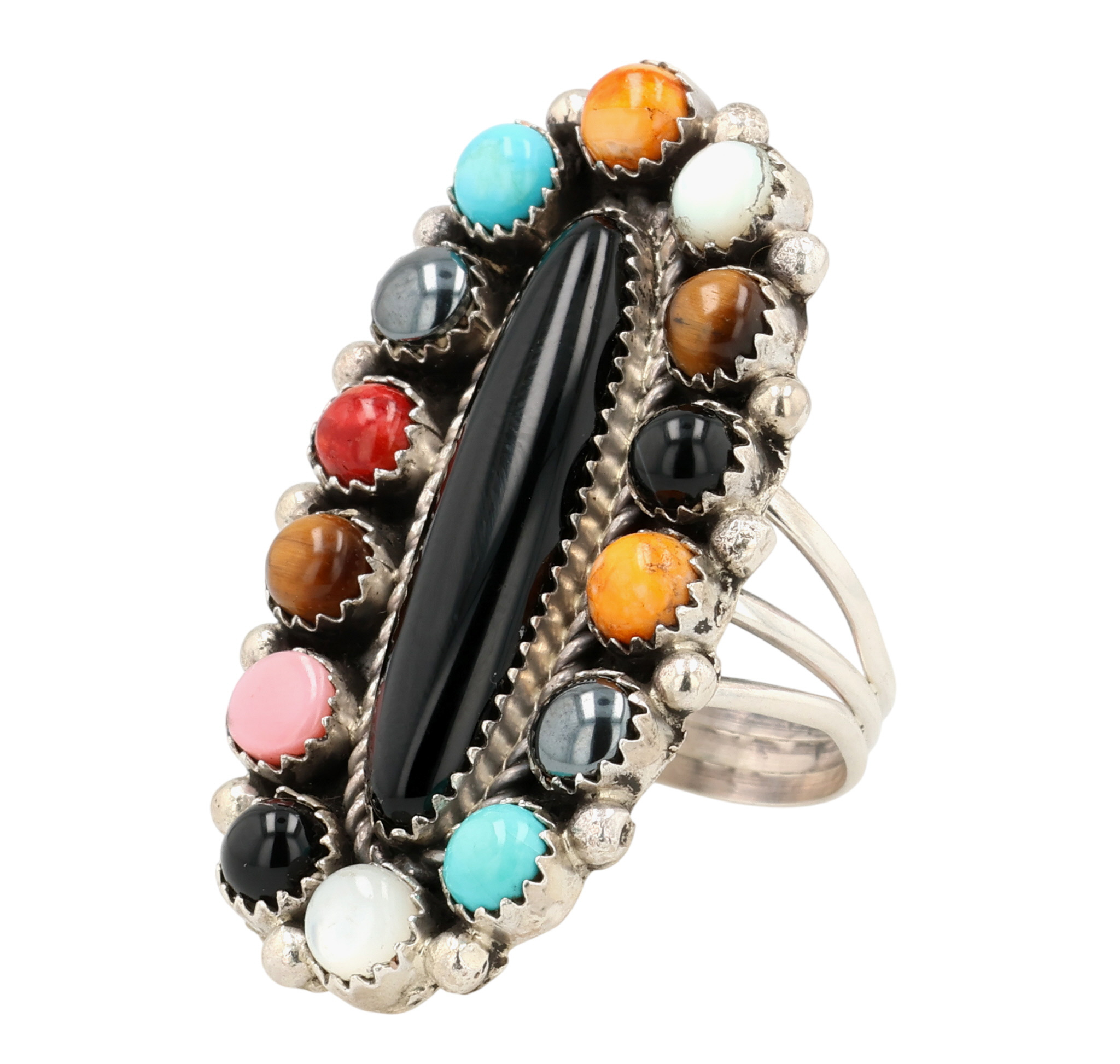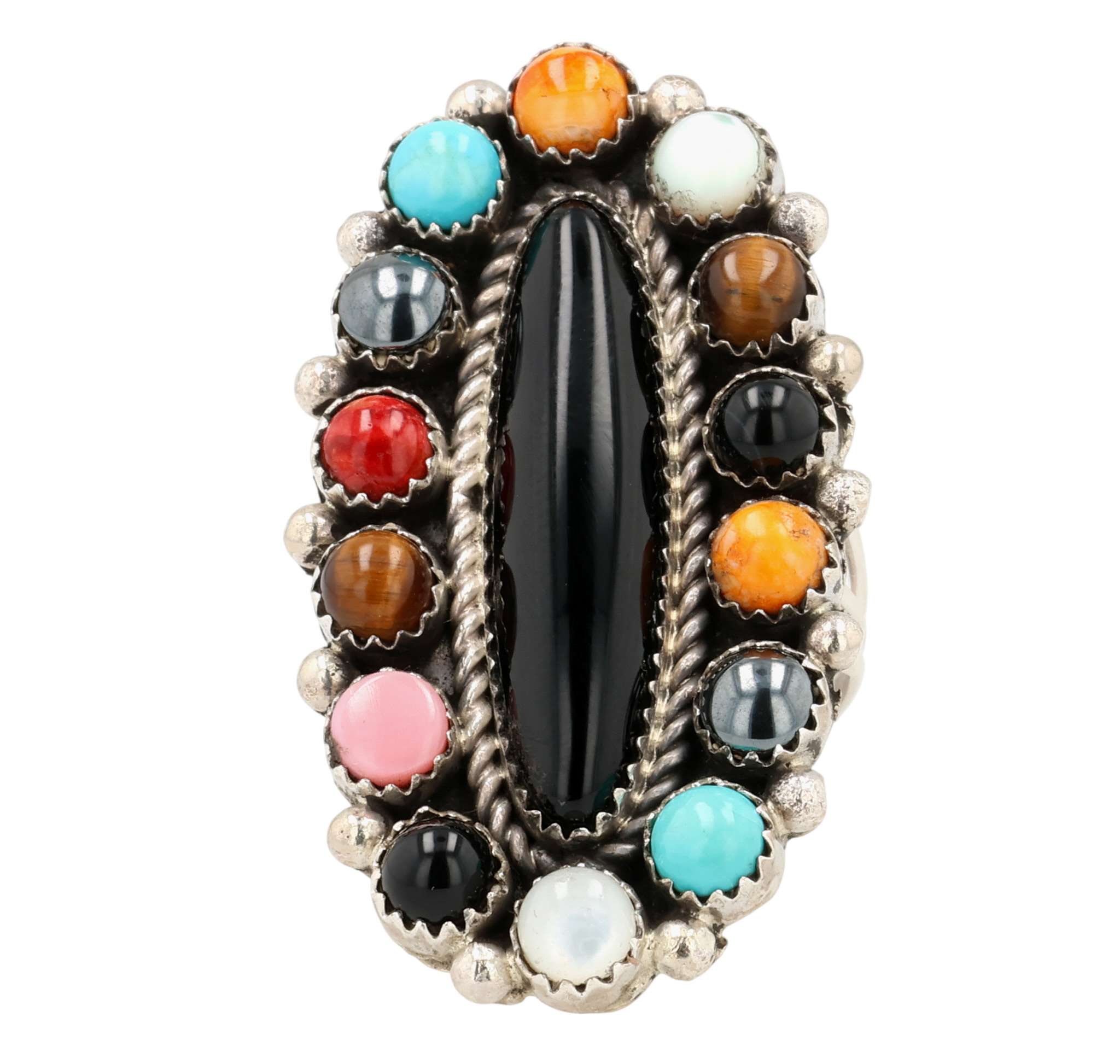 Ella Spencer Navajo Sterling Multi-Stone Ring Sz 10.25, 13.5g