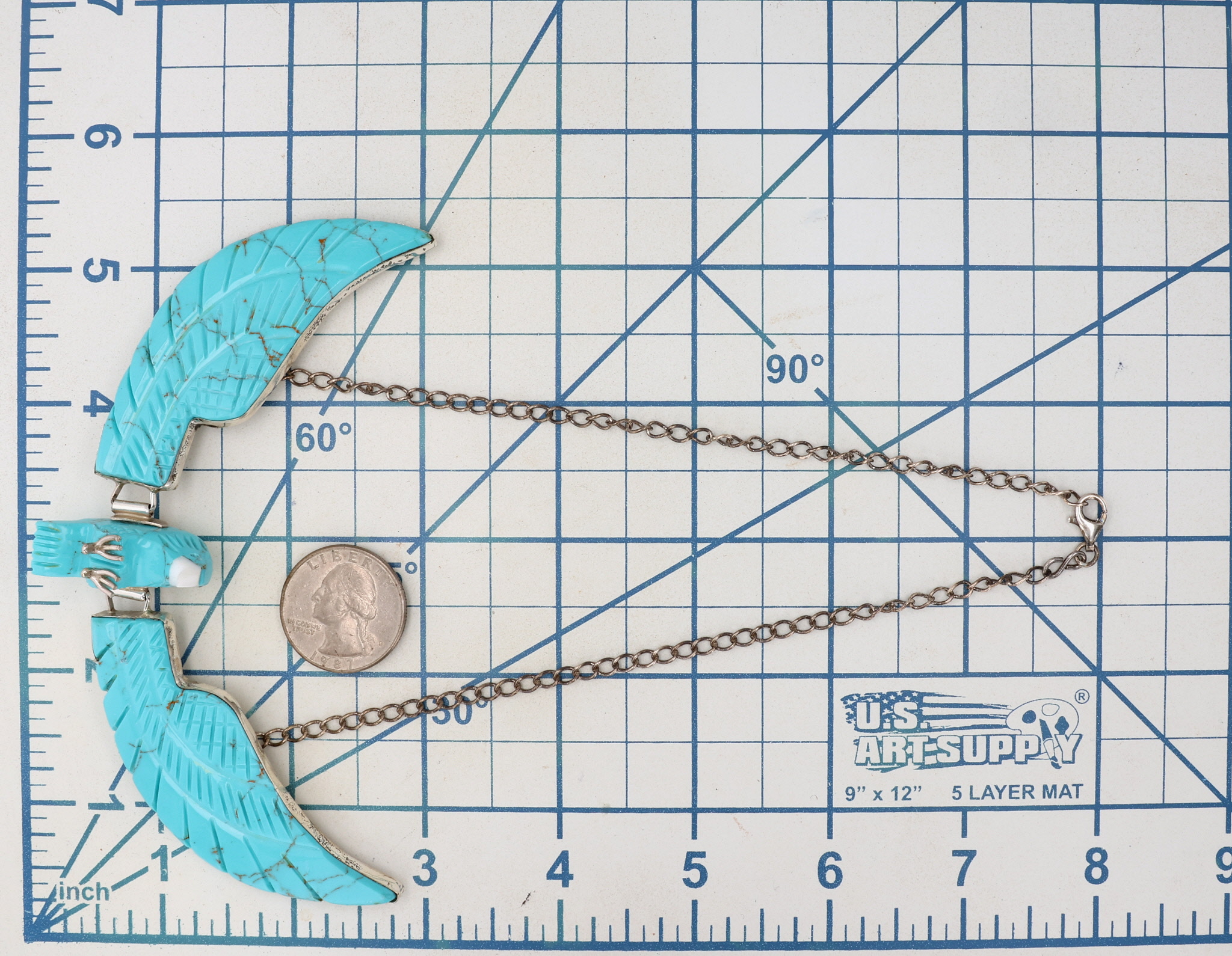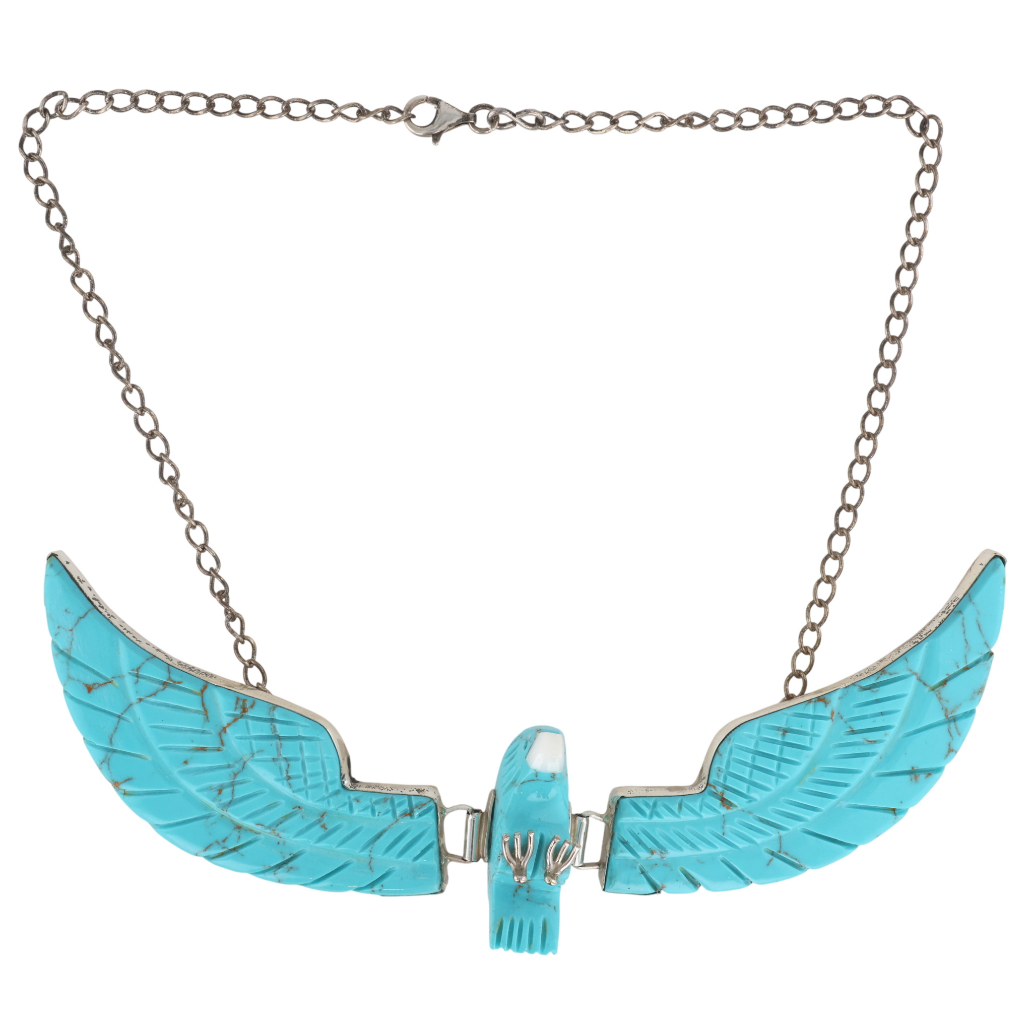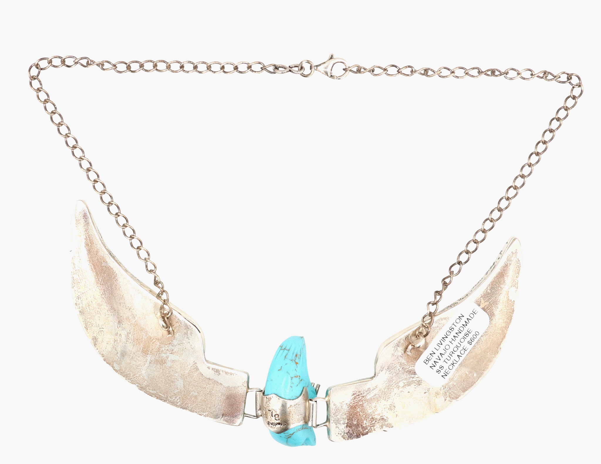 Ben Livingston Navajo Handmade Sterling Turquoise Carved Eagle Necklace 47g, Hinge Wings