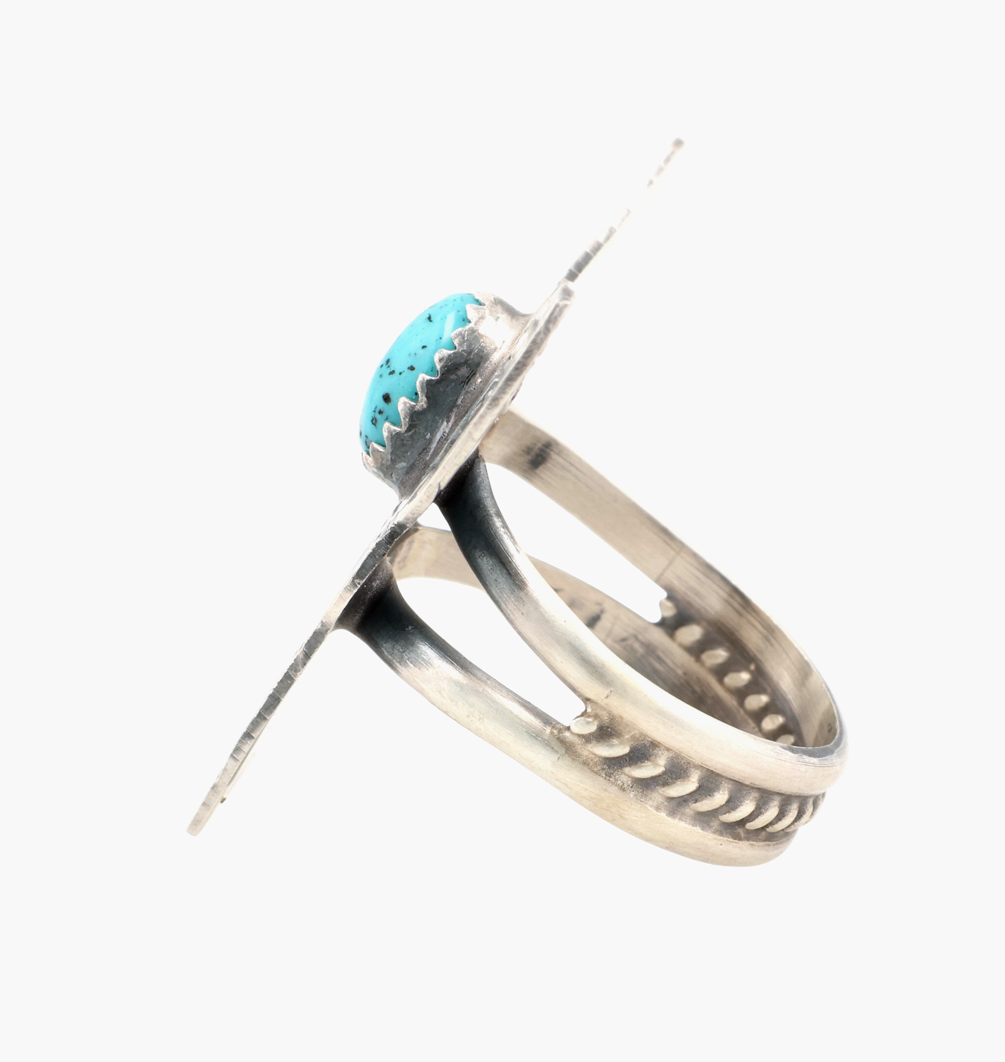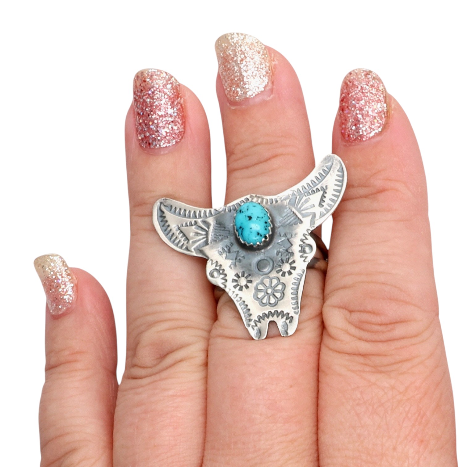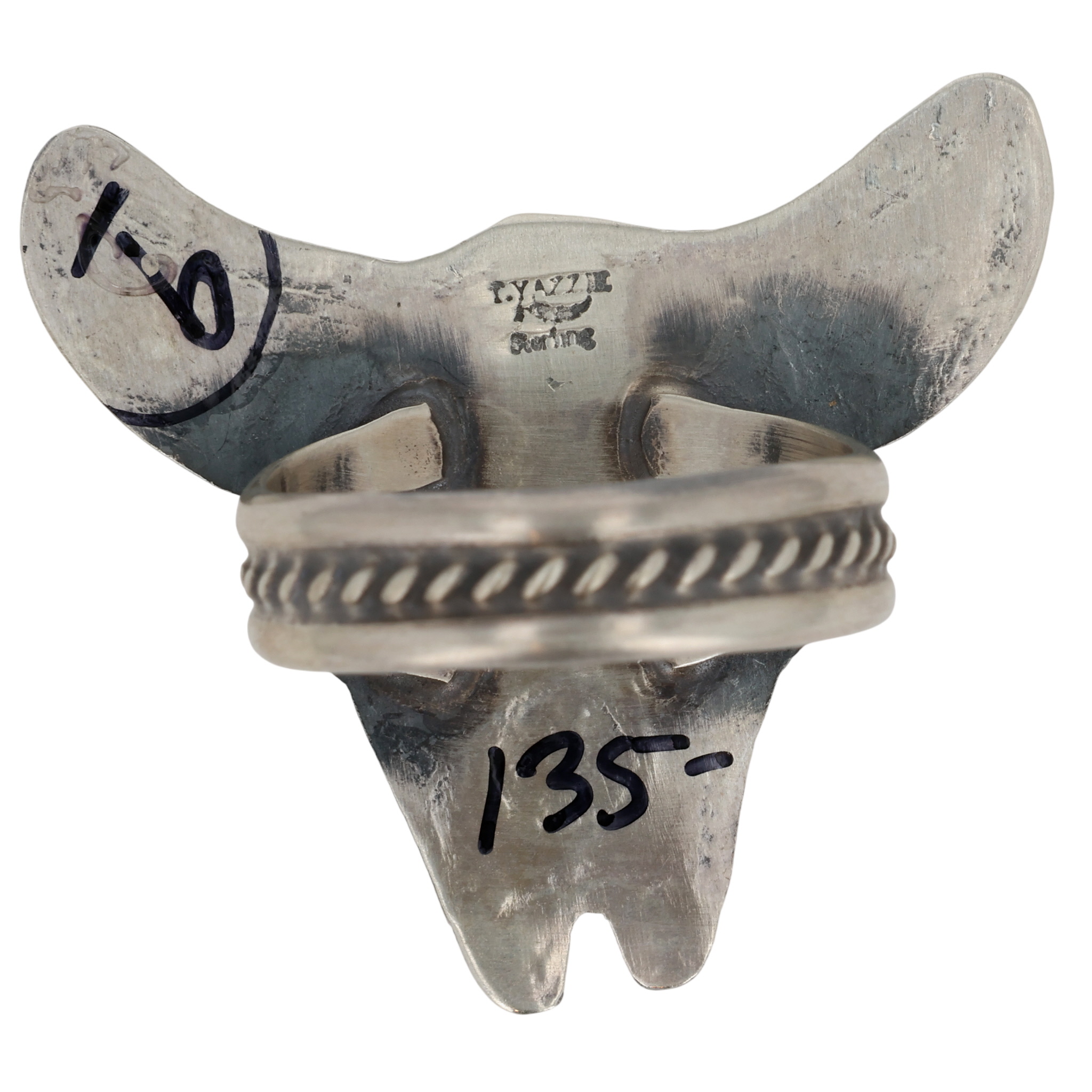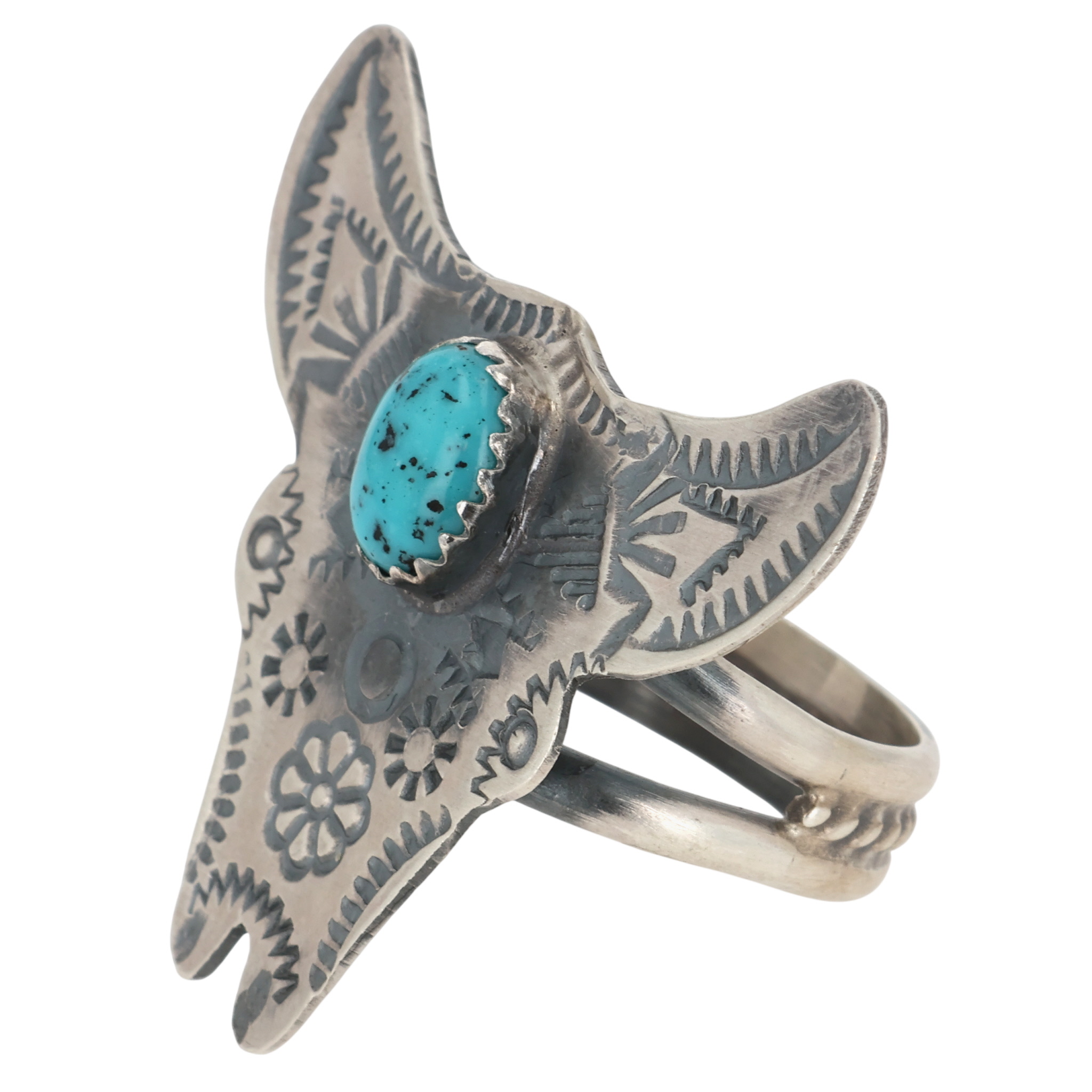 Tim Yazzie Navajo Sterling Turquoise Bull Ring Sz 8.5, 6g