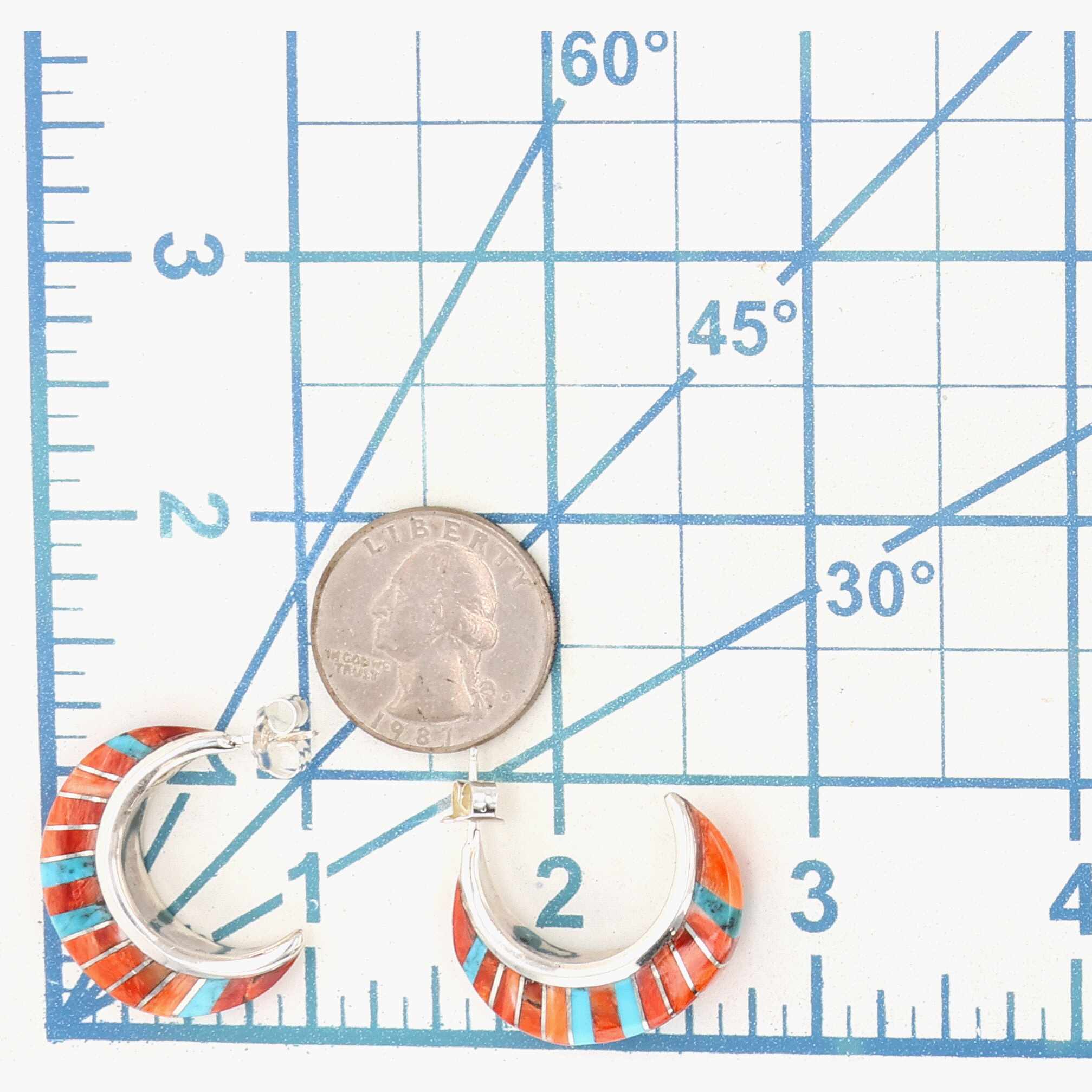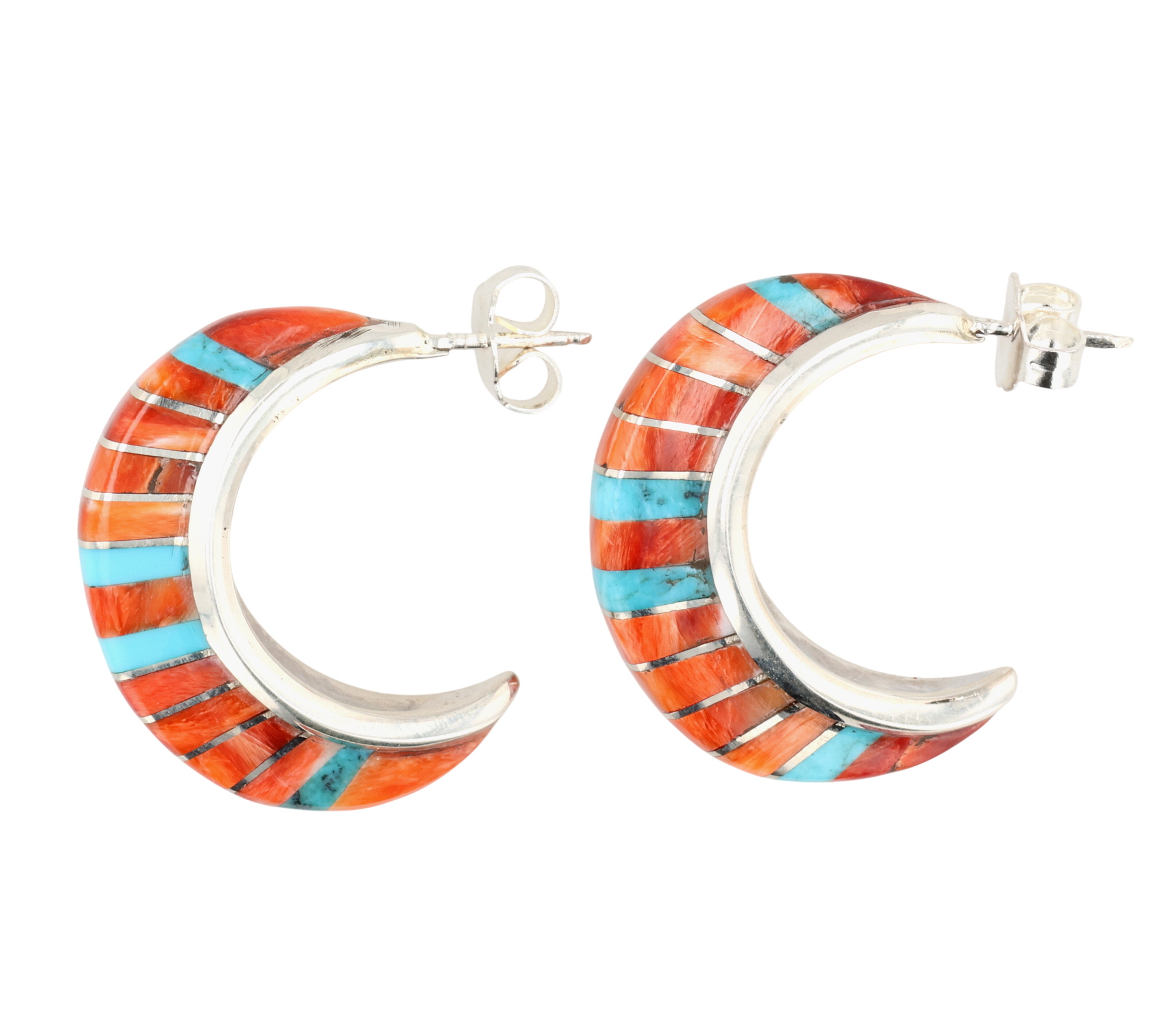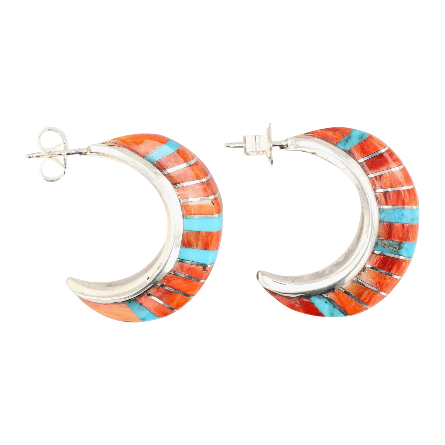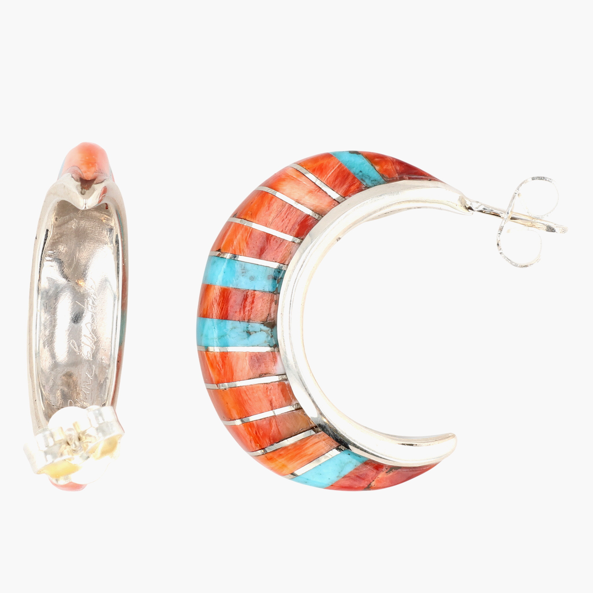 Erma Eustace Zuni Sterling Multi-Stone Inlay Hoop Earrings