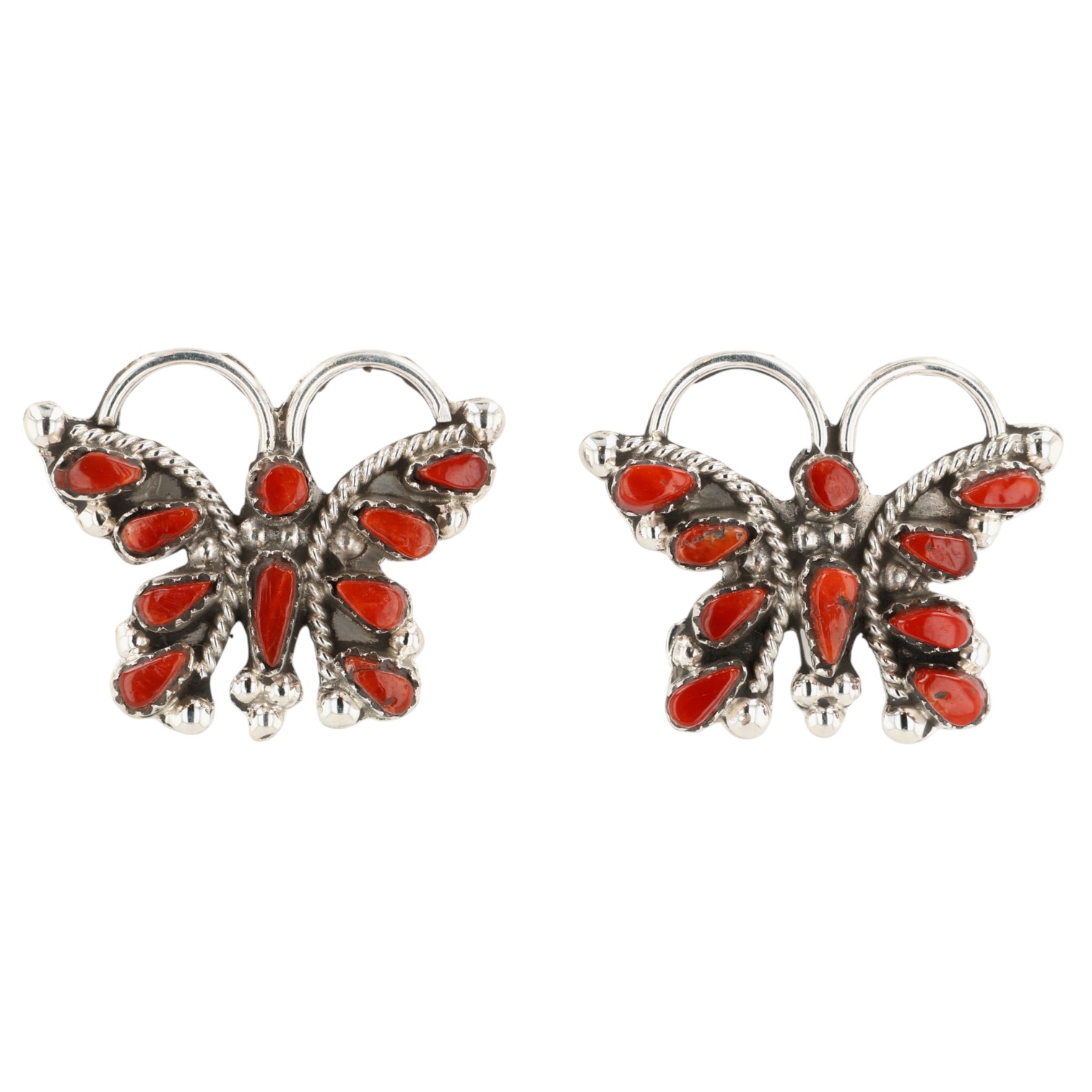 Alice Mutte Zuni Sterling Coral Butterfly Earrings 4g