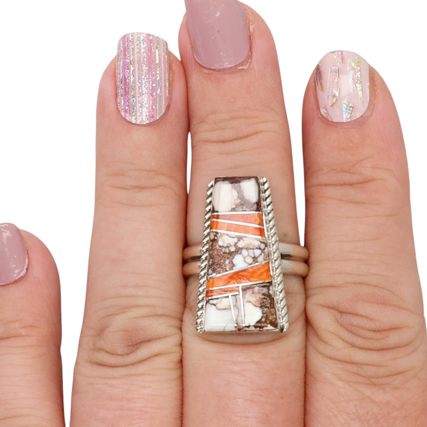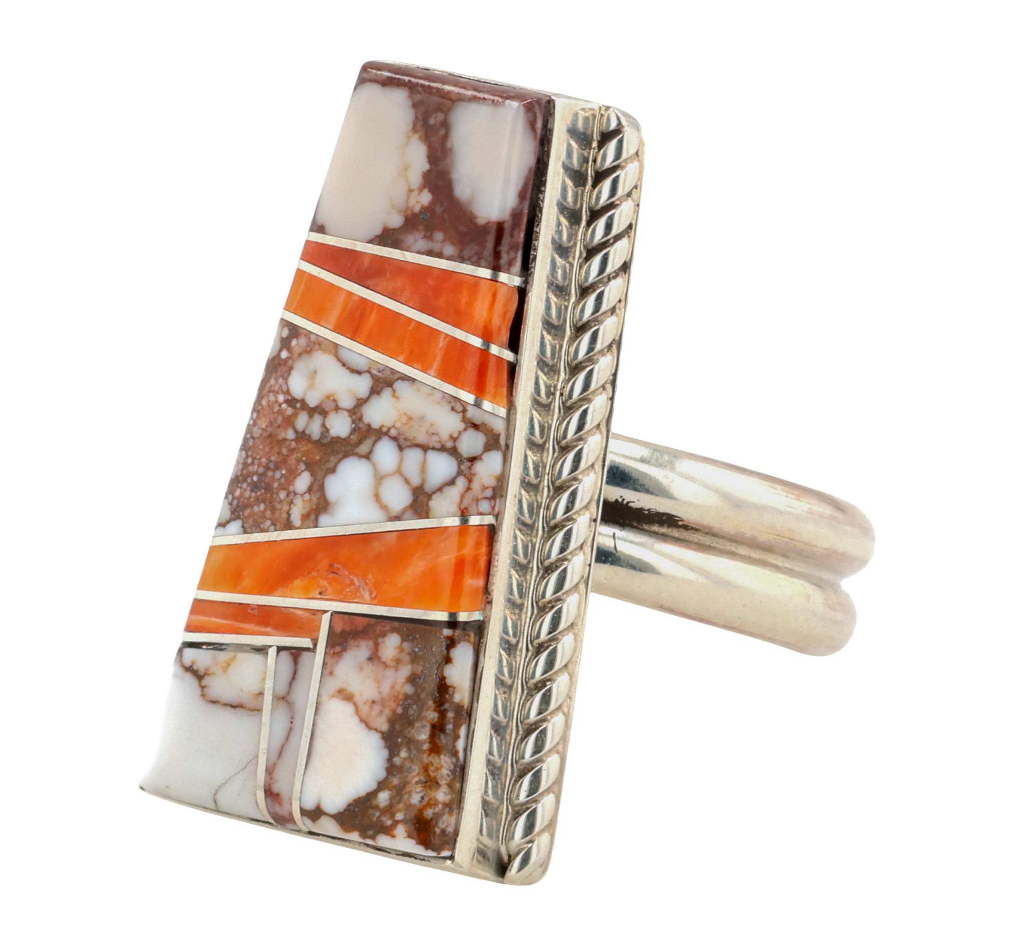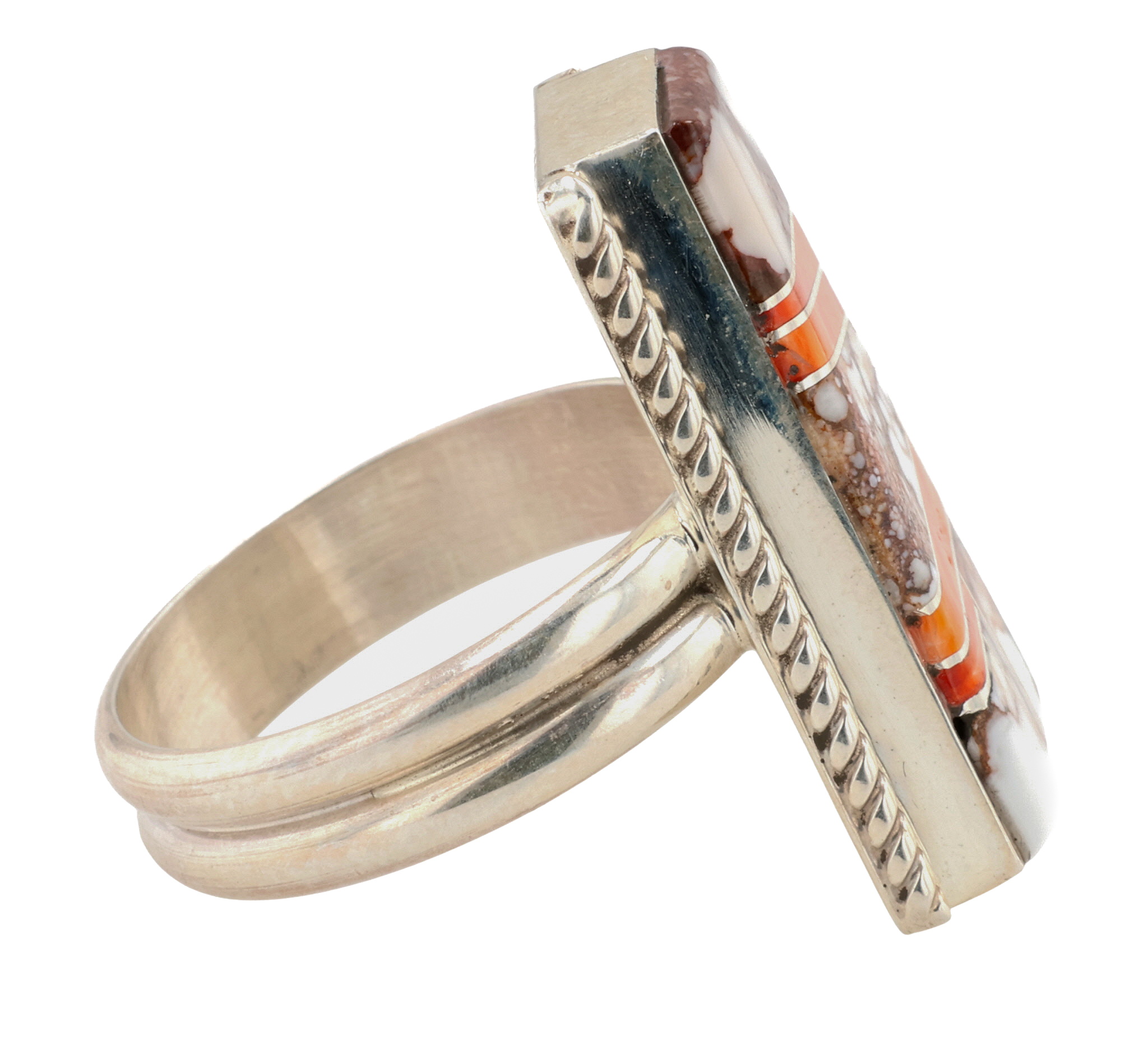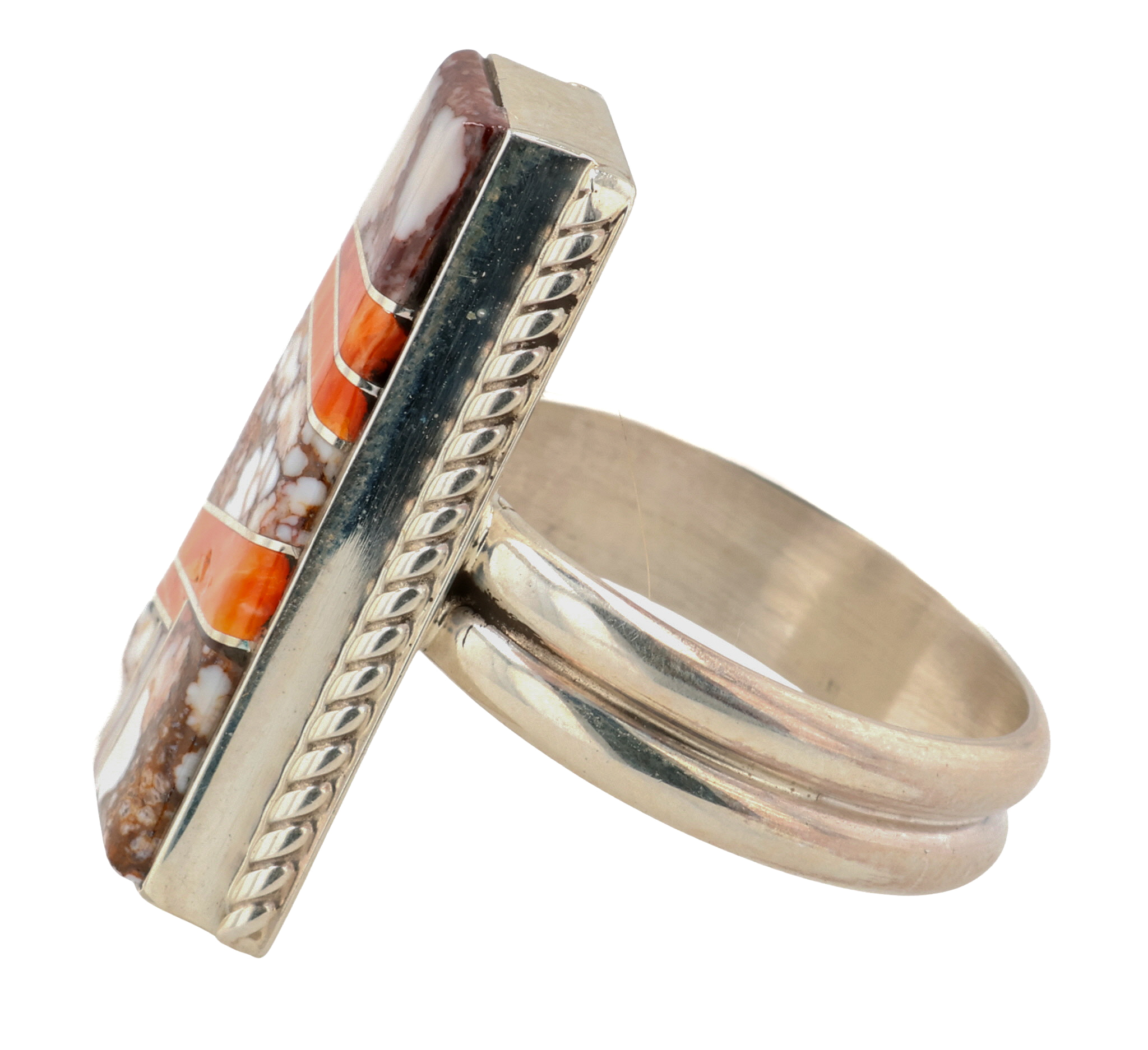 Wilbur Gray Navajo Sterling Multi-Stone Inlay Ring Sz 7.5, 7.5g
