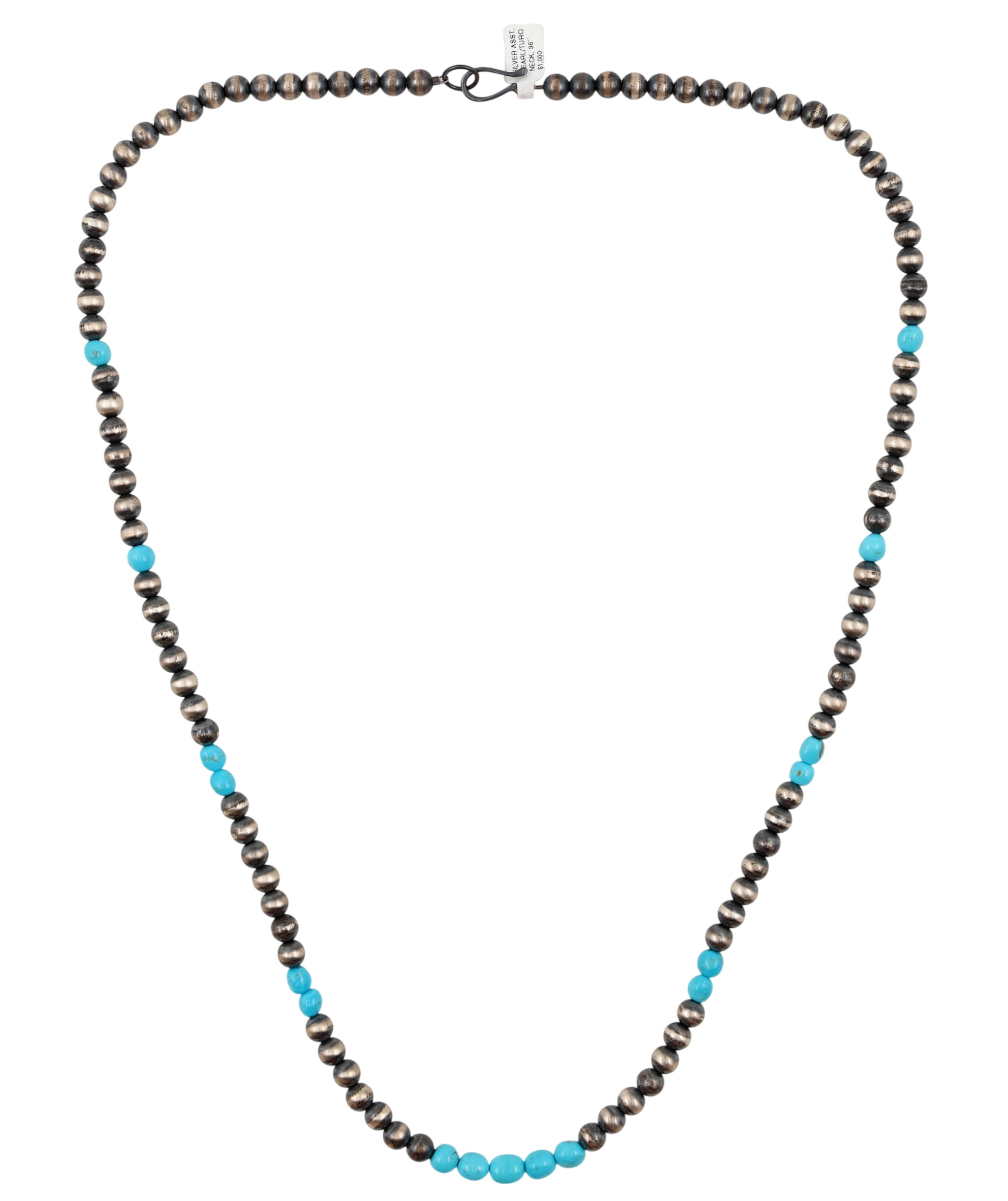 Mason Lee Navajo Sterling Pearl Turquoise Necklace 52g