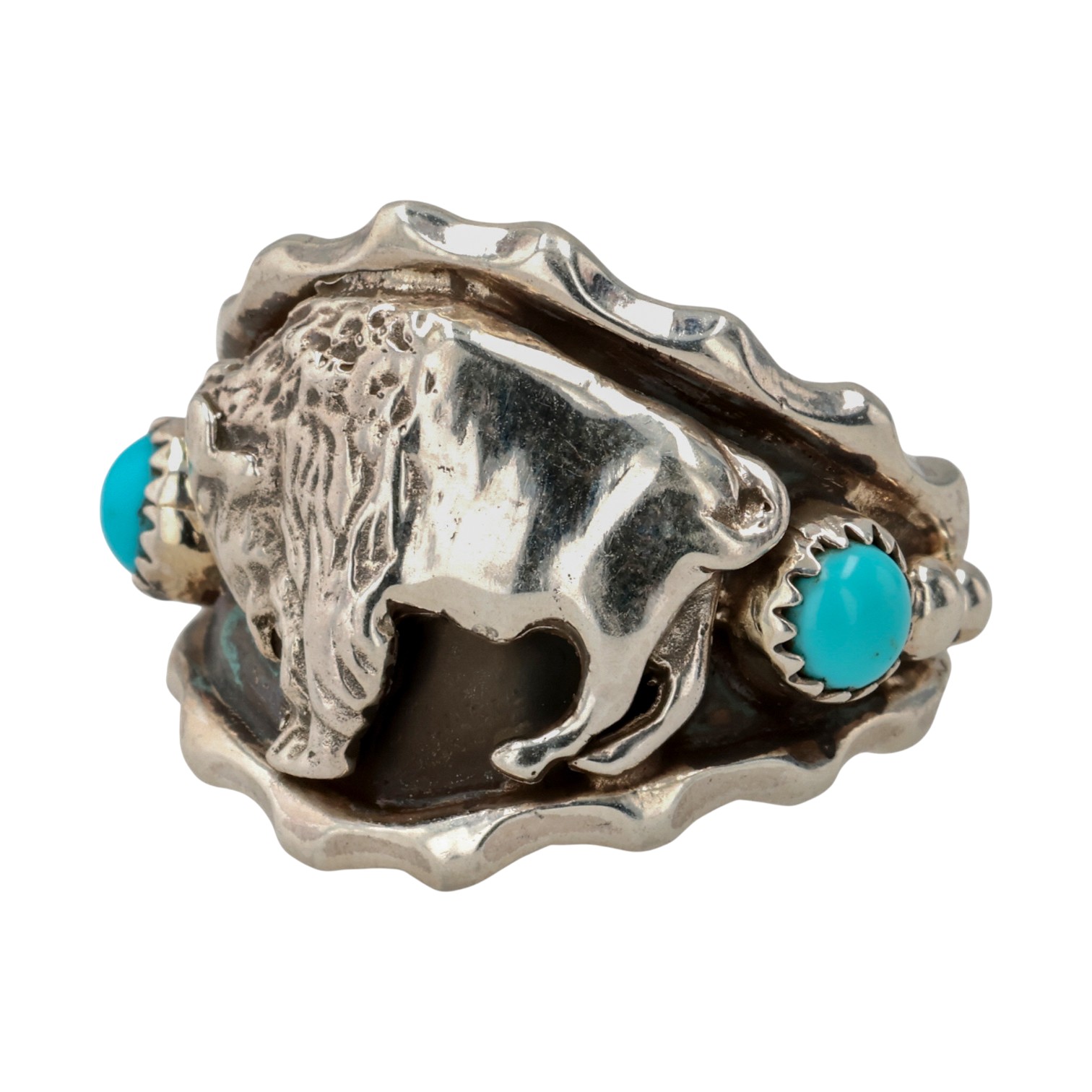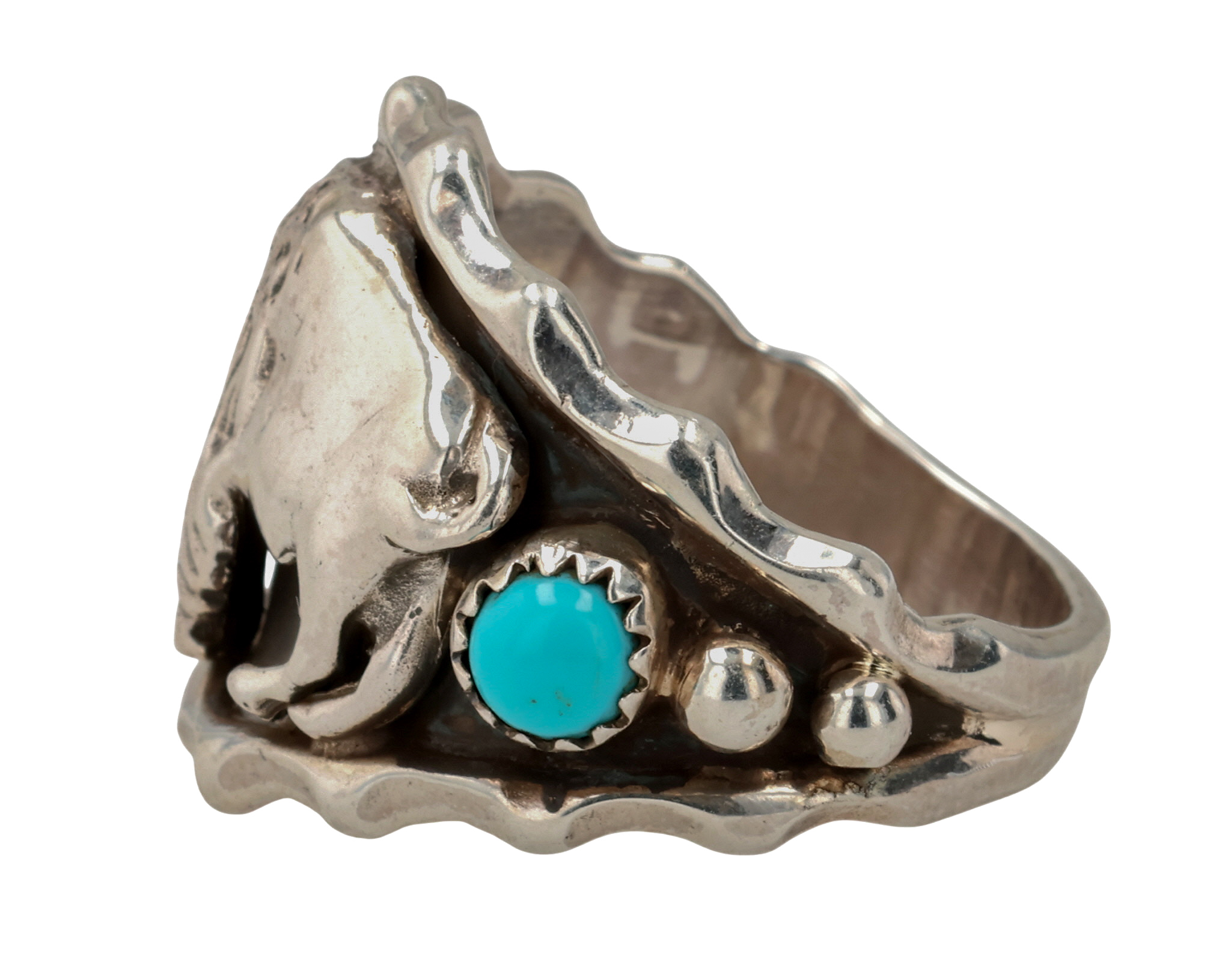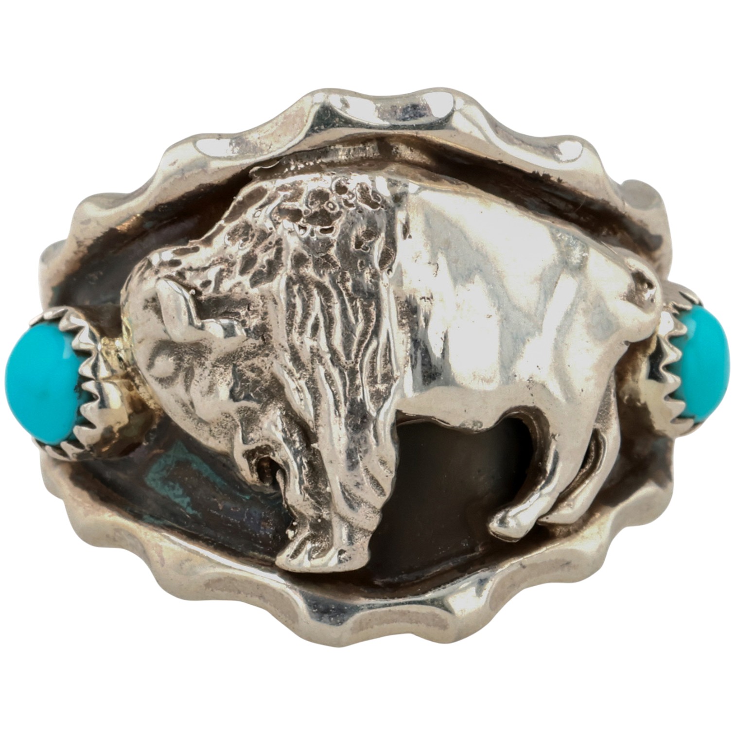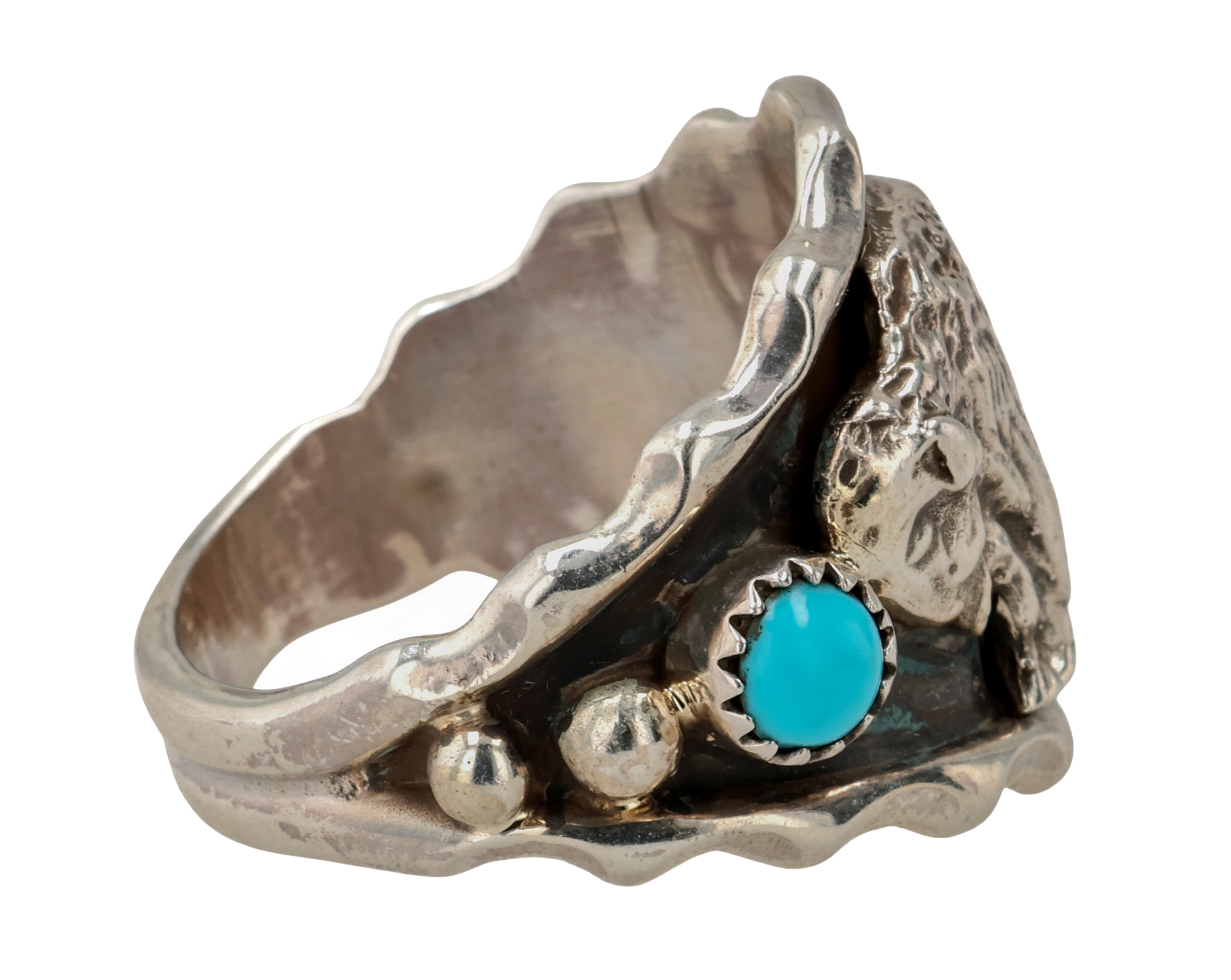 Genevieve Francisco Navajo Sterling Kingman Turquoise Buffalo Ring Sz 11, 11g