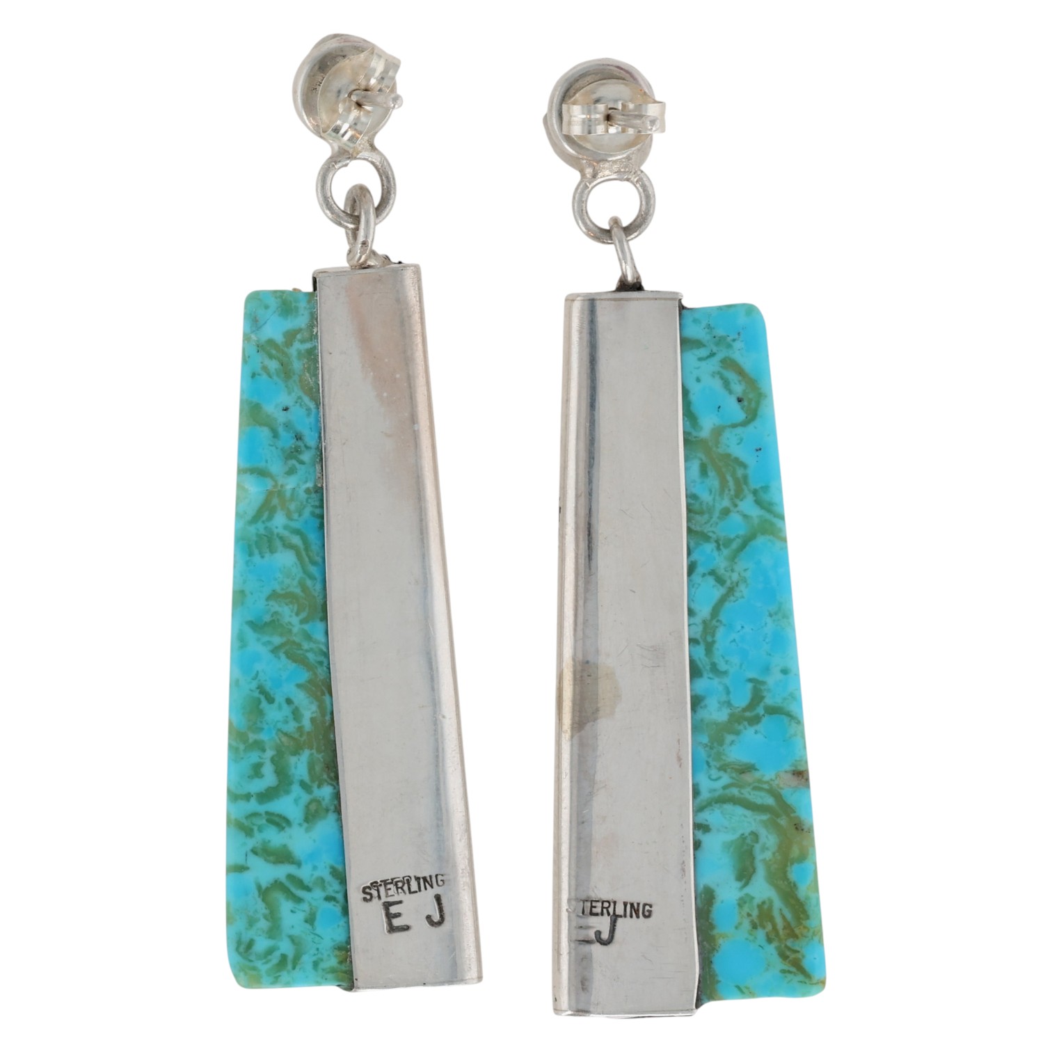 Eddie Johnson Navajo Sterling Kingman Turquoise Earrings 11g