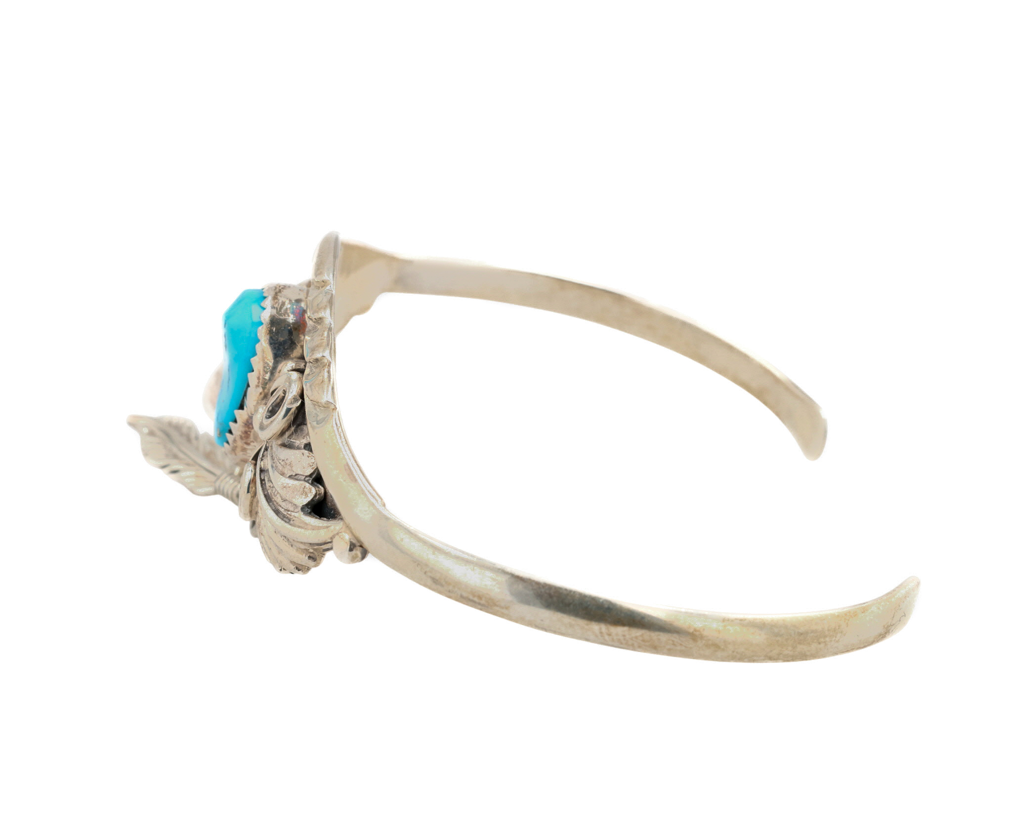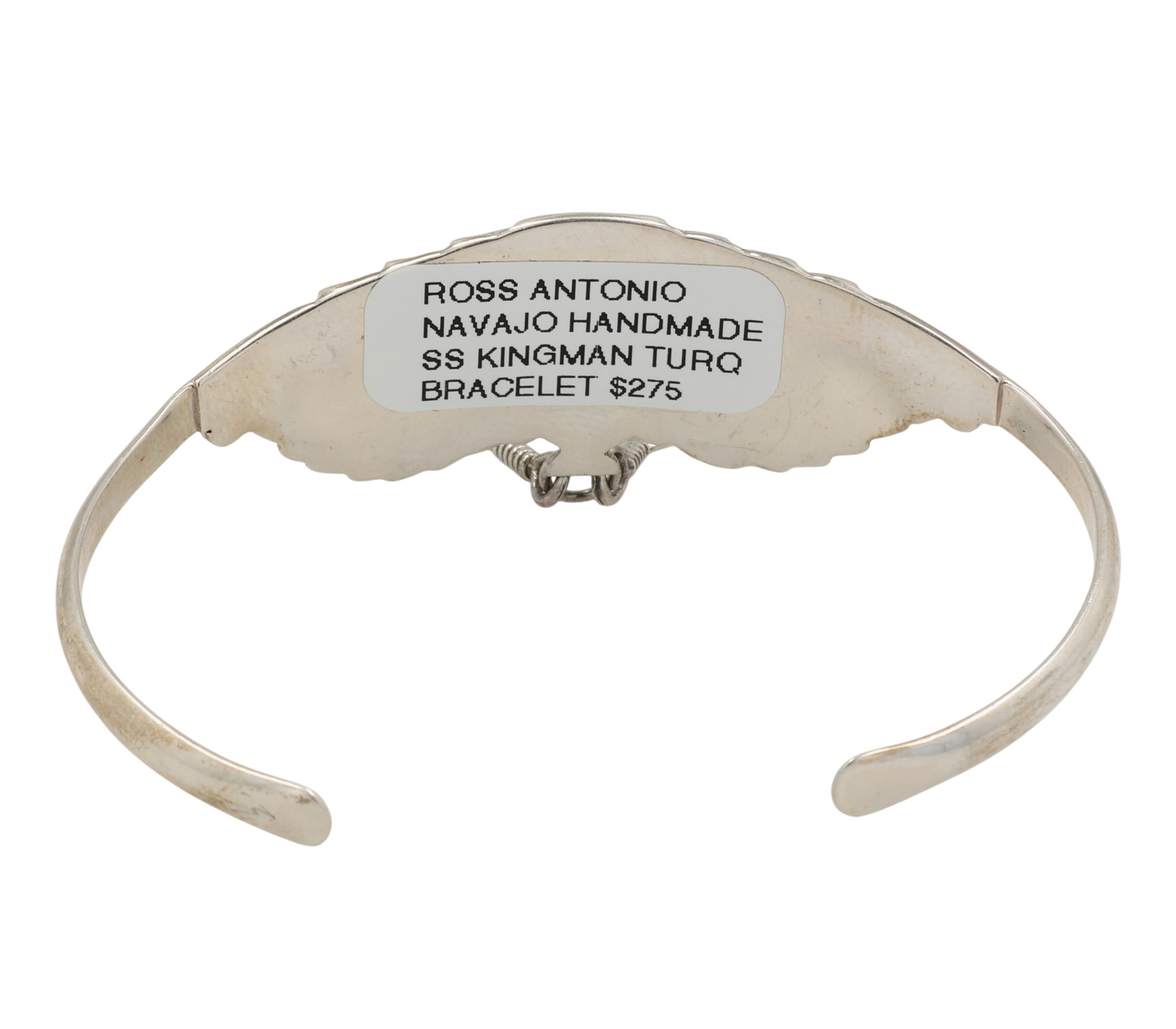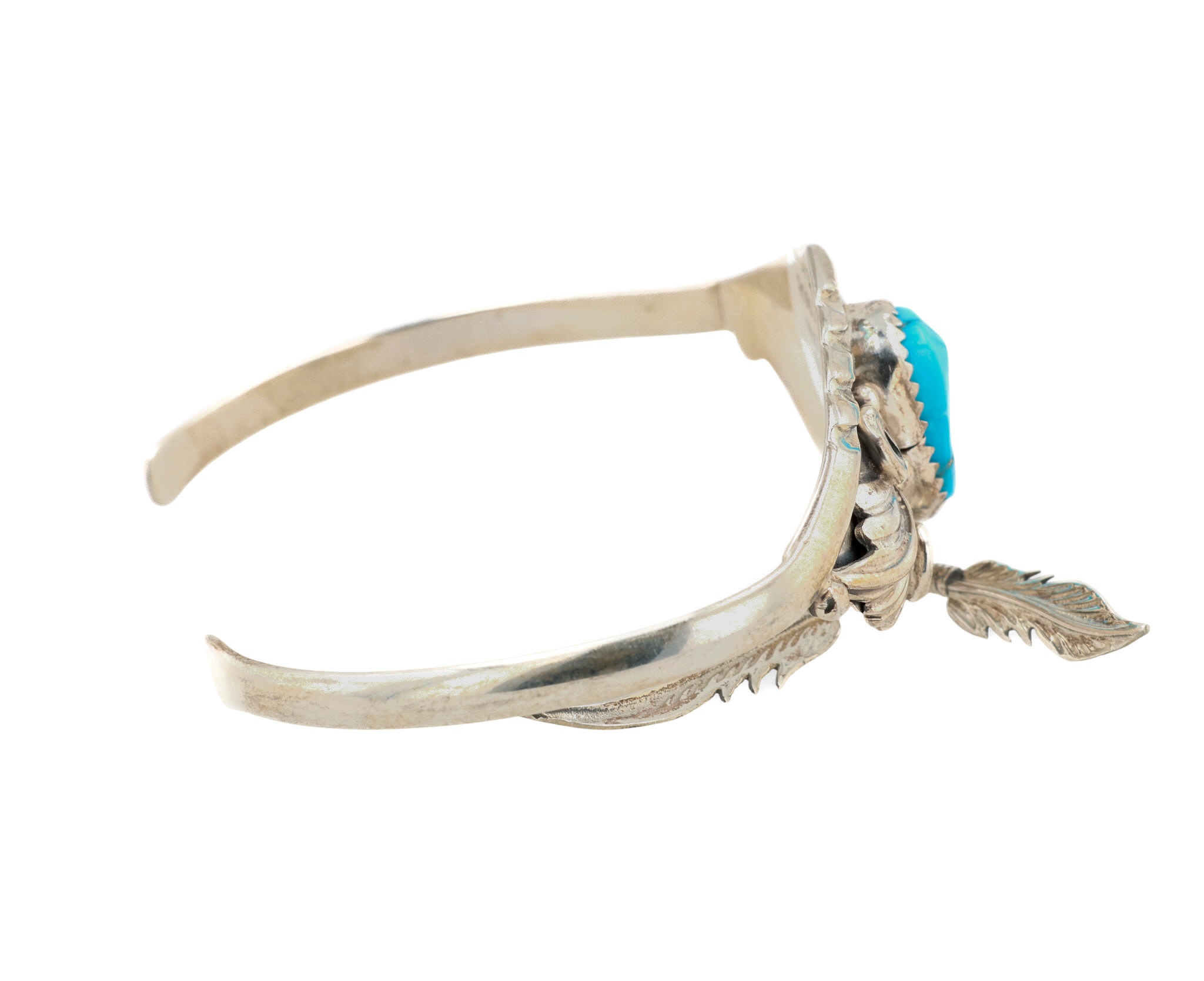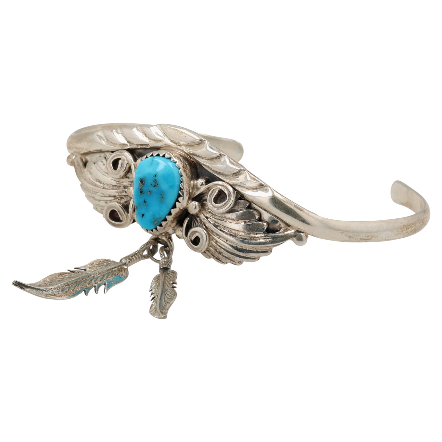 Ross Antonio Navajo Sterling Kingman Turquoise Feather Dangle Cuff Bracelet 14.5g