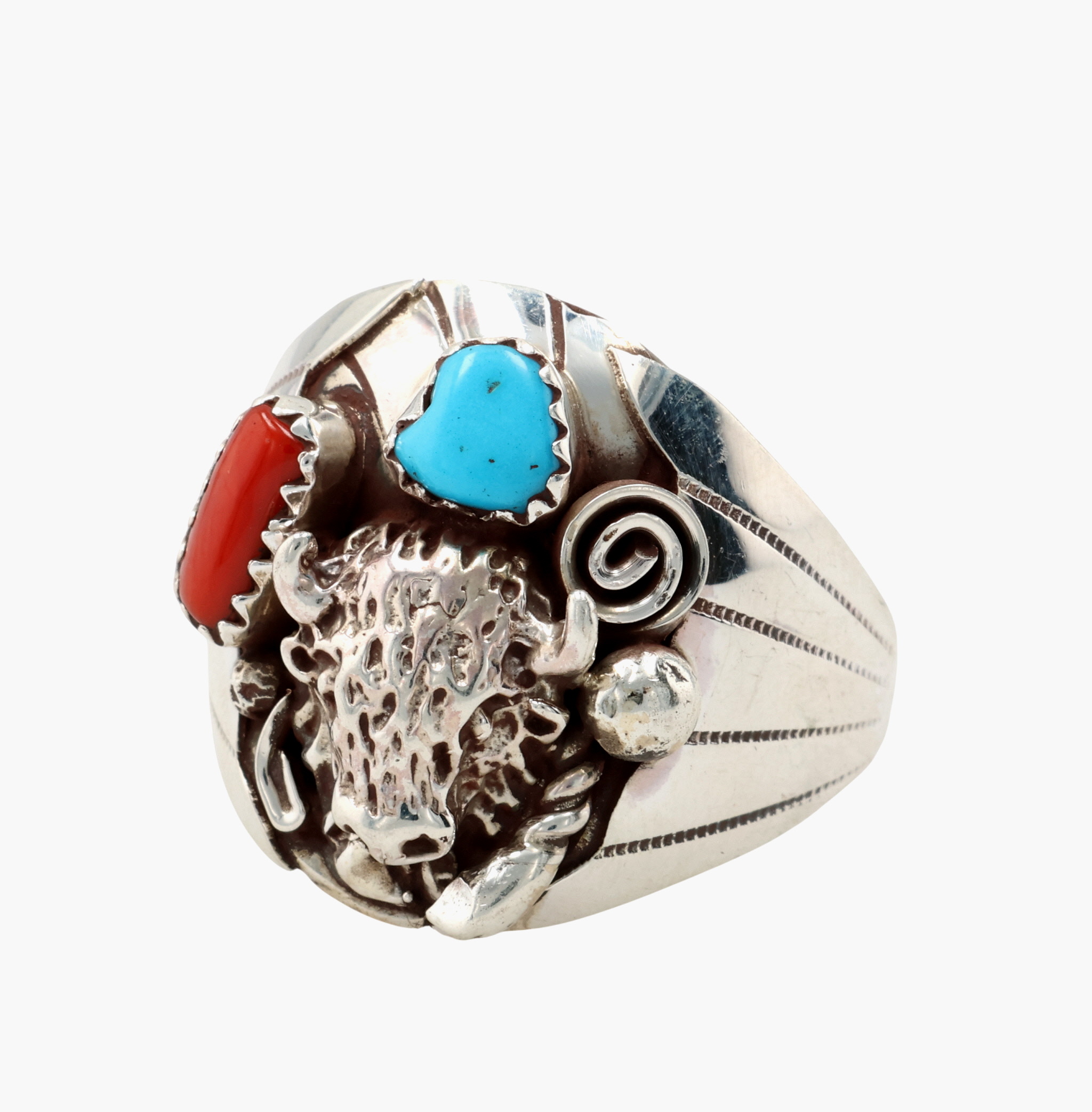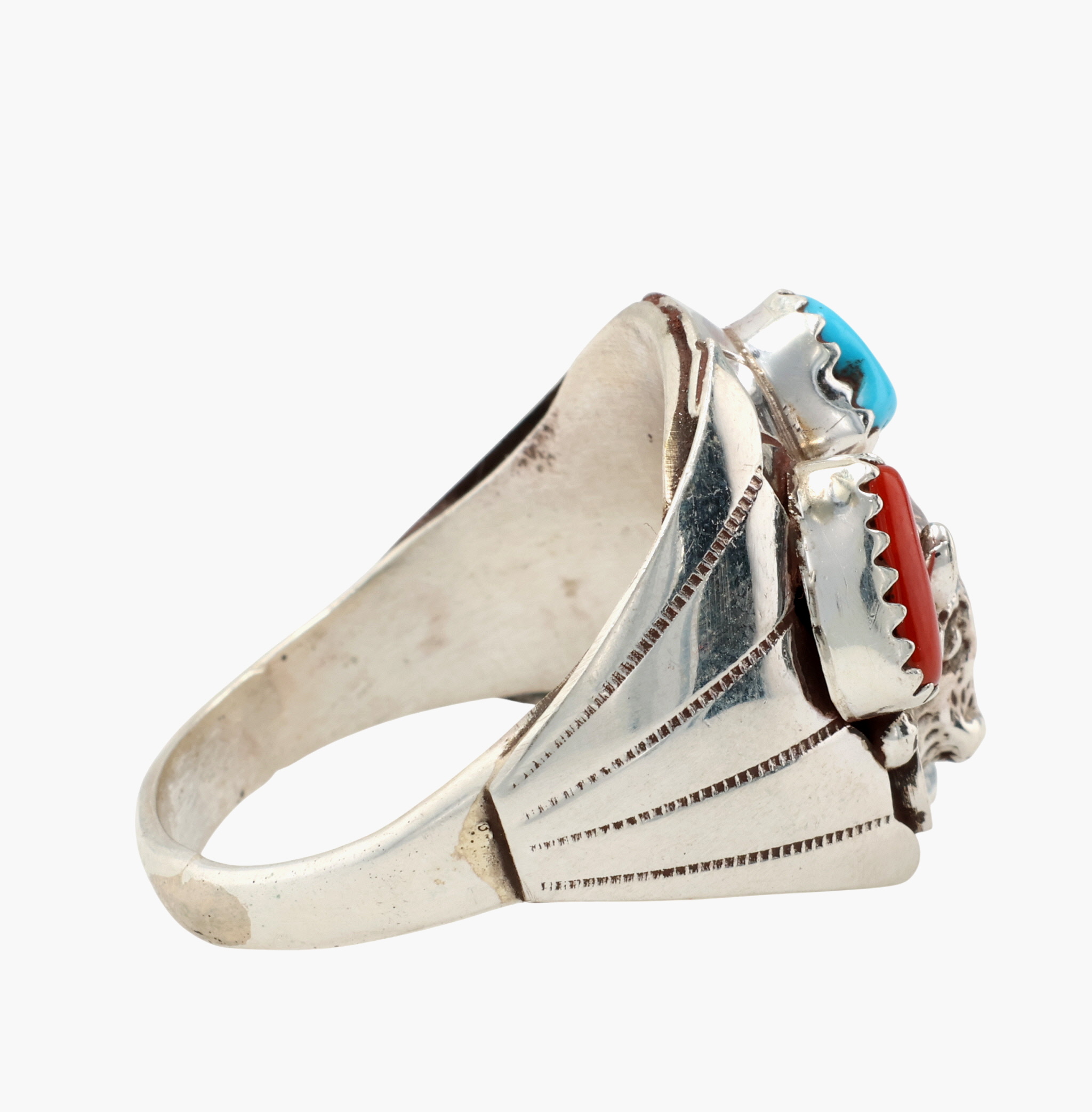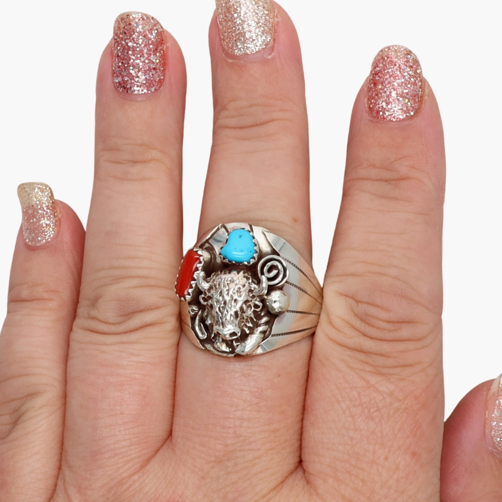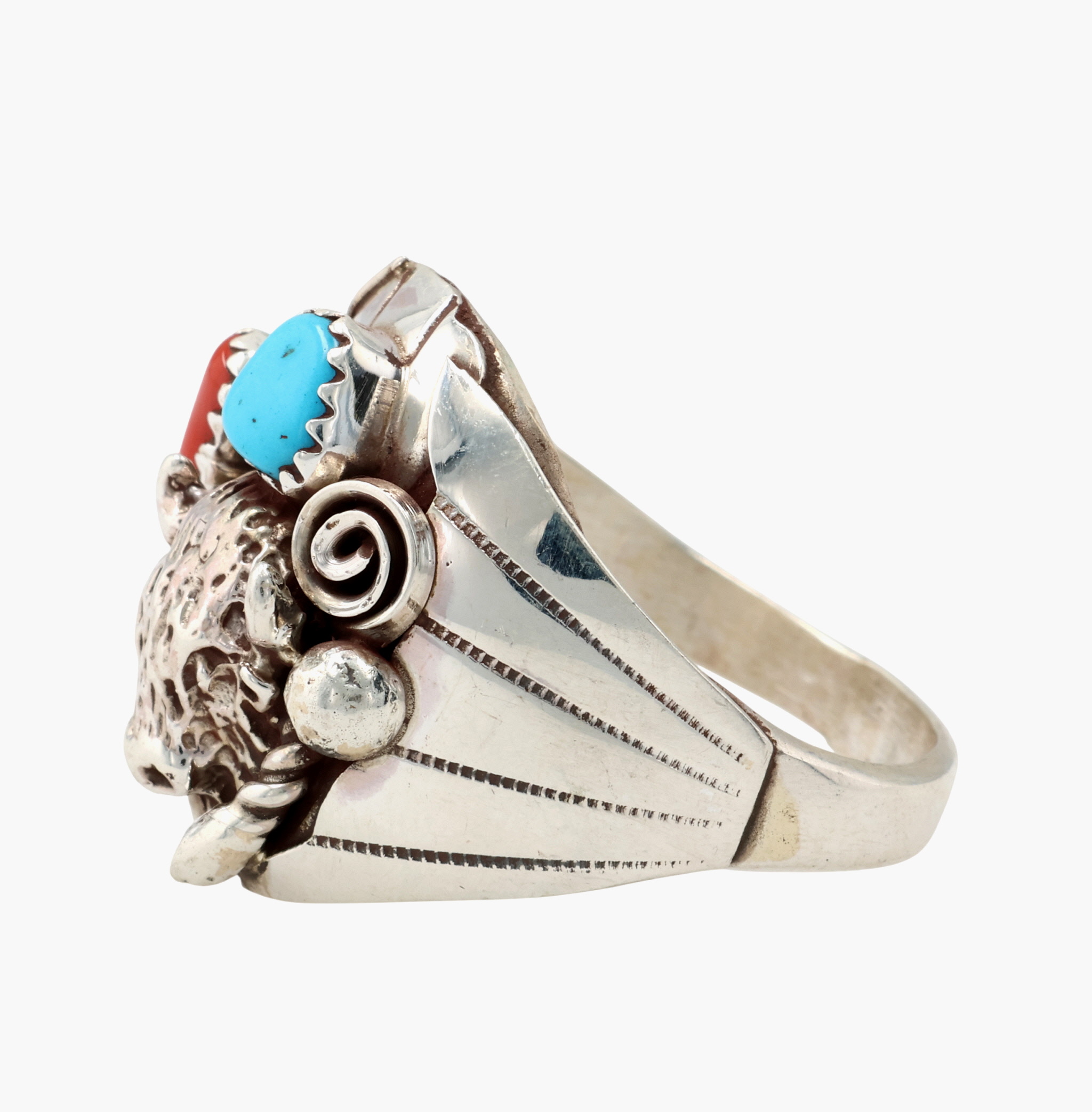Gilbert Smith Navajo Sterling Multi-Stone Buffalo Ring Sz 7.5 ,16g