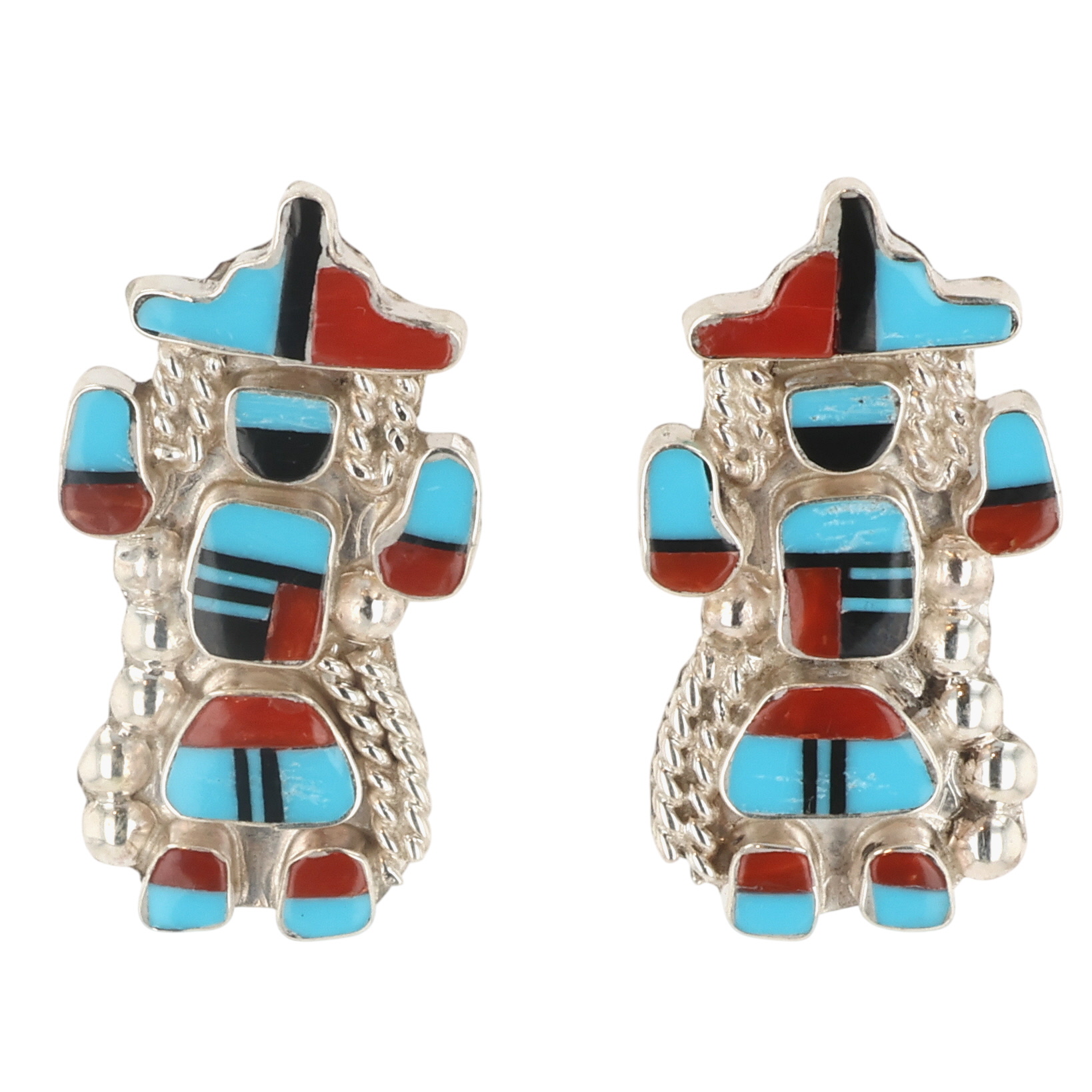 James Johnson Zuni Sterling Multi-Stone Kachina Earrings