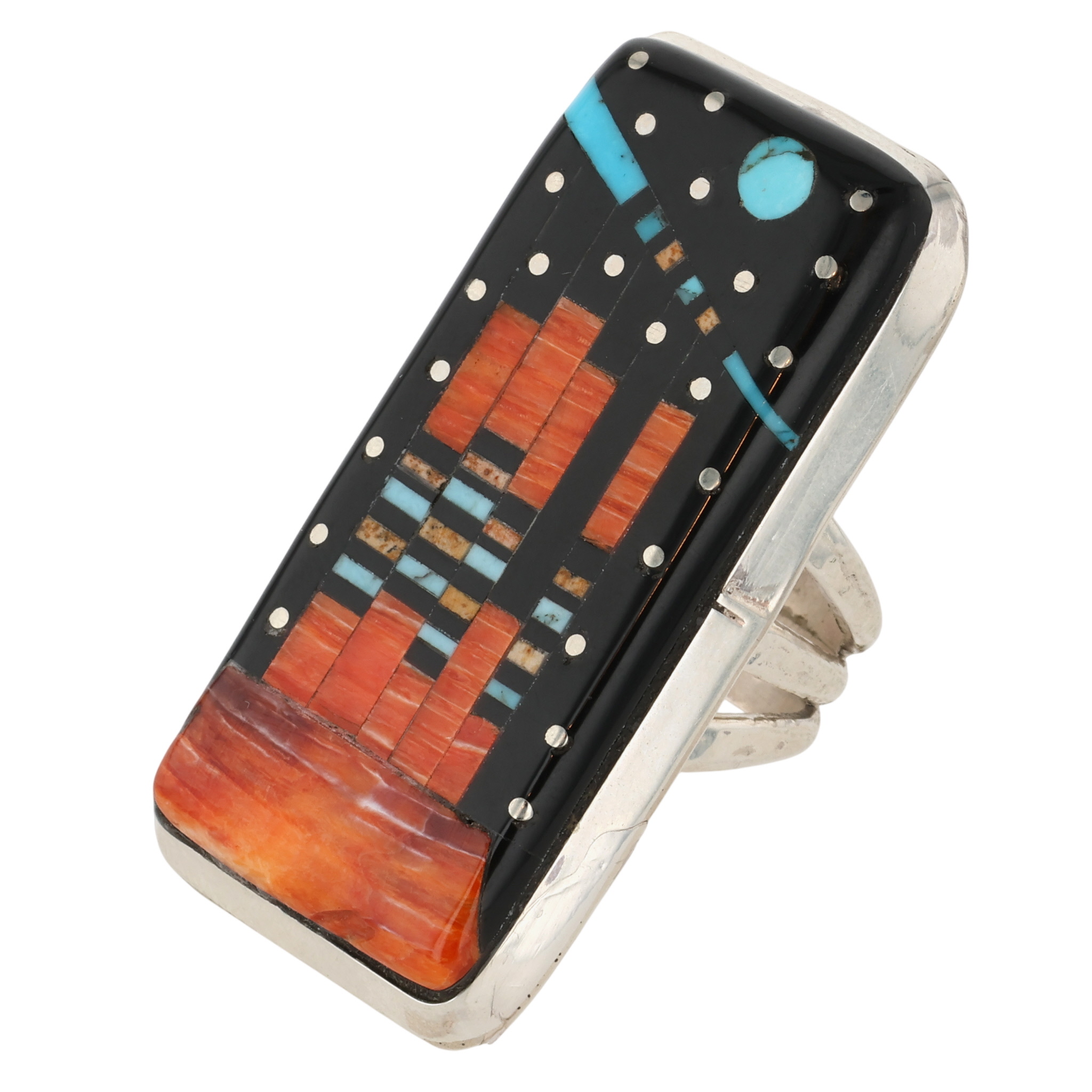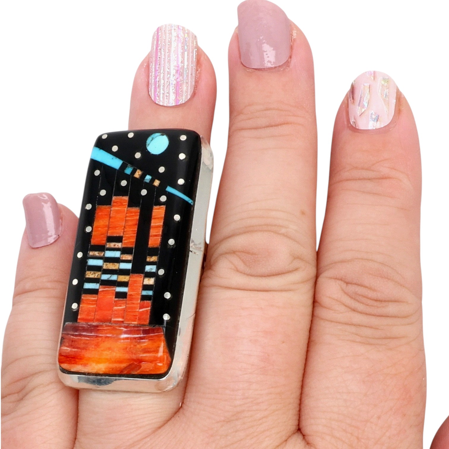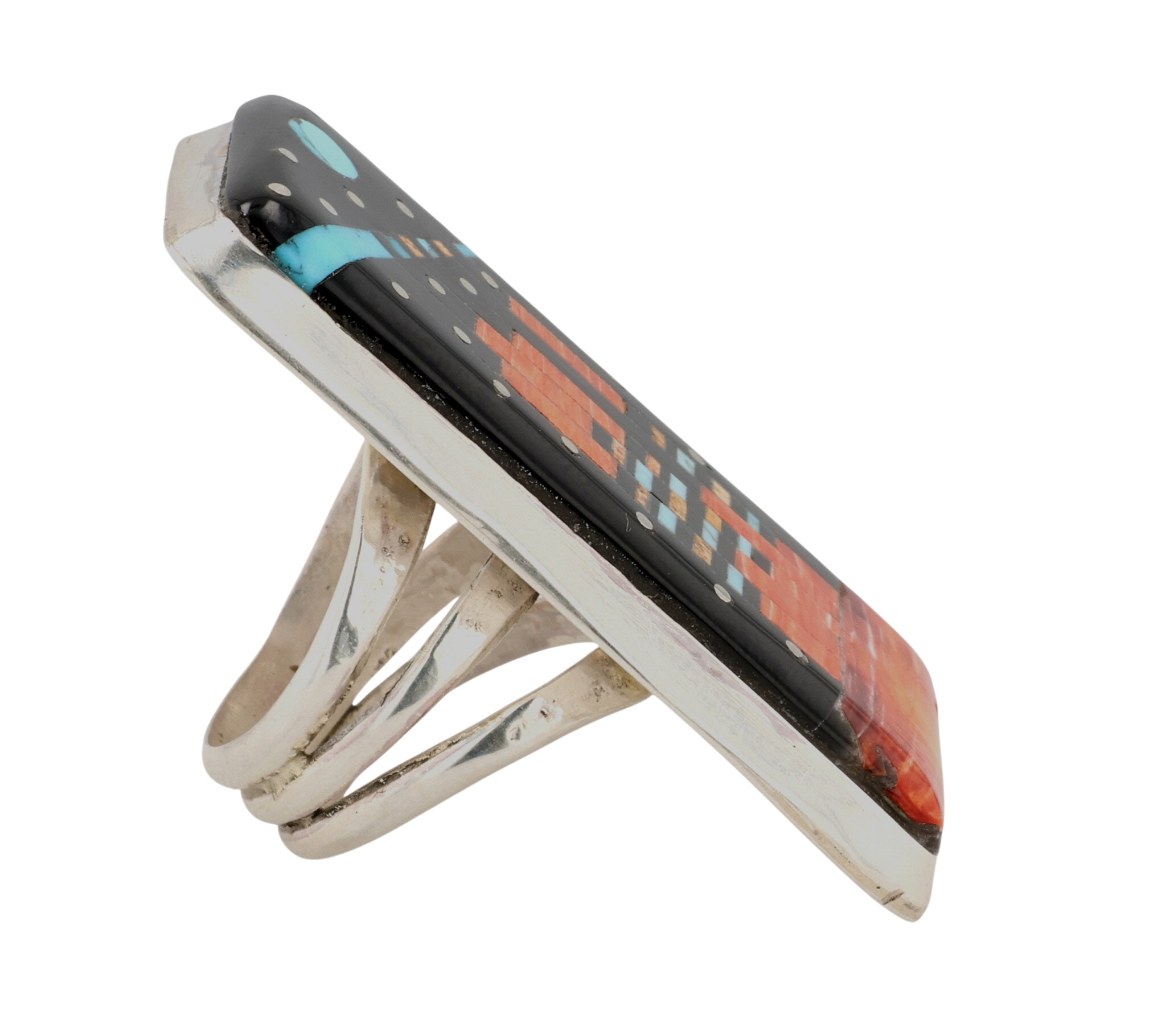 Ray Jack Navajo Sterling Multi-Stone Mosaic Inlay Ring Sz 7.25, 22g