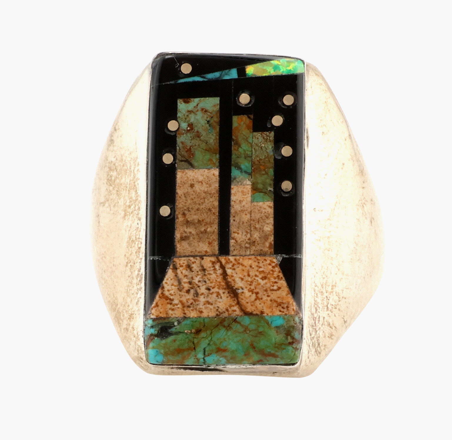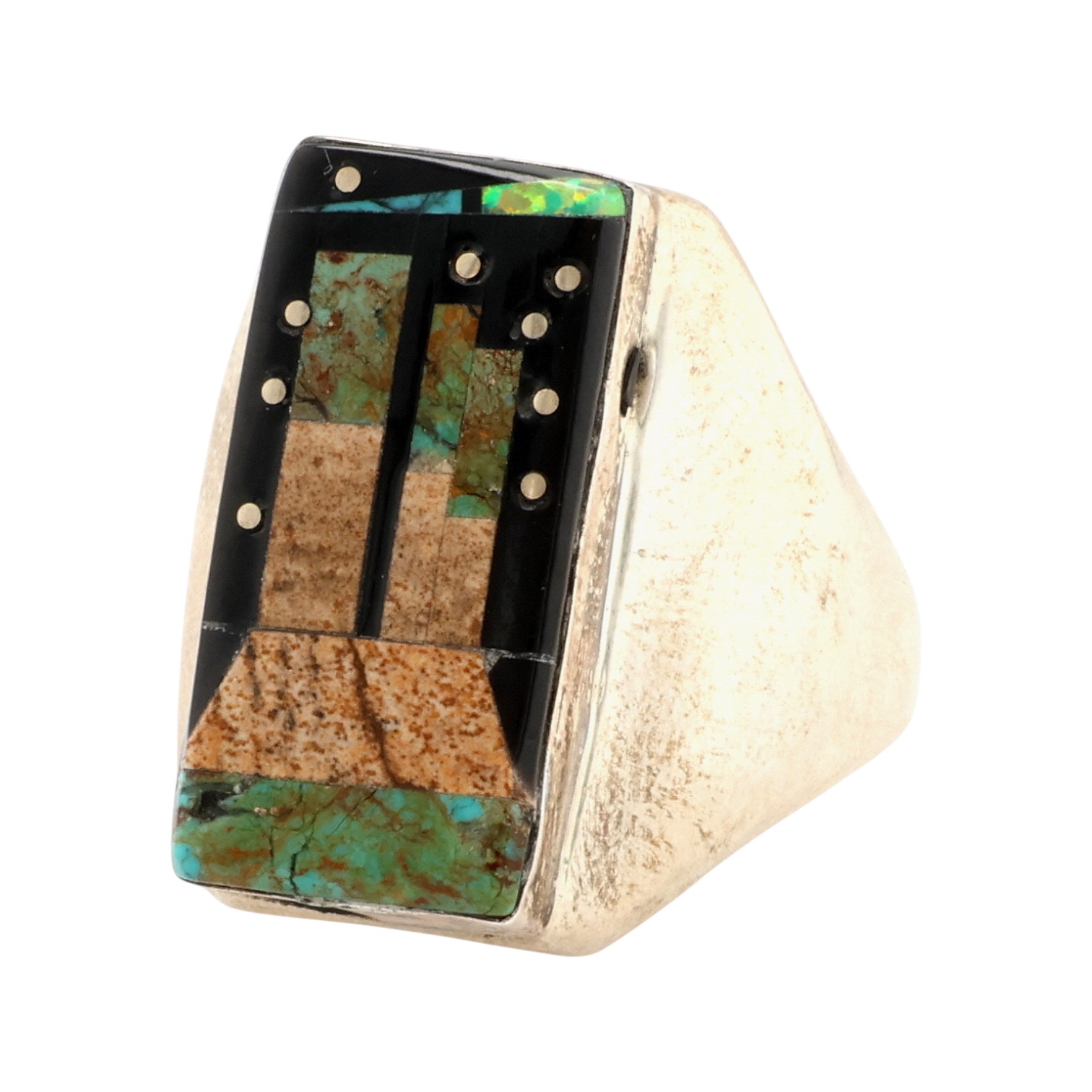 Gilbert Smith Navajo Sterling Multi-Stone Inlay Ring Sz 12