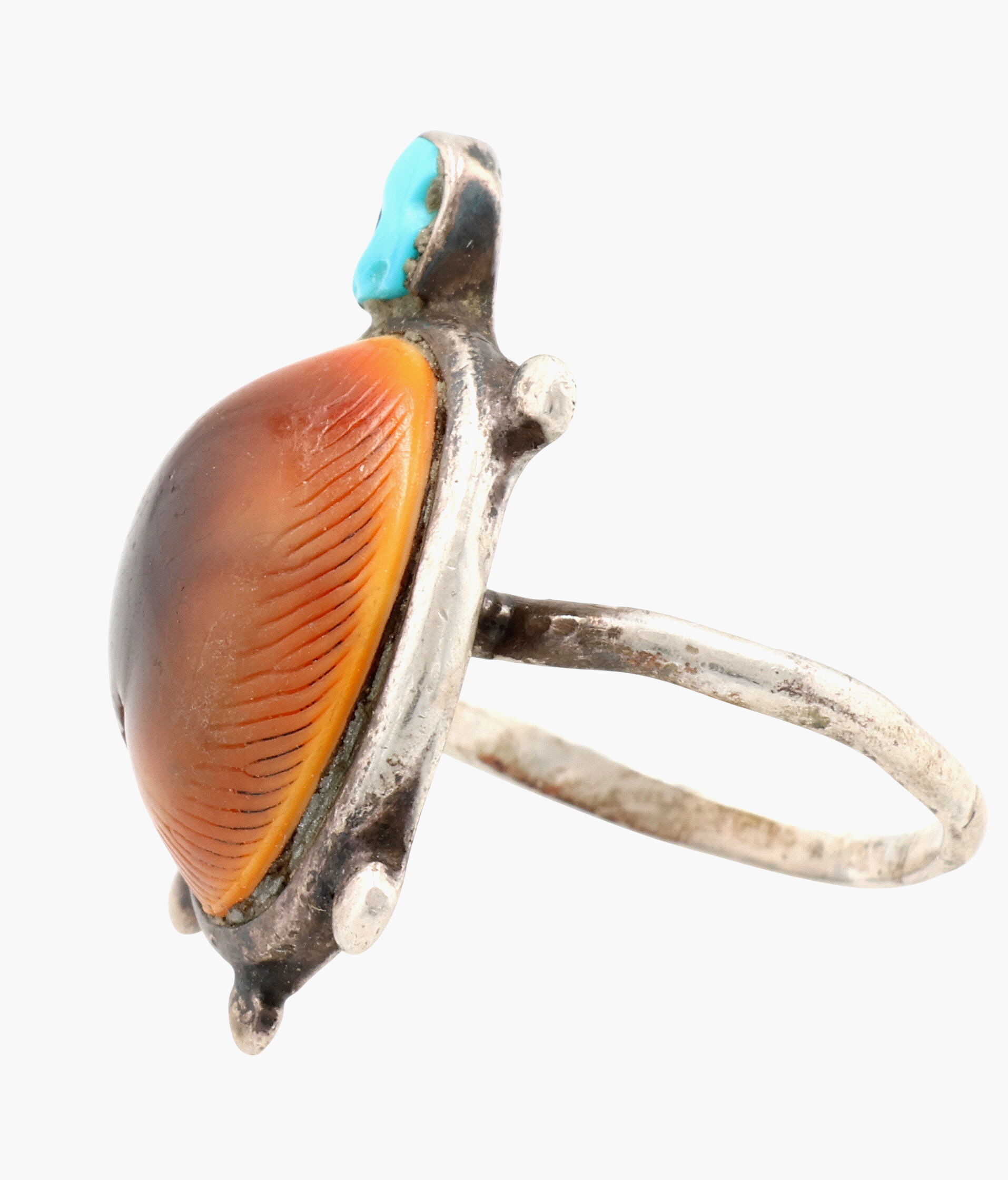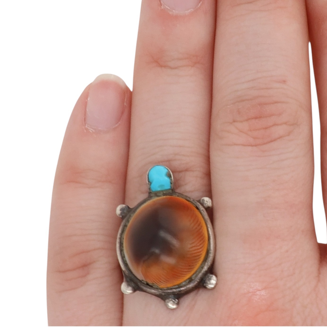 Vintage Navajo Sterling Multi-Stone Turtle Ring Sz 7, 6g