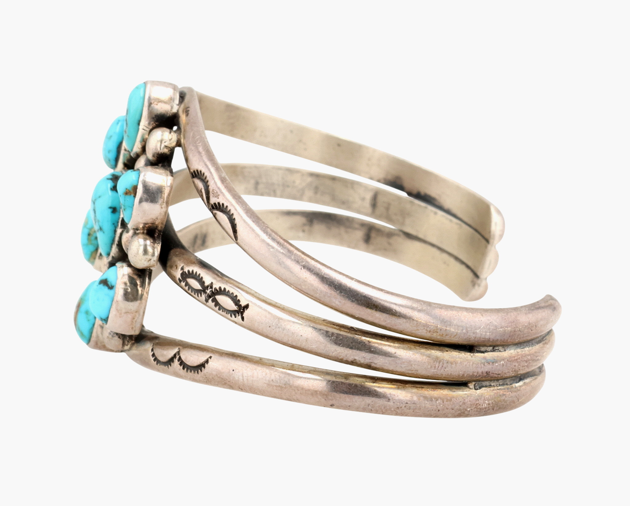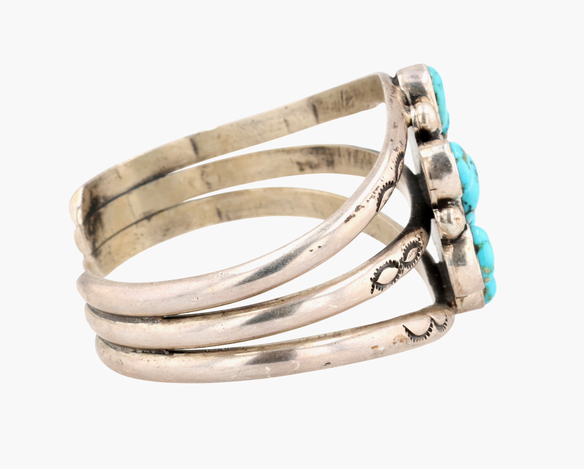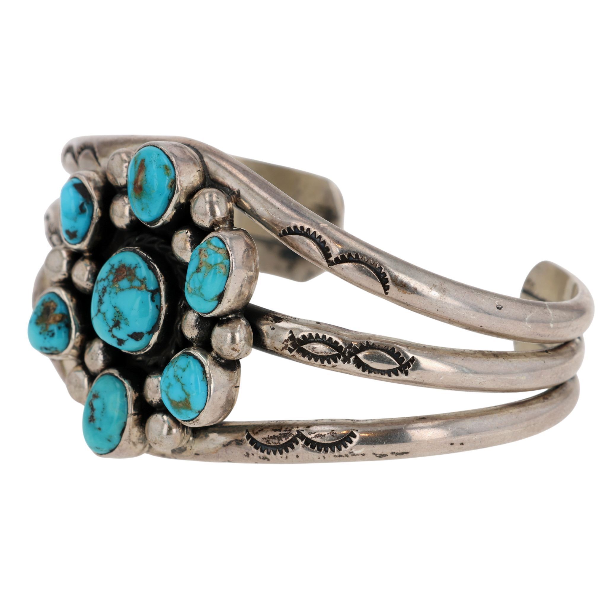Vintage Navajo Sterling Turquoise Cluster Cuff Bracelet 39g
