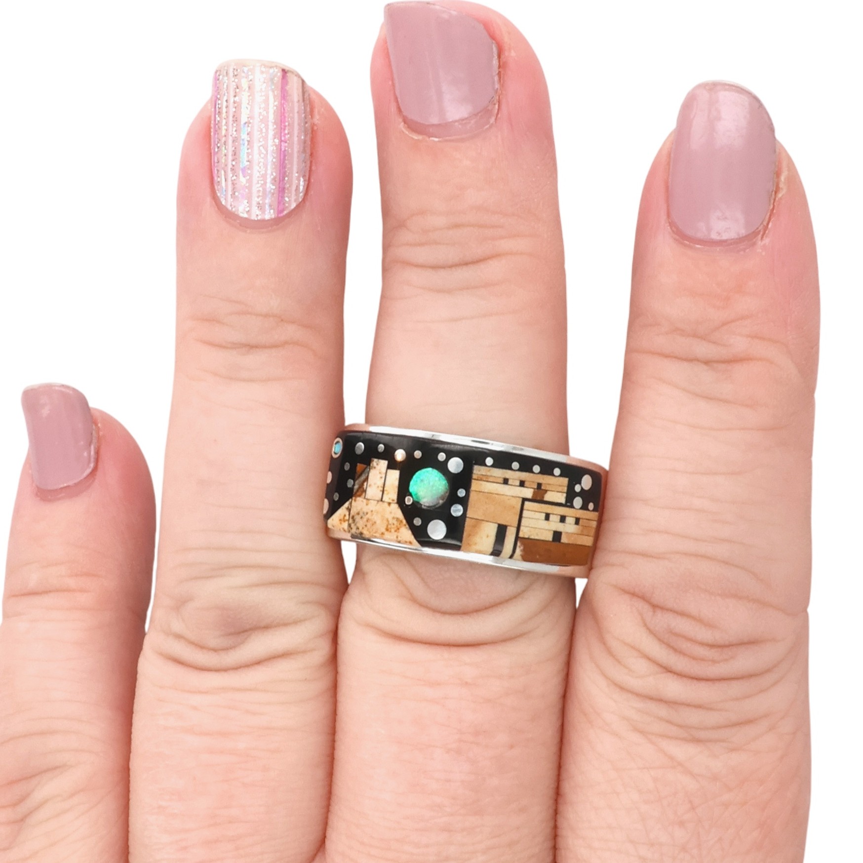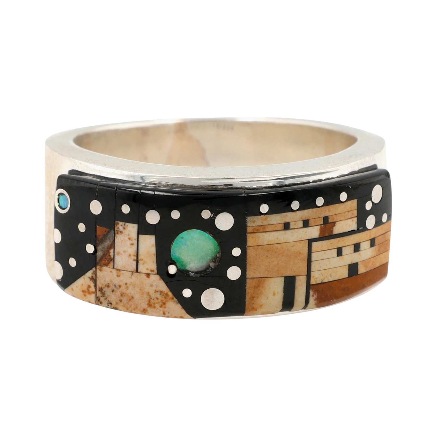 Calvin Begay Navajo Sterling Multi-Stone Inlay Ring Sz 9.75