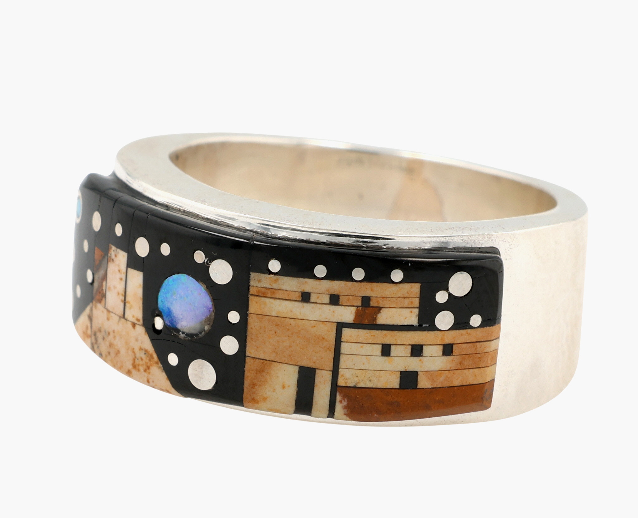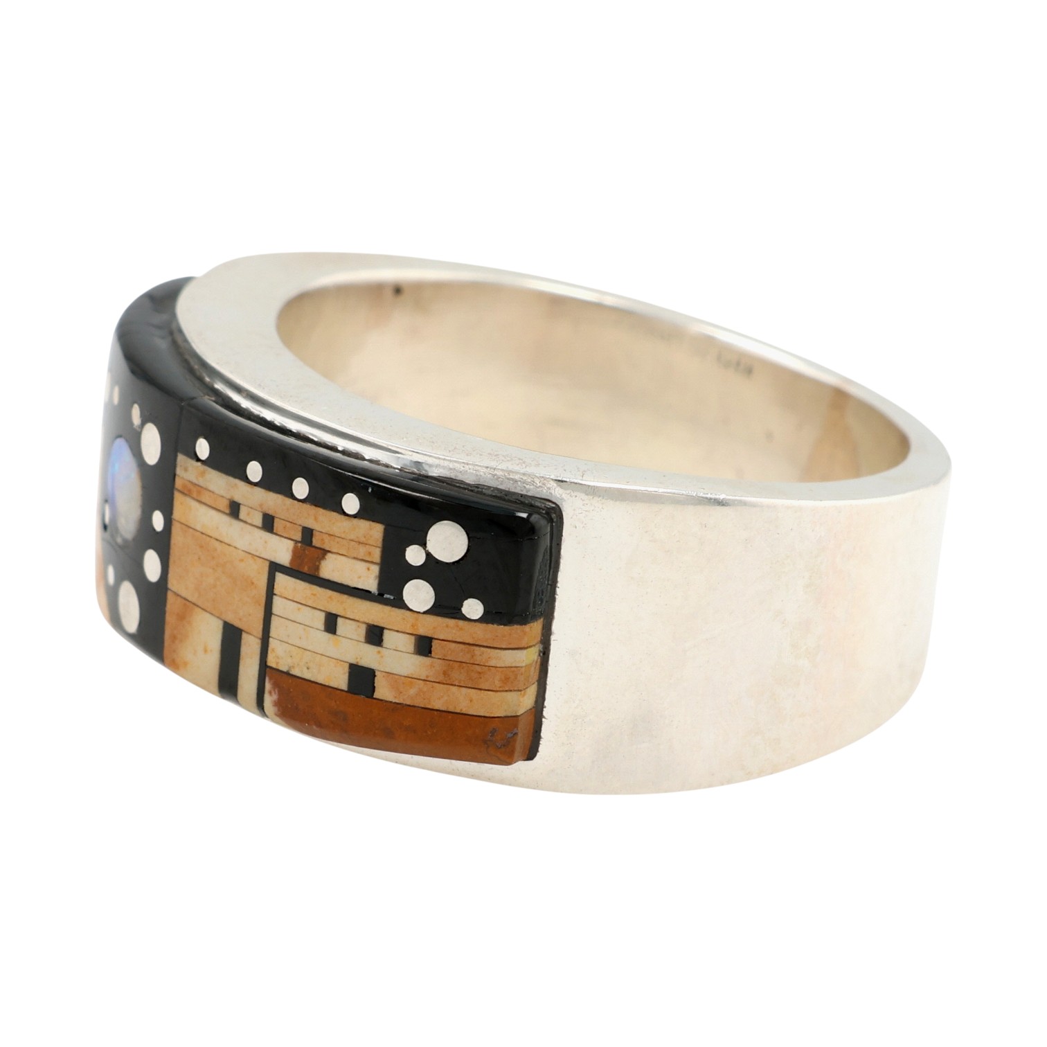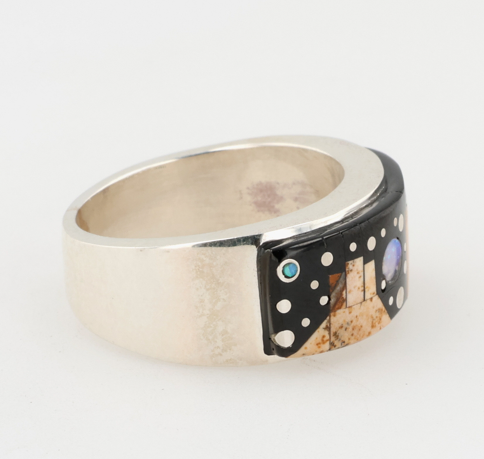 Calvin Begay Navajo Sterling Multi-Stone Inlay Ring Sz 9.75, 13g